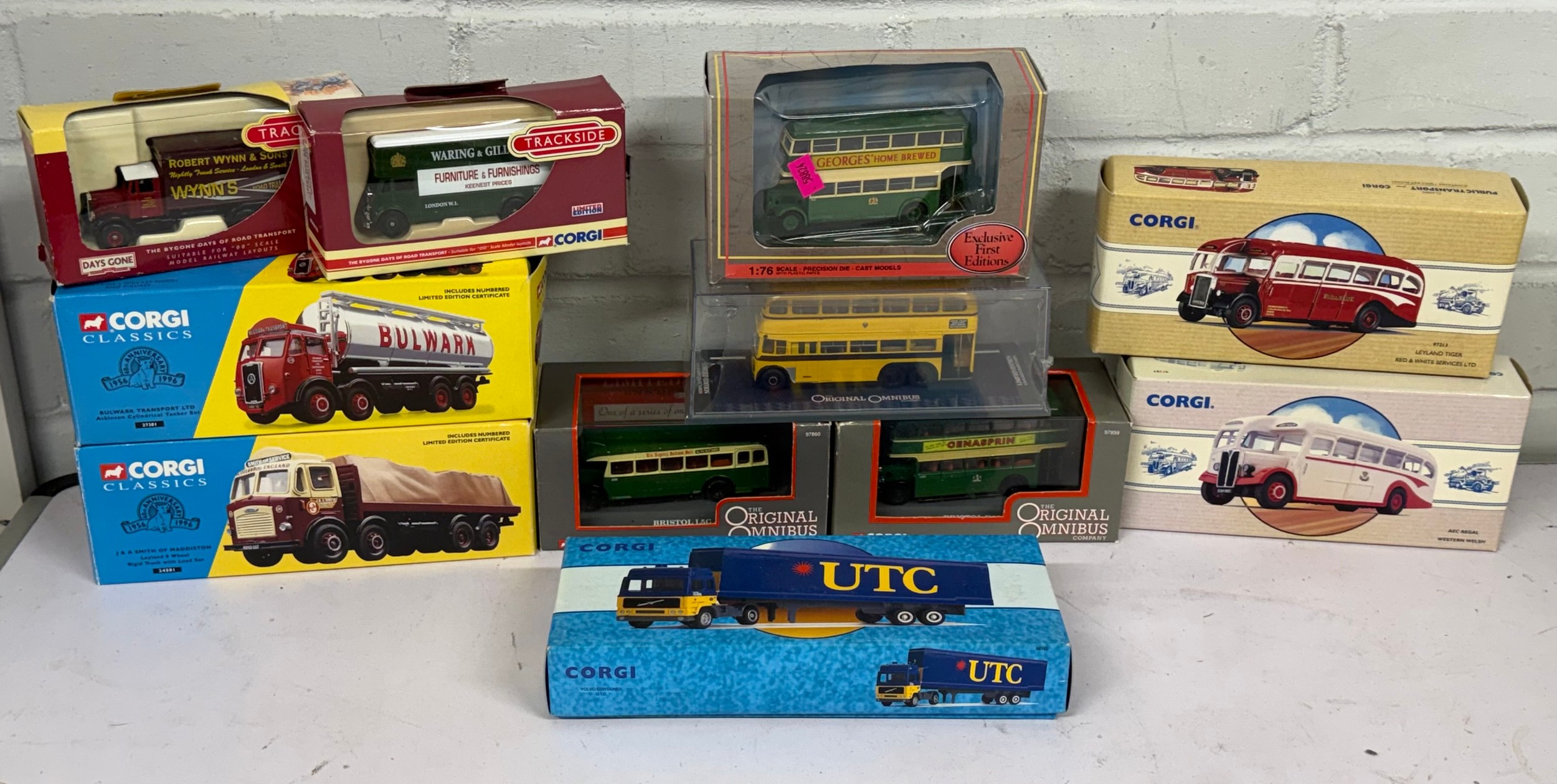 Corgi classics 27301, 24501, together with a Corgi Volvo container UTC, Corgi OOC buses and coaches etc