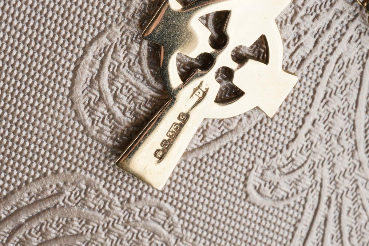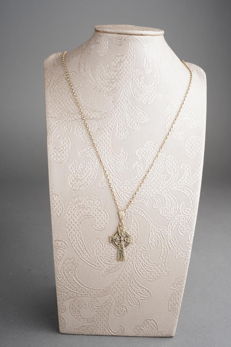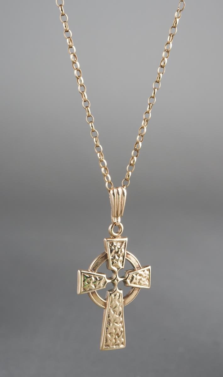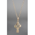 A 9ct gold cross pendant with chain. Pendant hallmarked 9ct gold, chain unmarked, approx length chain 540mm, approx gross weight 5.0 grams.