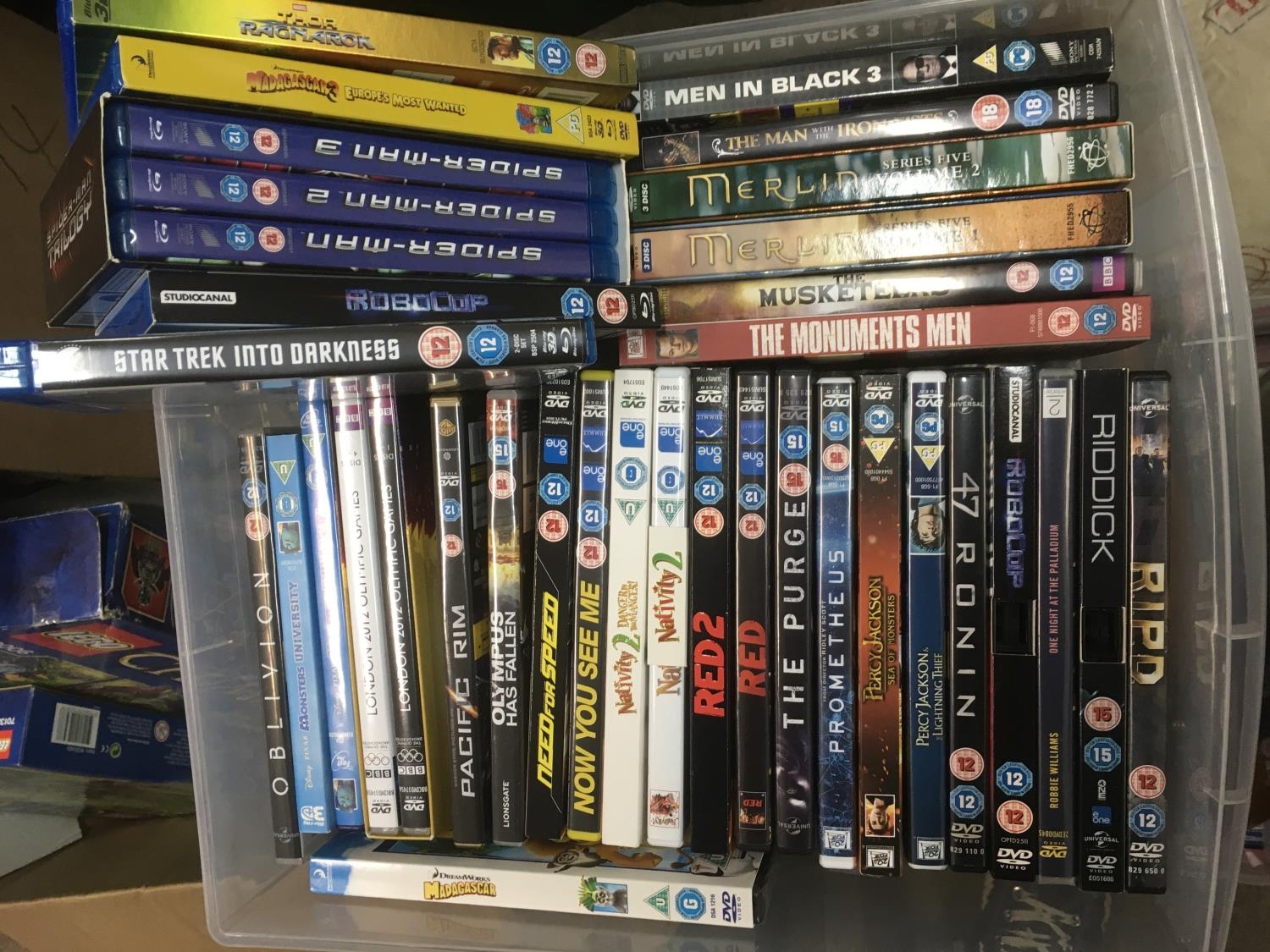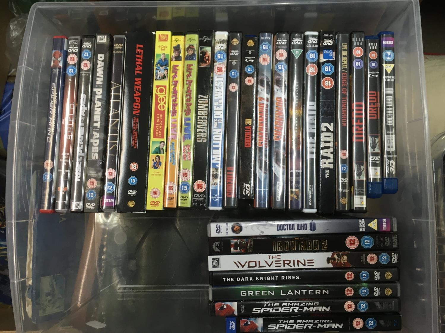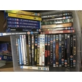 Four boxes of Blu Rays and DVDs including various box sets.