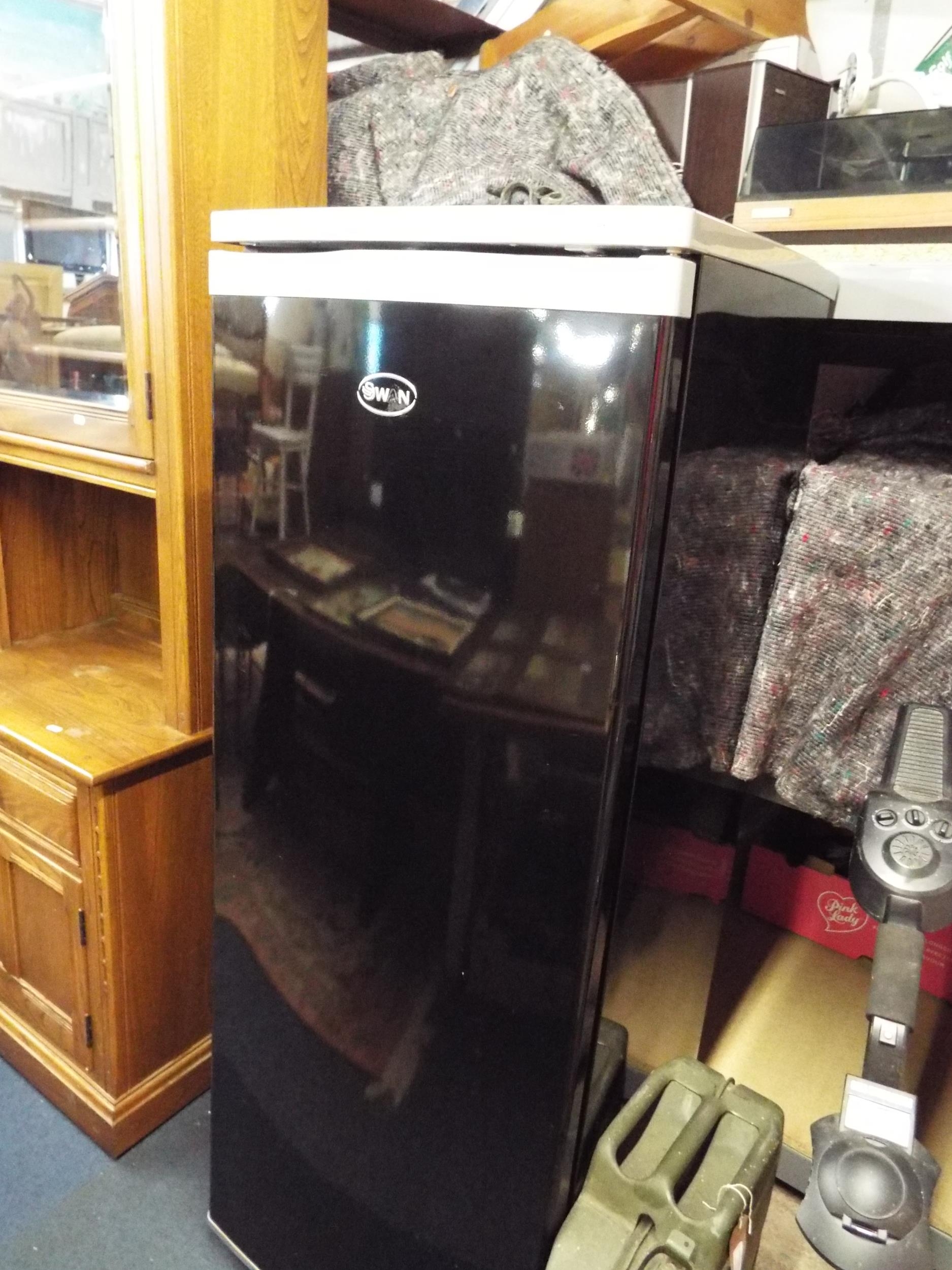 A Swan black and silver fridge