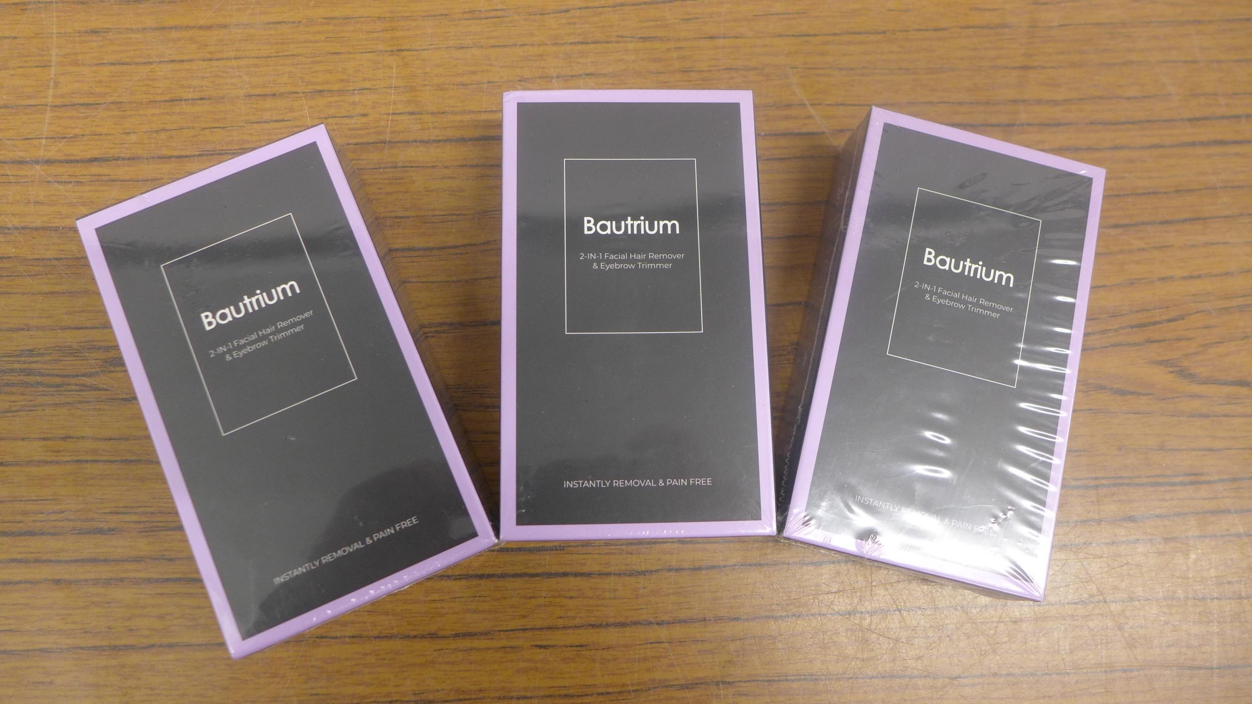 A box of 20 Bautrim 2-in-1 facial hair remover and eyebrow trimmers, unused