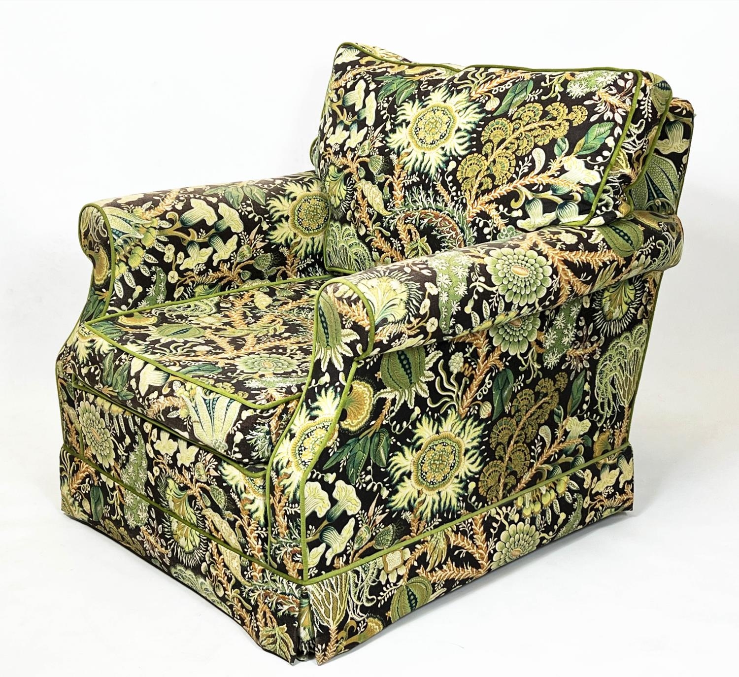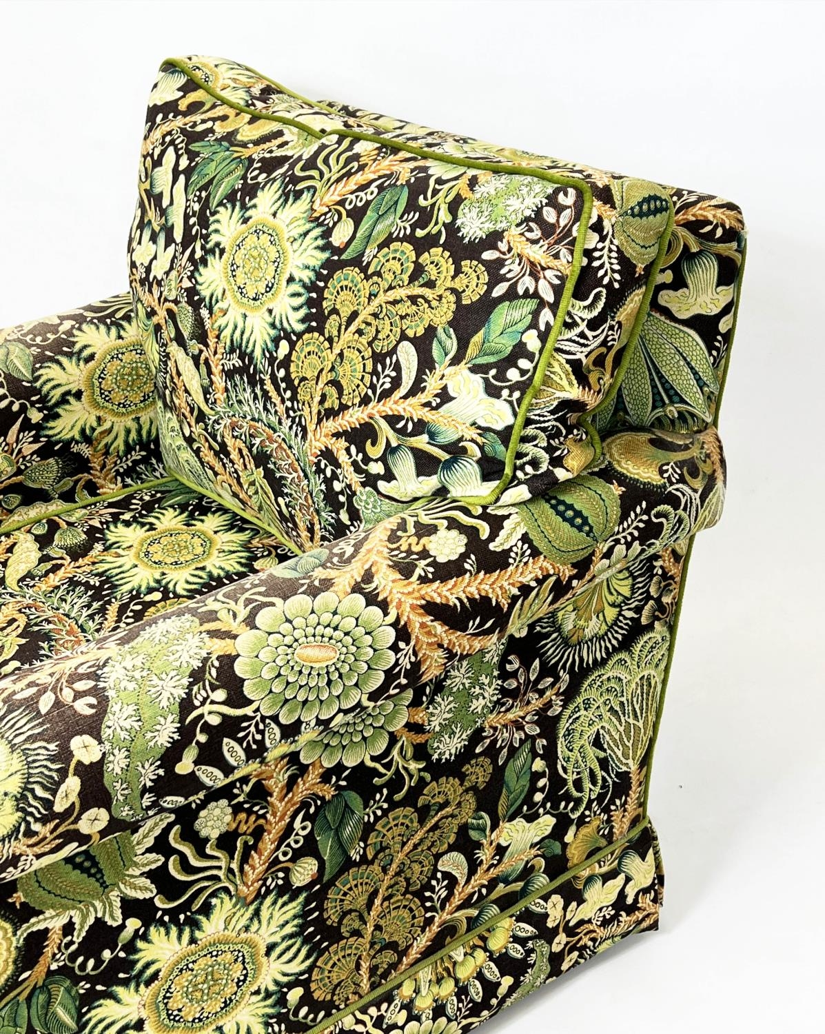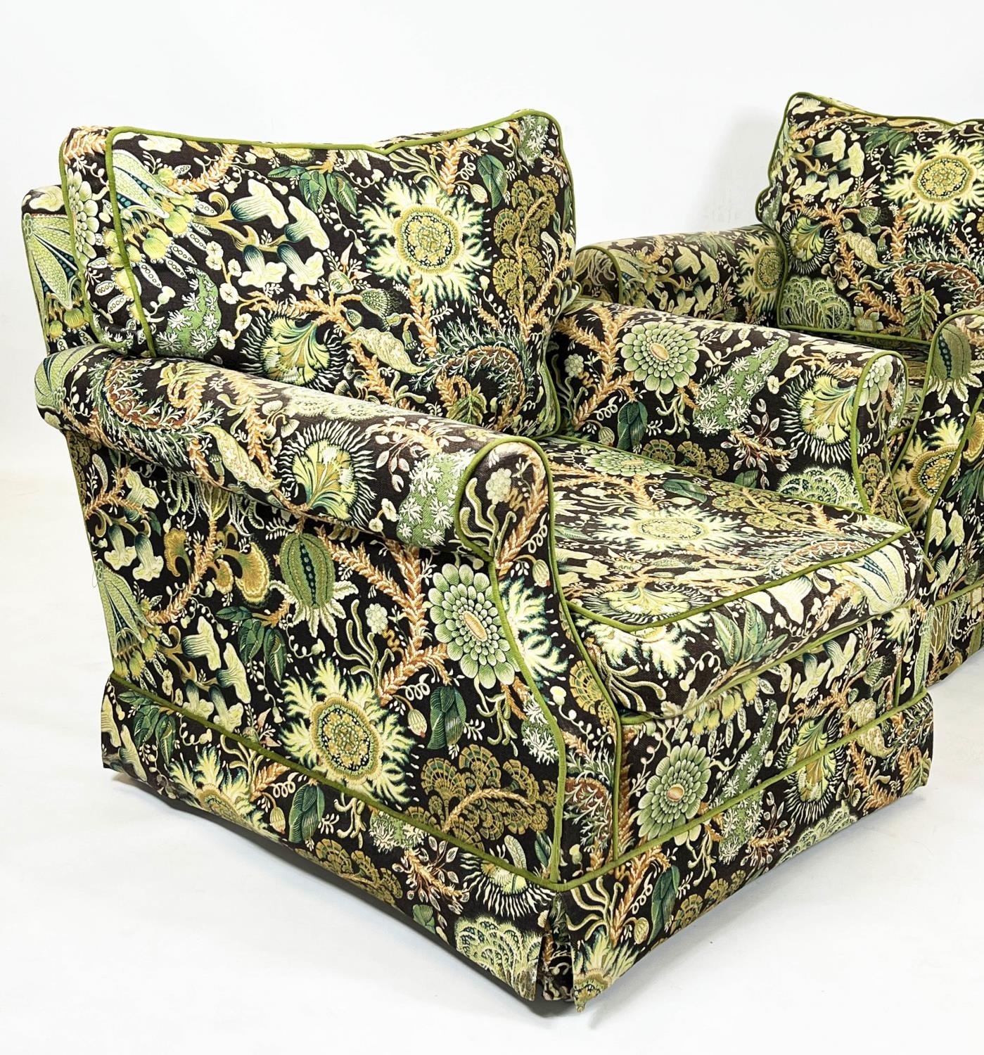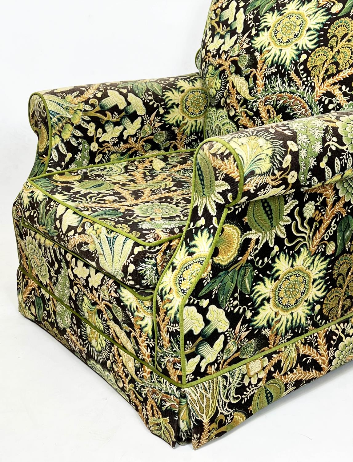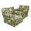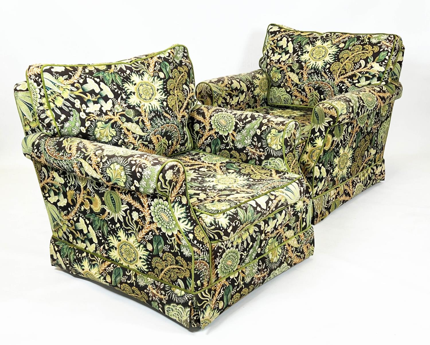DURESTA ARMCHAIRS, a pair, traditional design, upholstered in William Morris style botanical print upholstery, 74cm H x 84cm. (2)