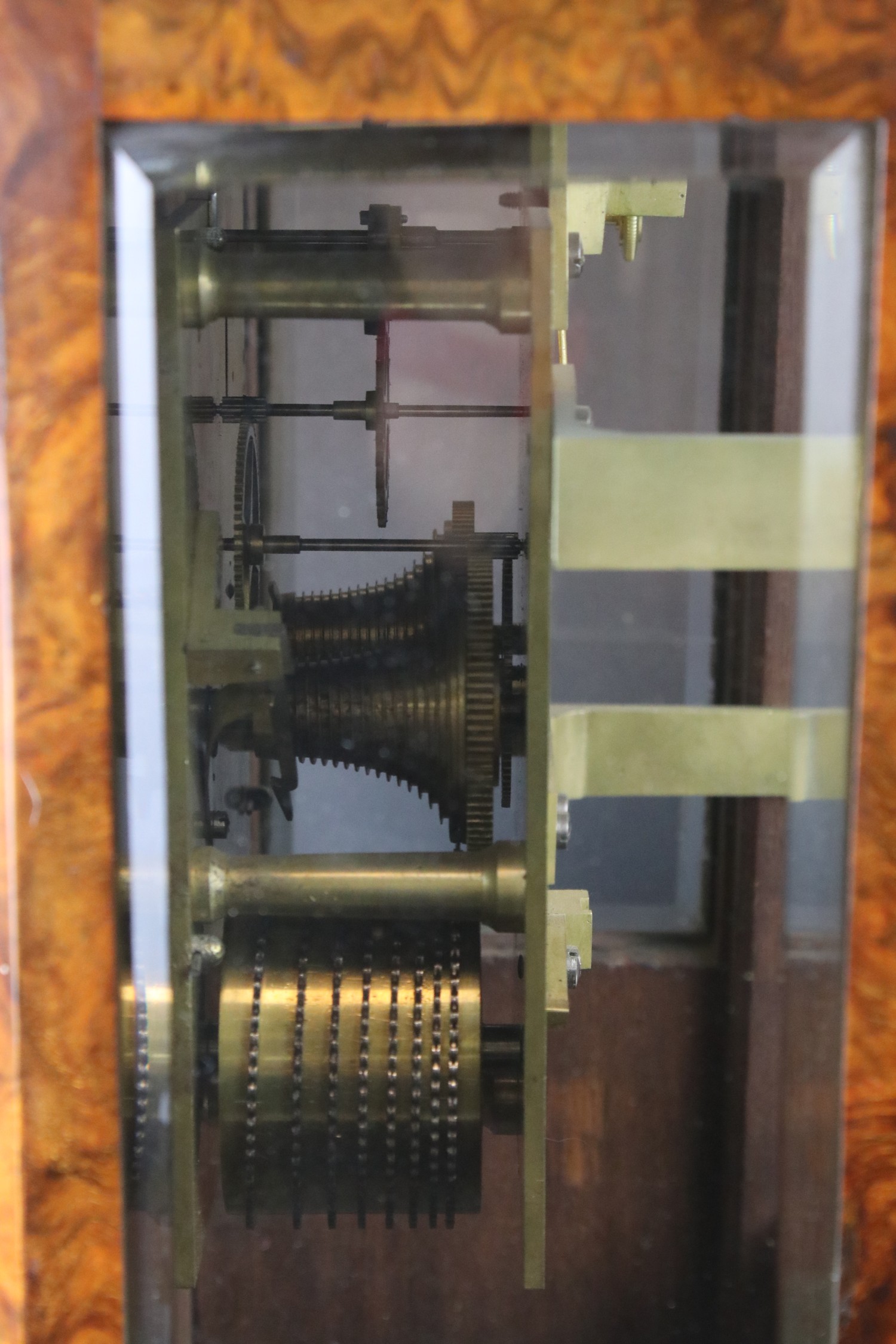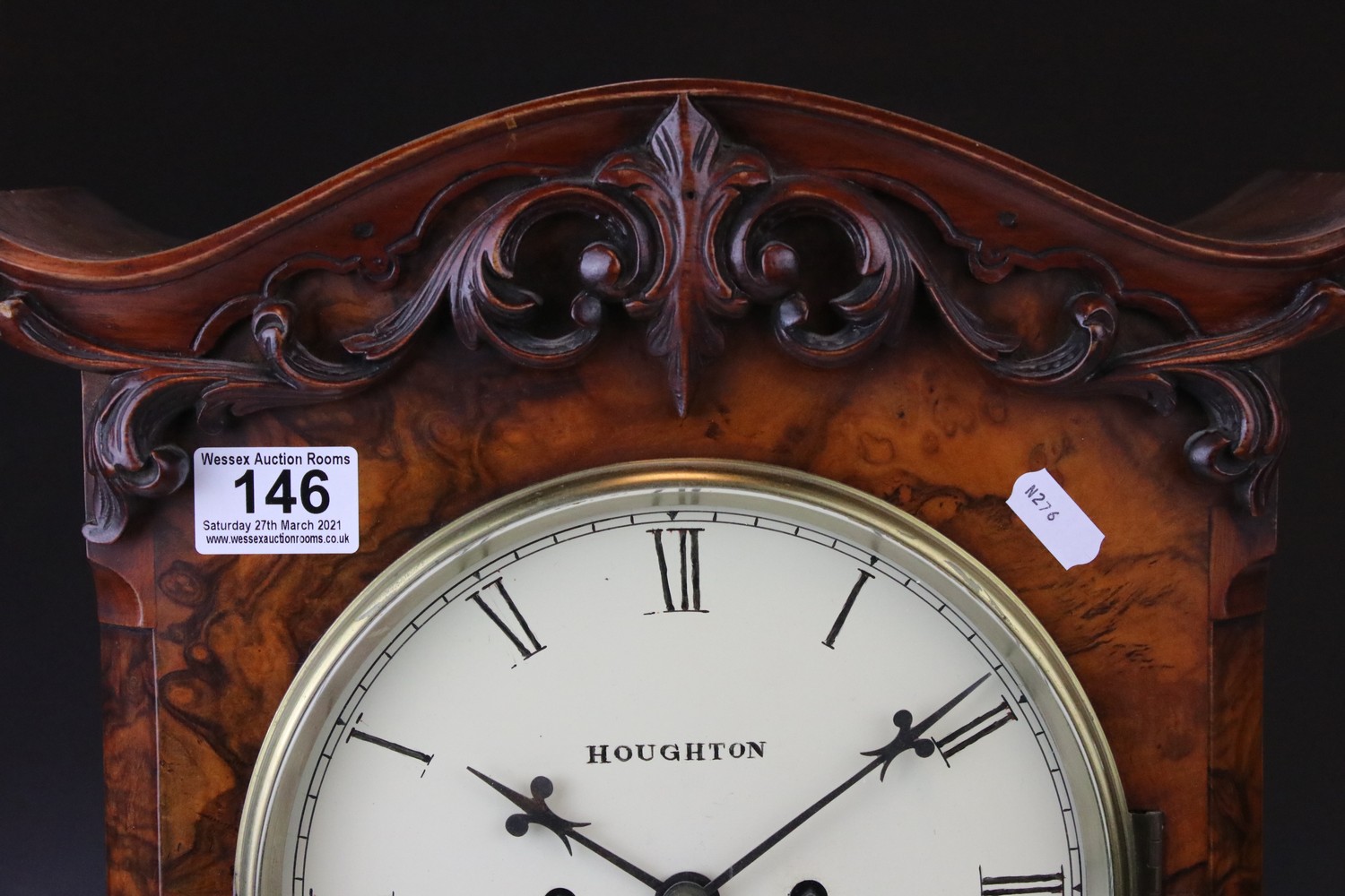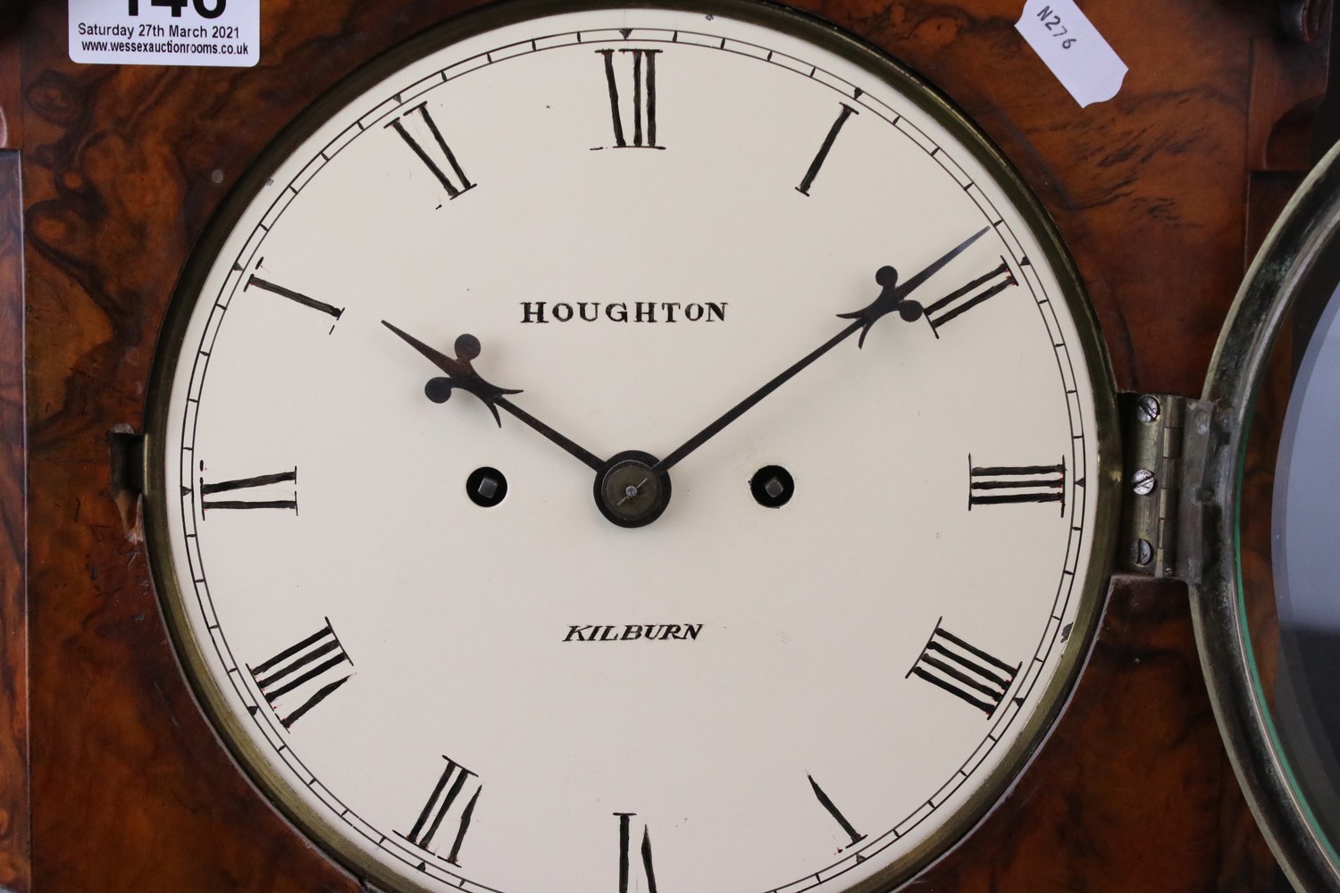 Houghton Of Kilburn 19th century burr walnut cased bracket clock with twin fusee movement with scrolling decoration.