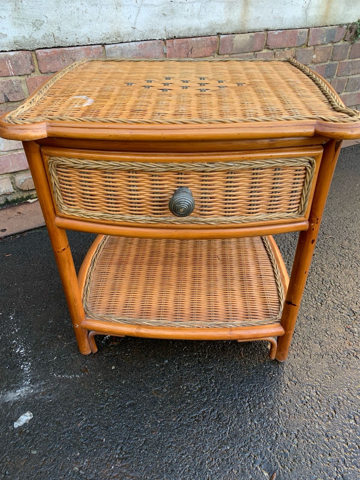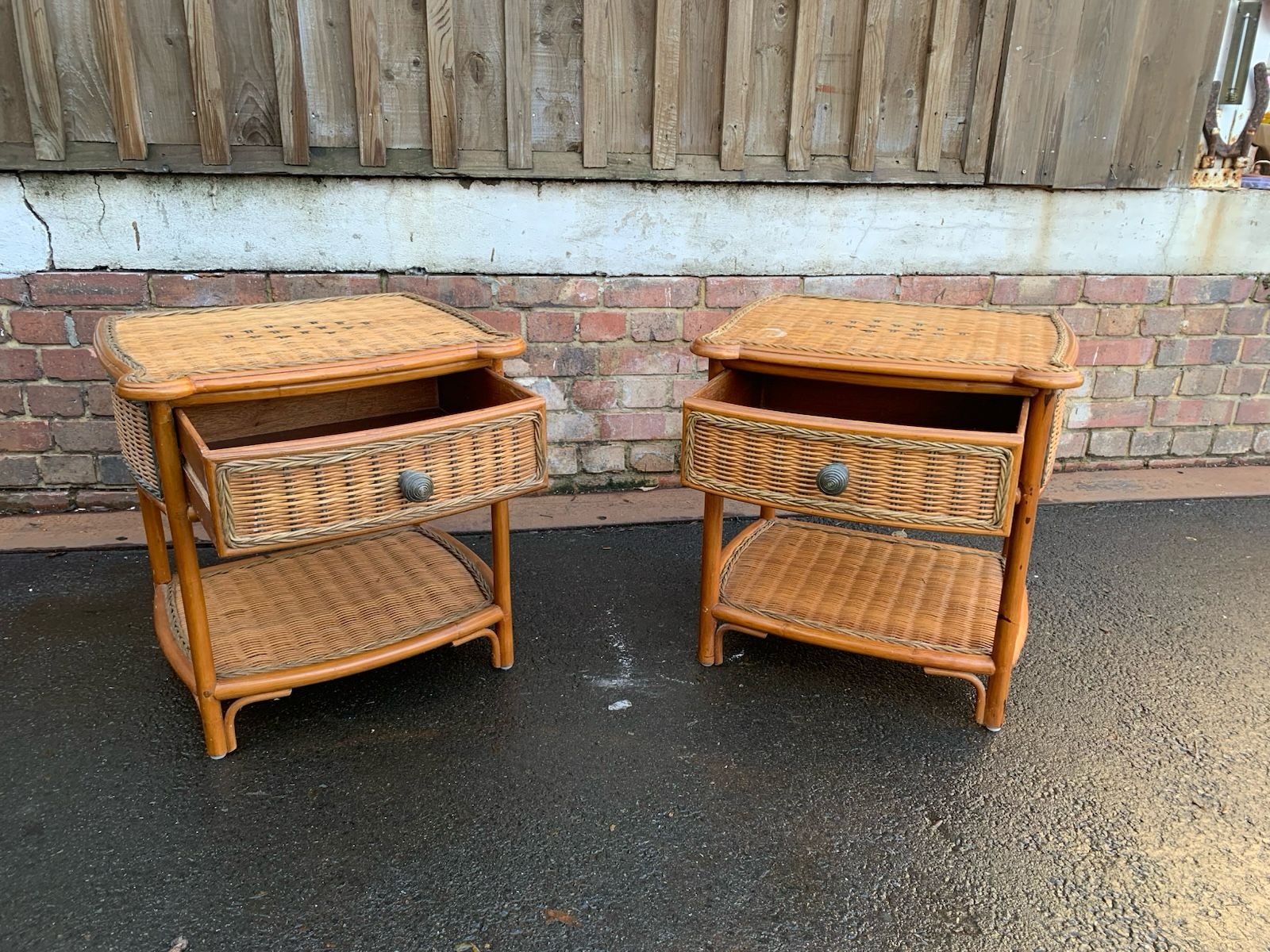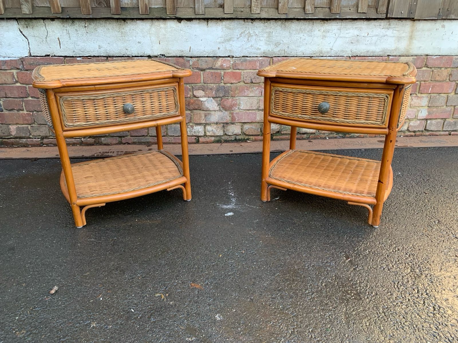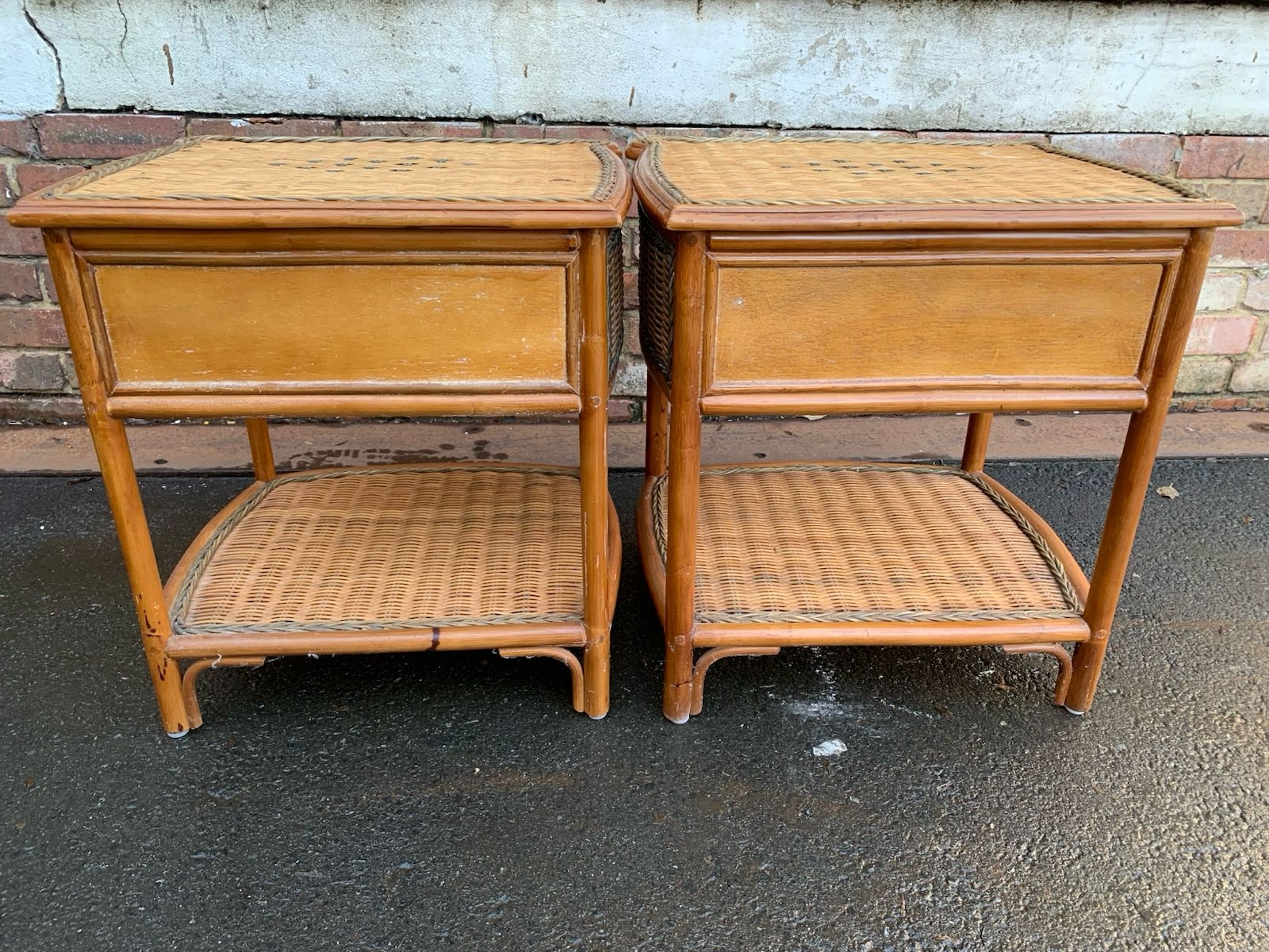 Pair of Vintage cane and rattan bedside tables