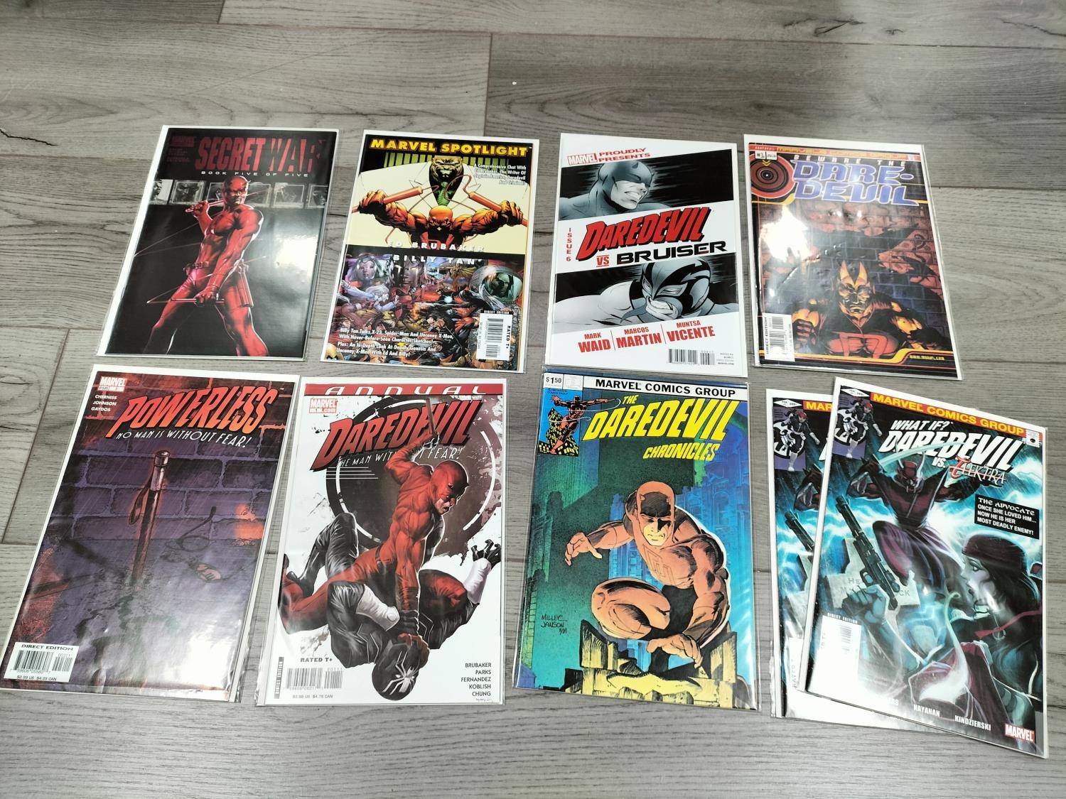 Marvel Daredevil Comics (30+), Various Titles to include 2005 Redemption, 2000 Ninja, 1982 Chronicles No 1, What If?, Marvel Universe 2004 Dareddevil, 2005 Secret War Book 5 of 5, 2003 Movie Adaption No1, etc. Bagged and Boarded