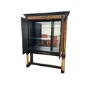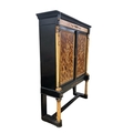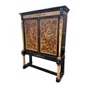 A painted Empire style faux marble two door cabinet on stand, width 140cm, depth 39cm, height 180cm