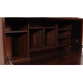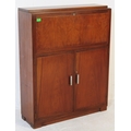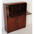 British Modern Design - A retro mid 20th century teak circa 1960s student bureau. The bureau having fall front door with appointed interior over twin door cabinet over plinth base.
