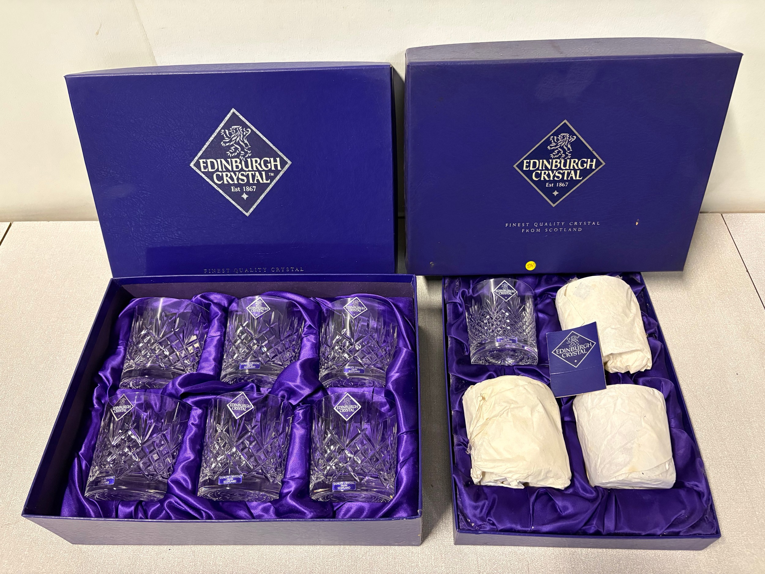 2 sets of boxed Edinburgh crystal glasses