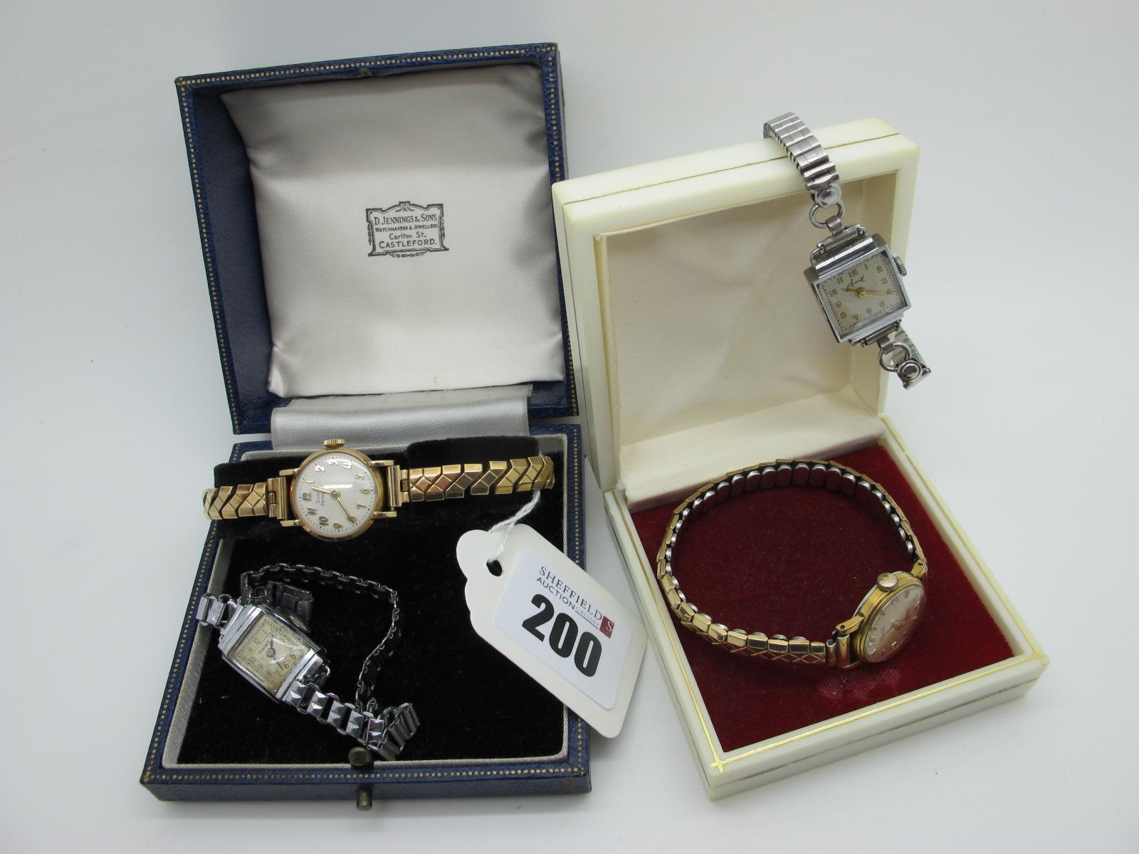 Girard Perregaux; A 9ct Gold Cased Ladies Wristwatch, the signed dial with Arabic numerals, the movement signed "Girard Perregaux" and numbered "7909115", within plain case, Birmingham 1961, on an expanding bracelet; together with two Art Deco style ladies wristwatches and another. (4)