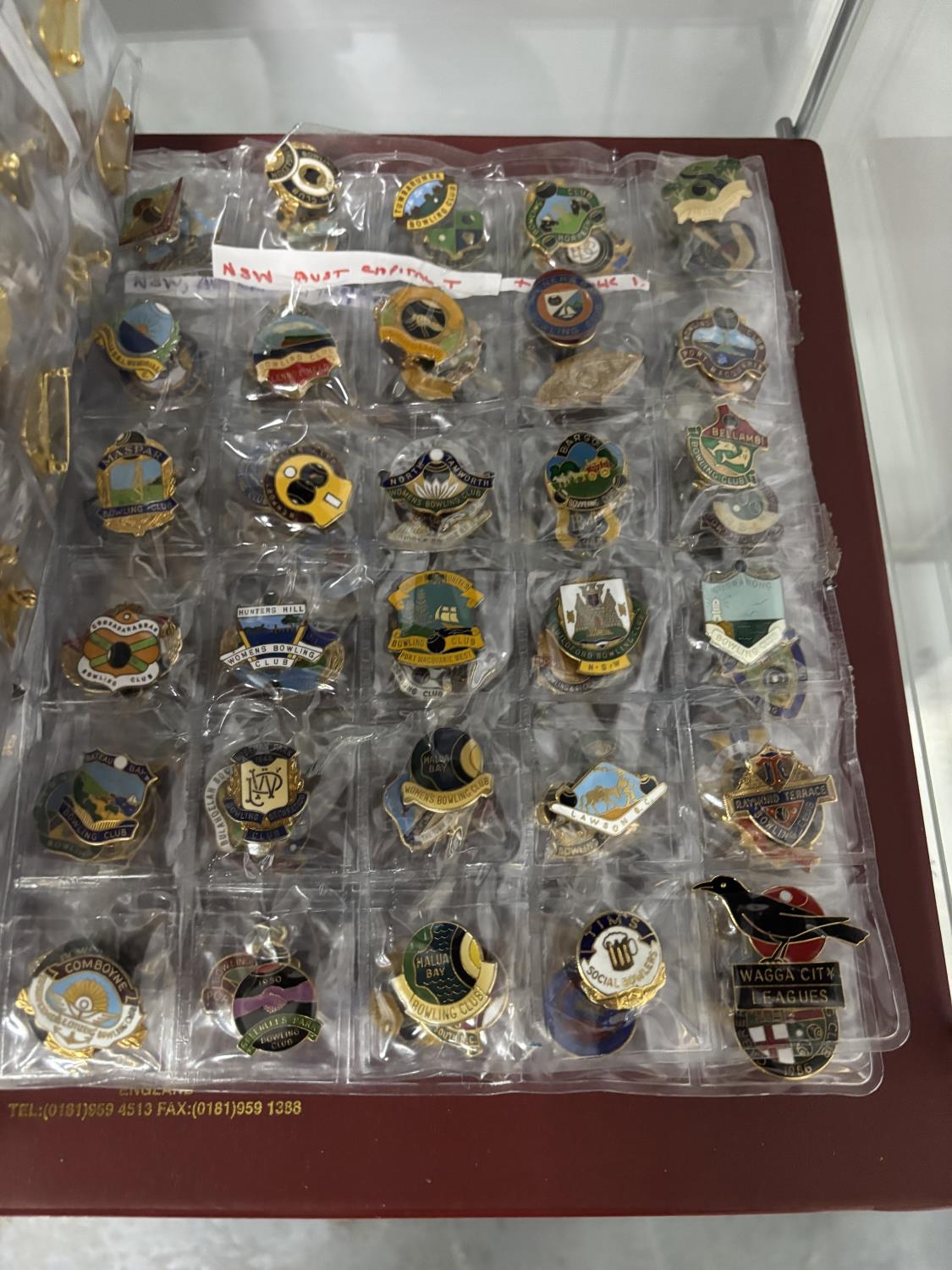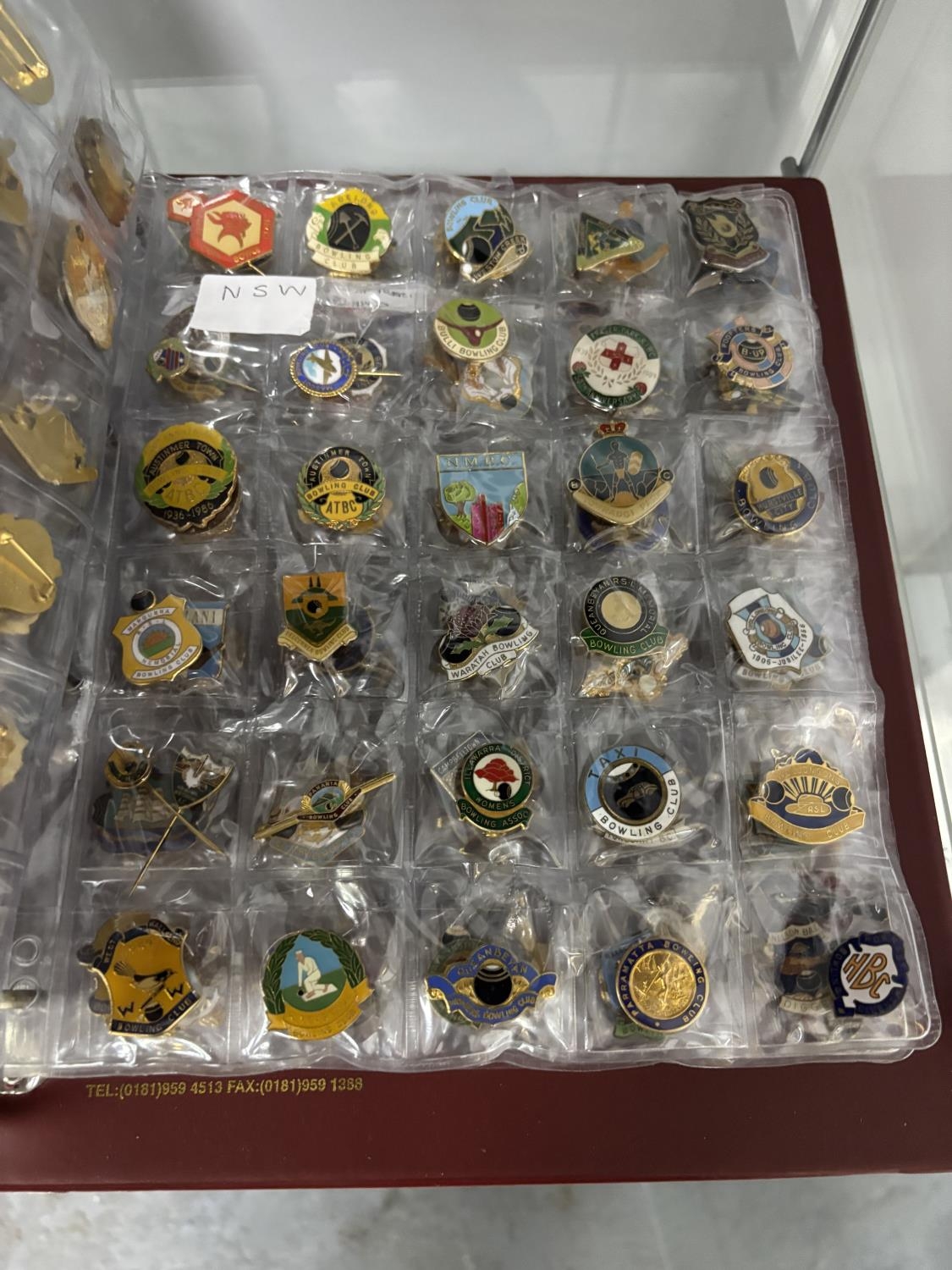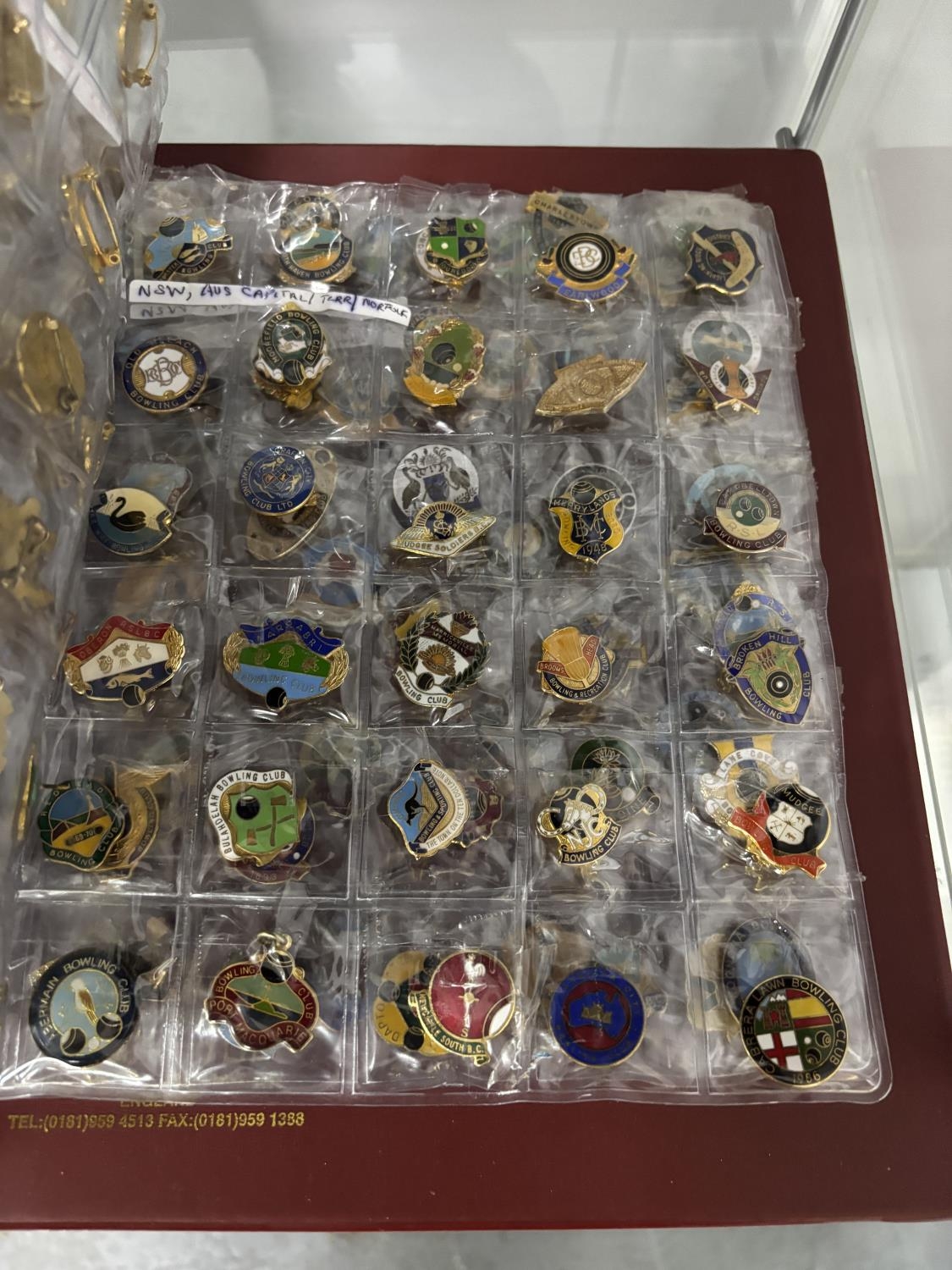 FOLDER OF NEW SOUTH WALES BOWLING BADGES OVER 300 BADGES IN THE FOLDER PLEASE SEE PICTURES FOR DETAILS