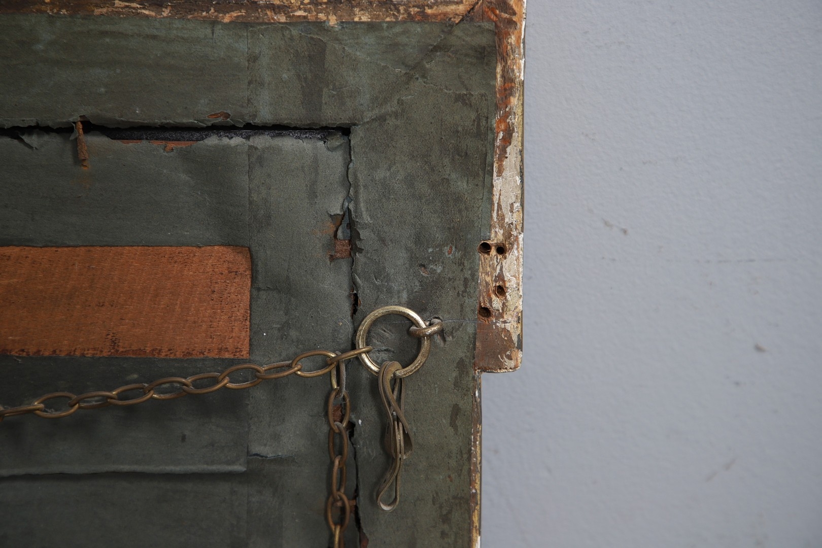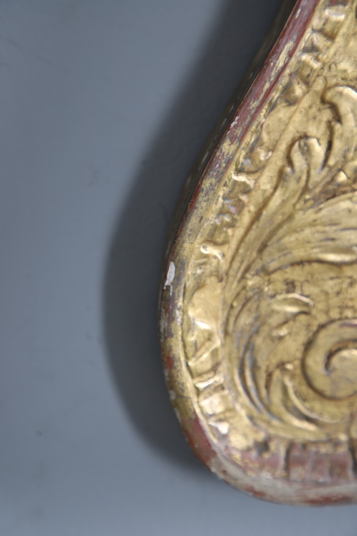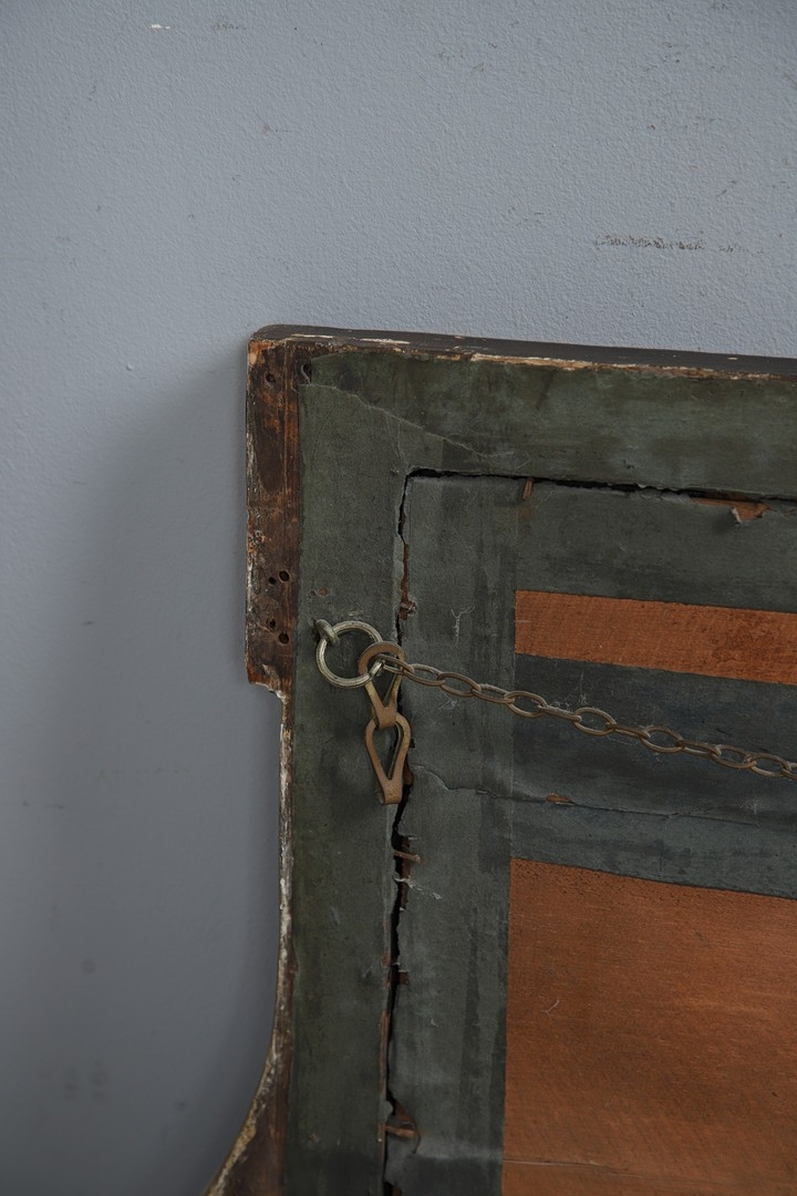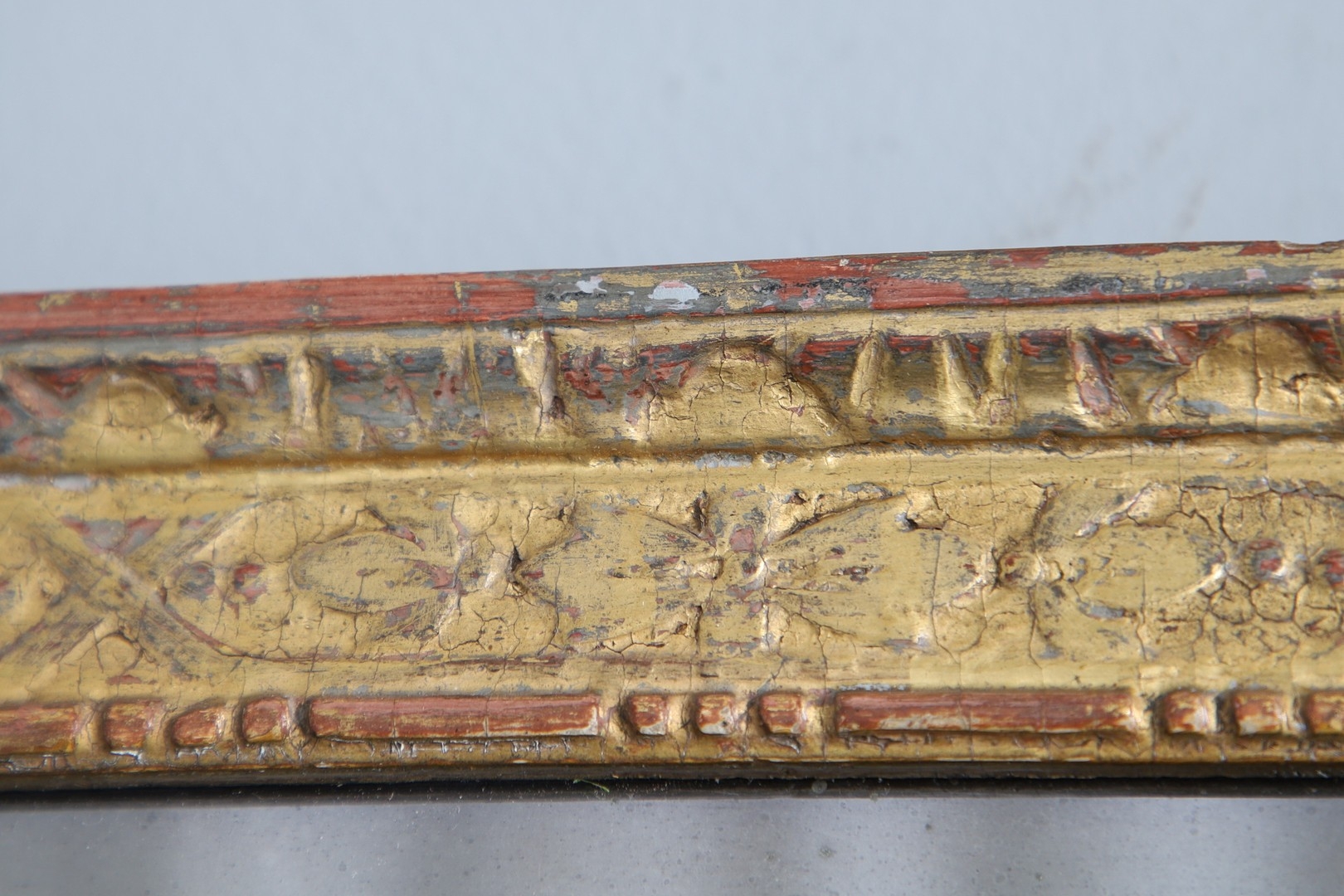A GEORGE II GILTWOOD AND GESSO OVERMANTLE MIRROR. the bevelled plate to a shallow-relief moulded frame of Classical motif decoration, height, 49cm, width 96cm.