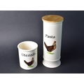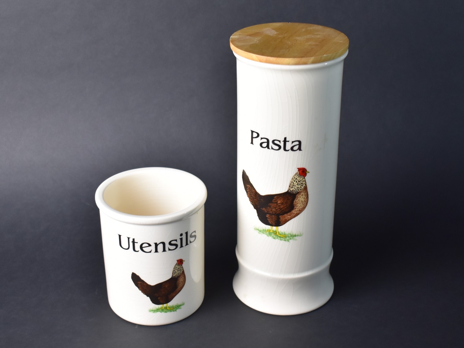 Two English Pottery Cloverleaf Poultry Decorated Storage Jars Decorated for 'Pasta' and 'Utensils'