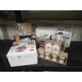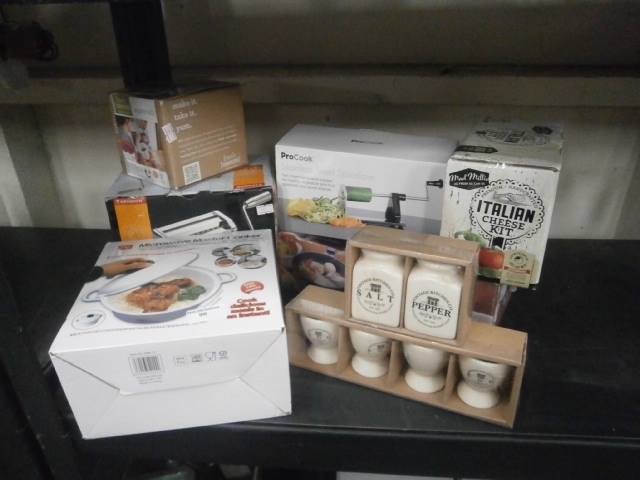 Assorted kitchen gadgets including spiralizer pasta maker etc