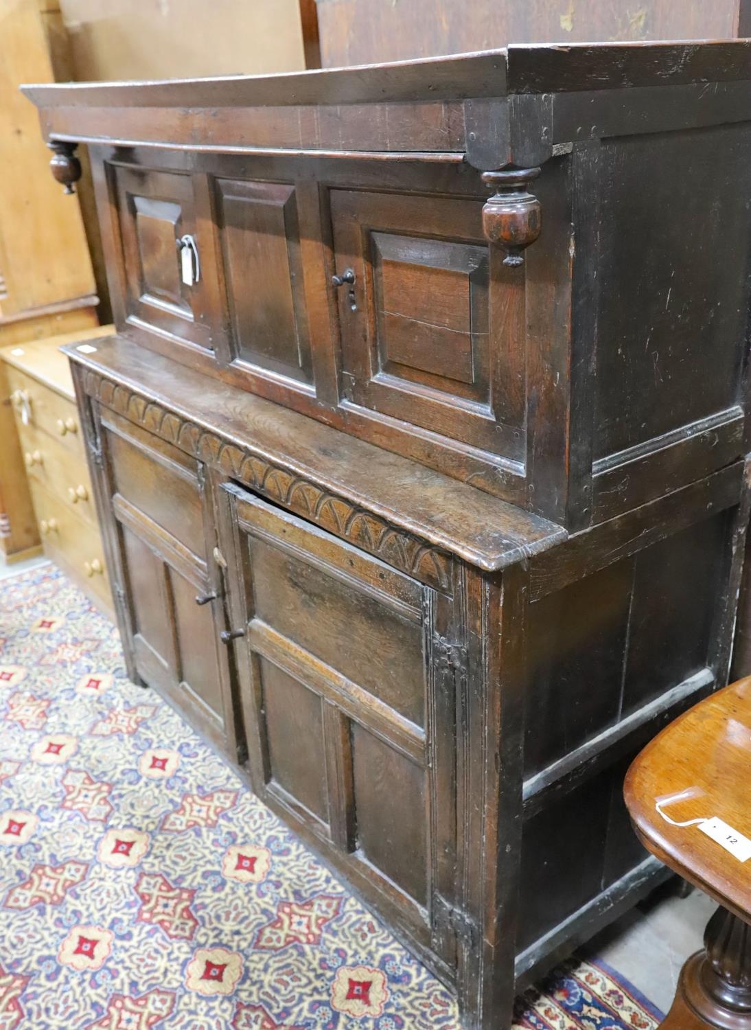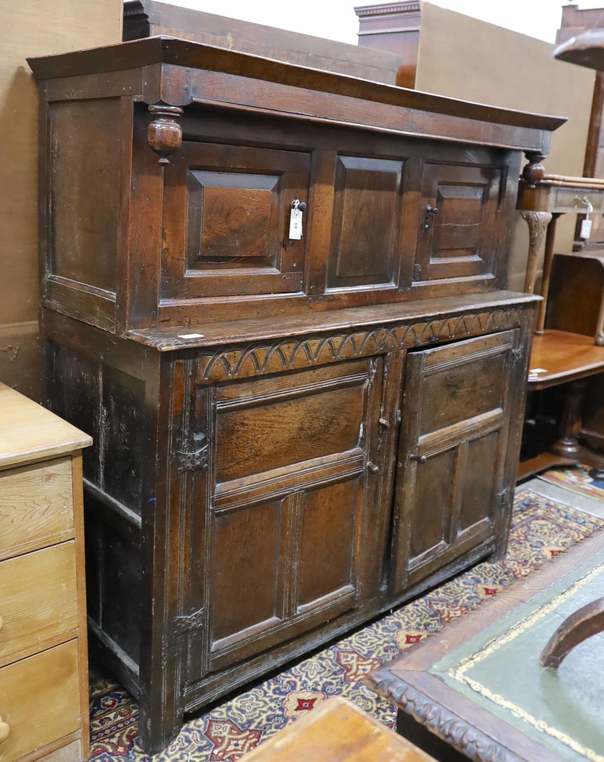 An 18th century oak court cupboard, length 147cm, depth 58cm, height 152cm