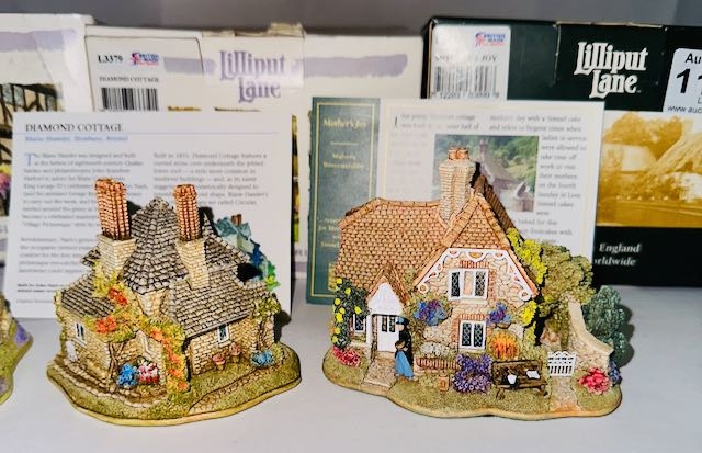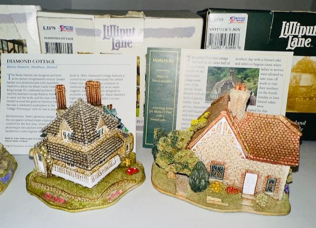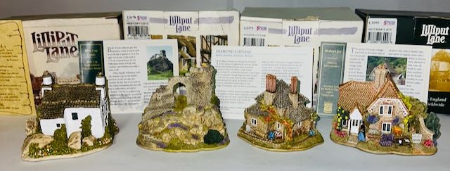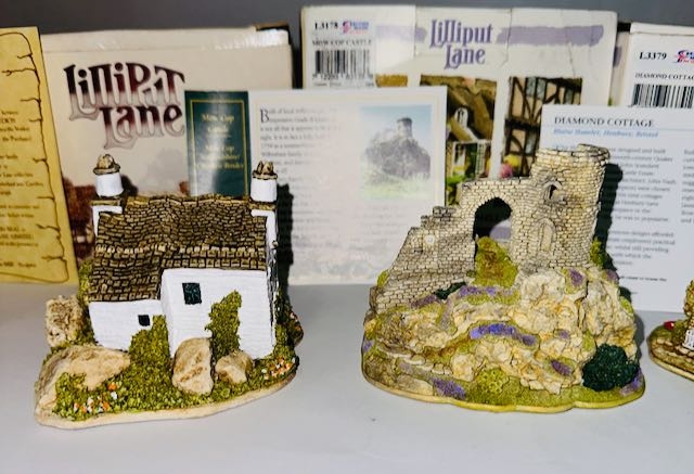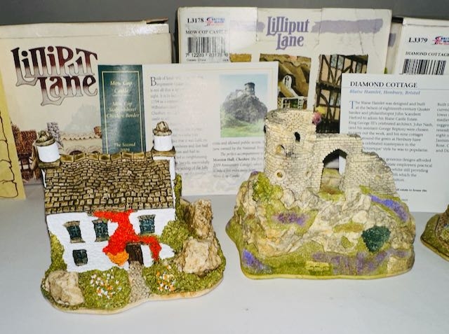 Boxed Lilliput Lane x4 - Stoneybeck, Mow Cop Castle, Diamond Cottage + Mother's Joy with Deeds