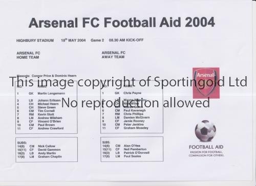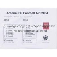 AT ARSENAL / FOOTBALL AID 2004 Single sheet programme for Game 1 17/5/2004. Good
