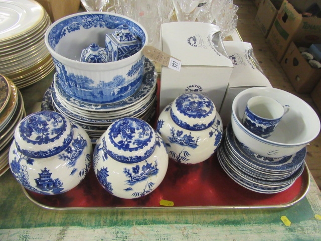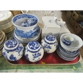 TRAY OF BLUE AND WHITE CHINA INCLUDING RINGTONS