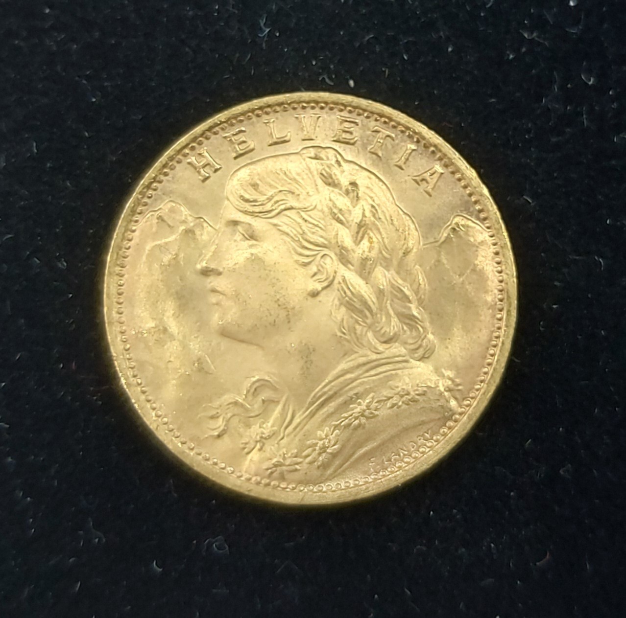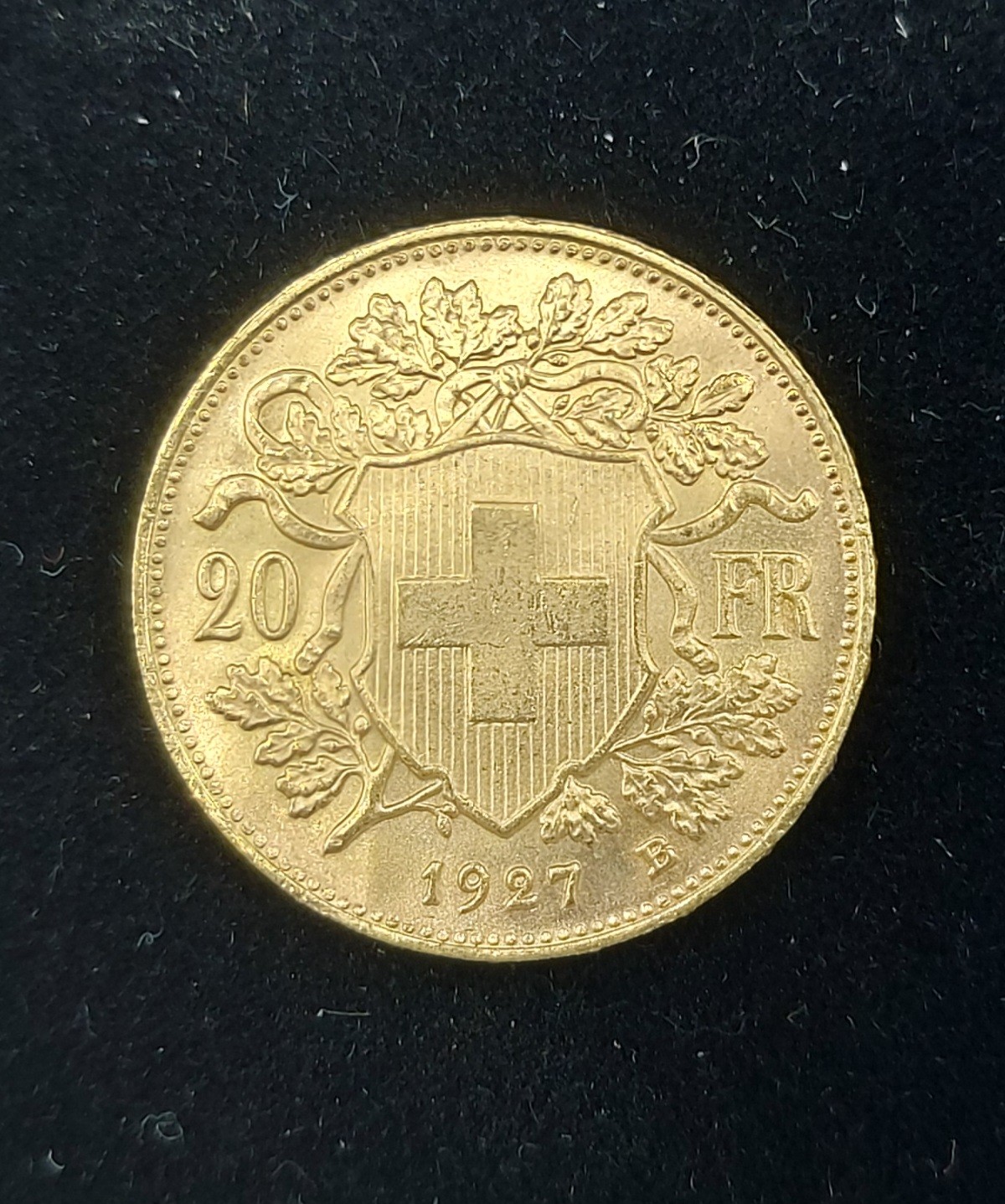 A Swiss 20 Franc Gold Coin dated 1927