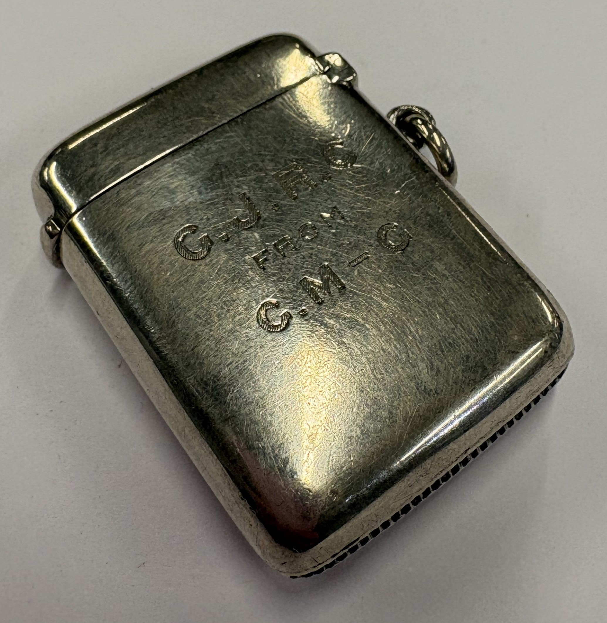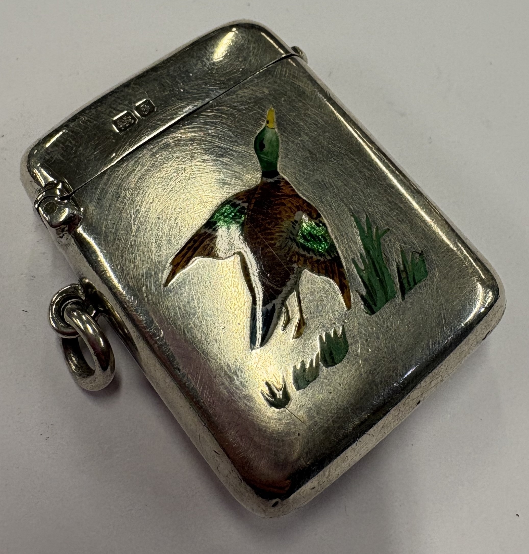 CHESTER: A silver and enamelled vesta case depicting a duck. 1906. By JMB. Approx. 36 grams. Est. £40 - £60.