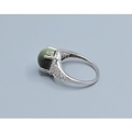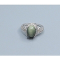 925 silver ladies Cats eye cabochon dress ring with ornate clear gem stone shoulder decoration size R