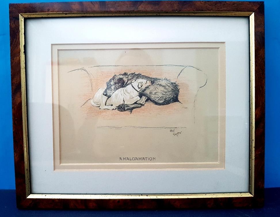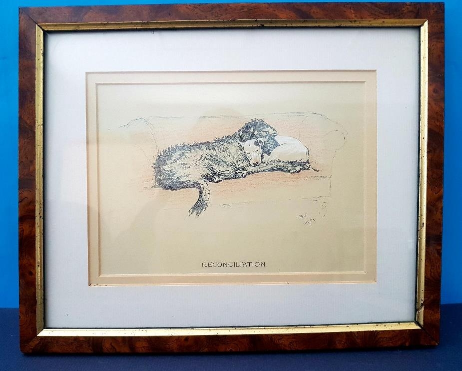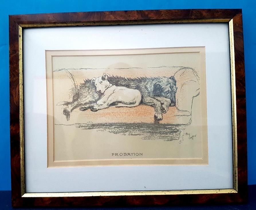 Set of 3 vintage Cecil Aldin titled Dog Prints 12cm x 17cm, Probation, Amalgamation and Reconciliation 11 inches x 9 inches