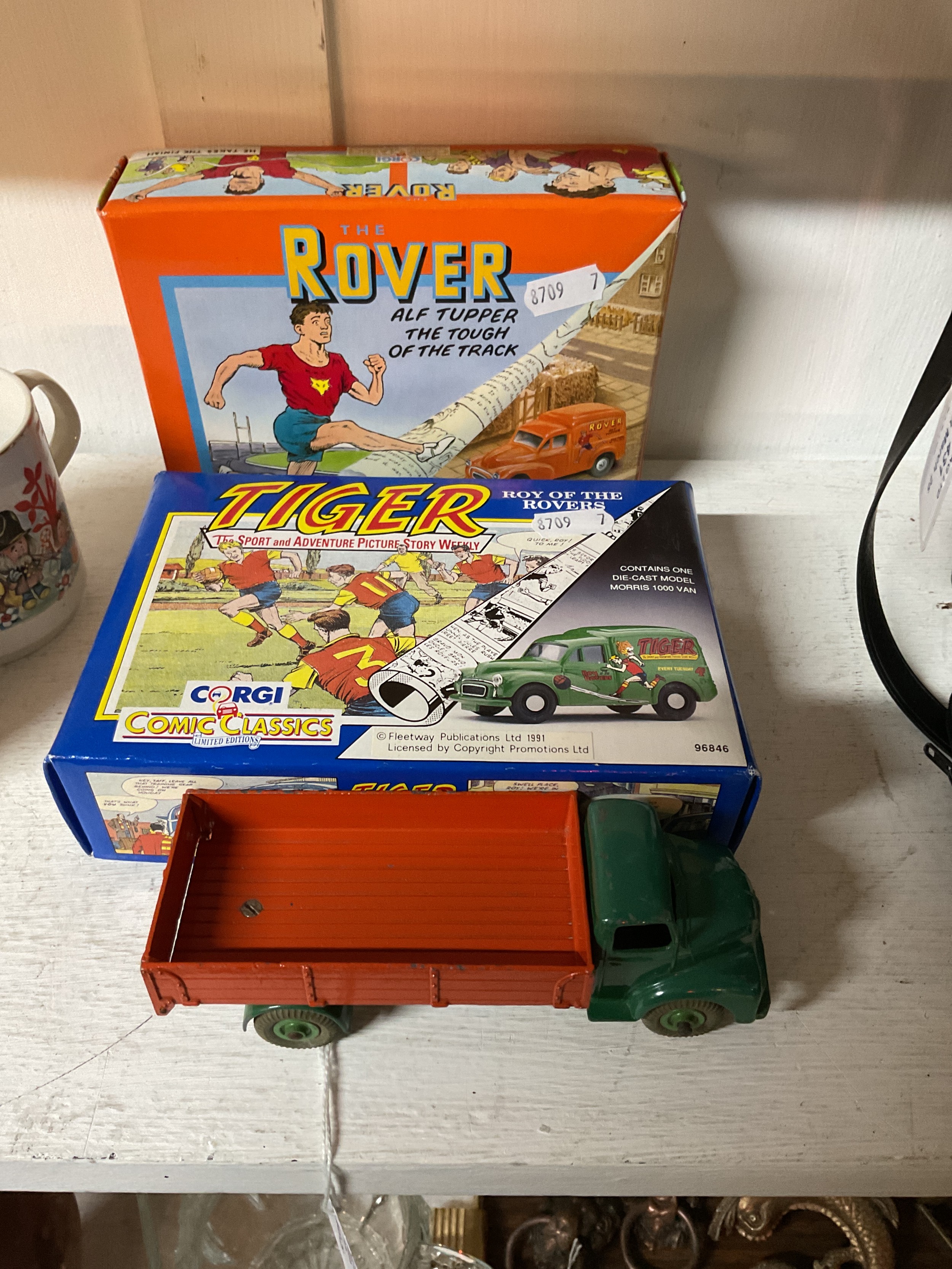 A boxed Corgi Comic Classics 'Tiger Roy of the Rovers', 'The Rover Alf Tupper' and a Dinky 'Leyland Comet'