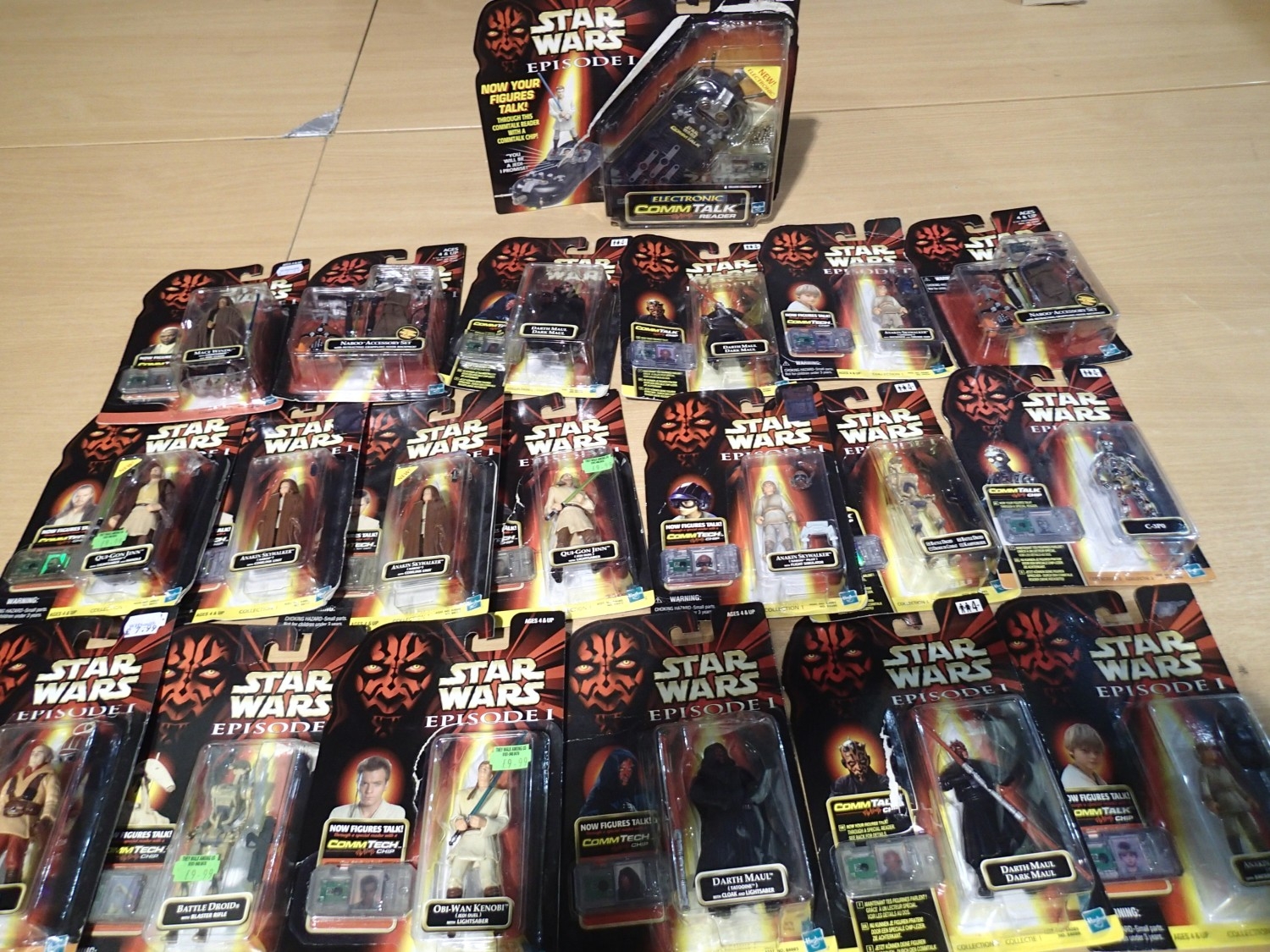 Seventeen Star Wars "Episode 1"Comm Tech figures, plus 2x accessory packs and Comm Tech reader, all in blister packs with wear. UK P&P Group 2 (£24+VAT for the first lot and £5+V 12 AT for subsequent lots)