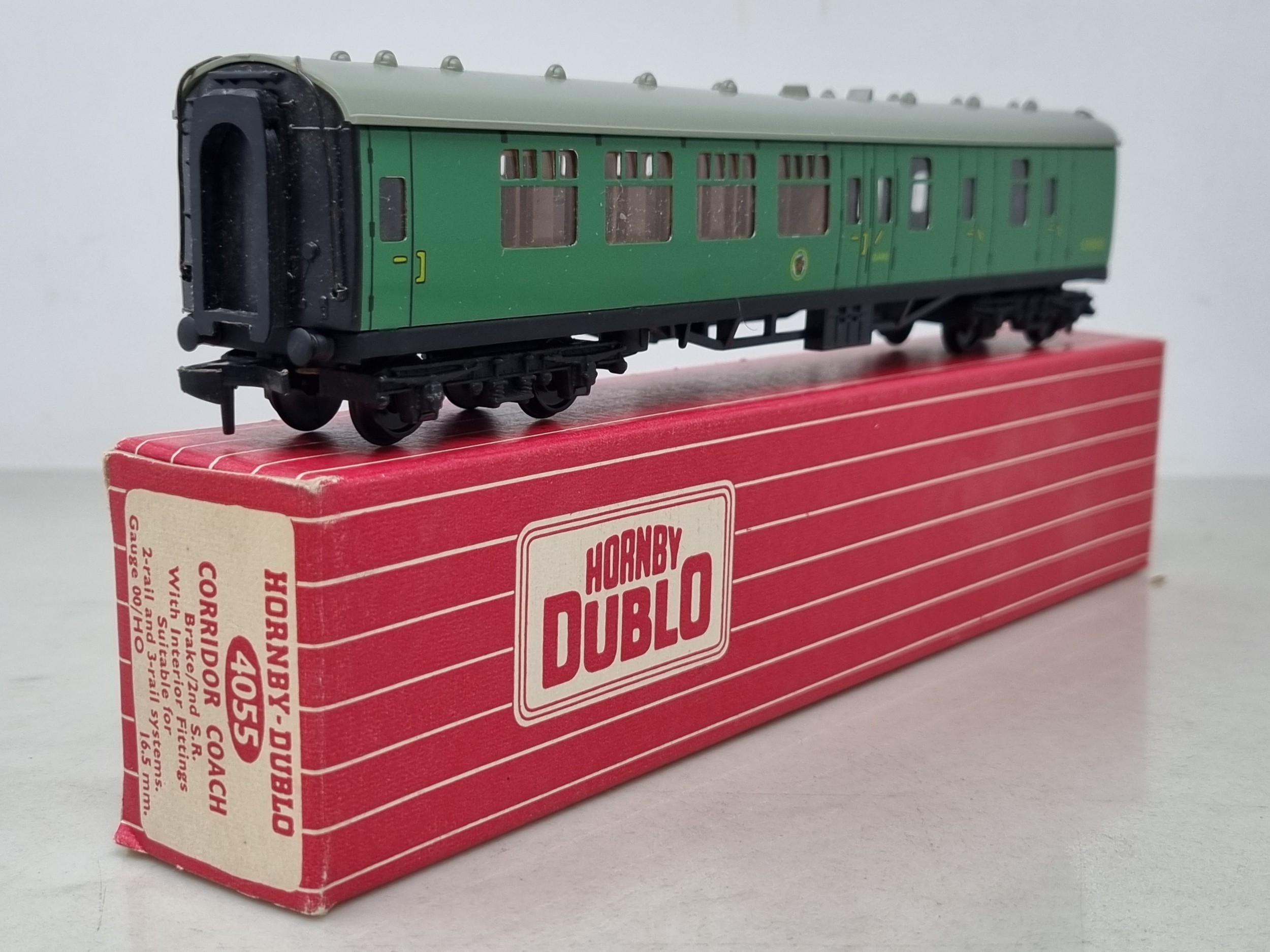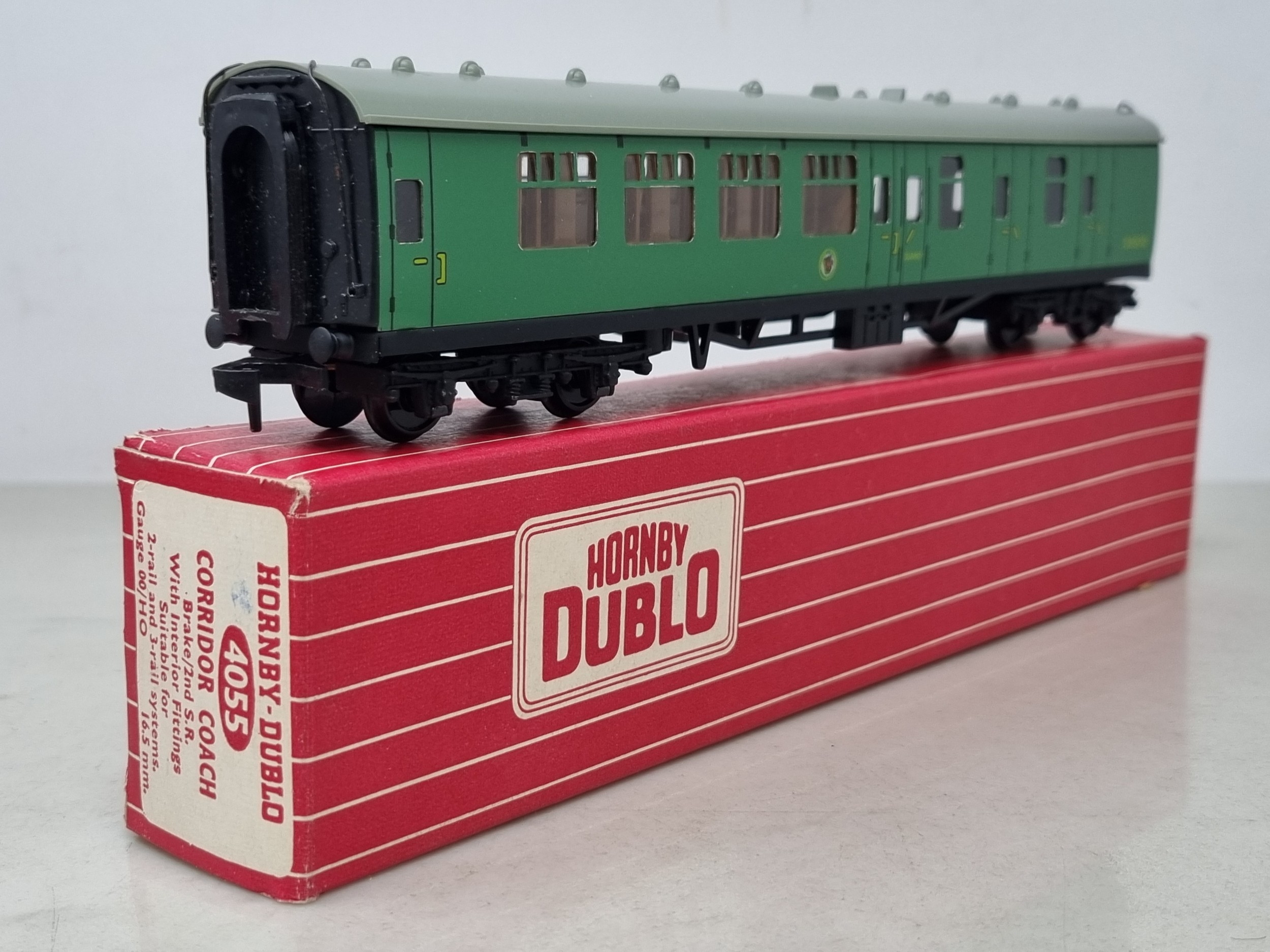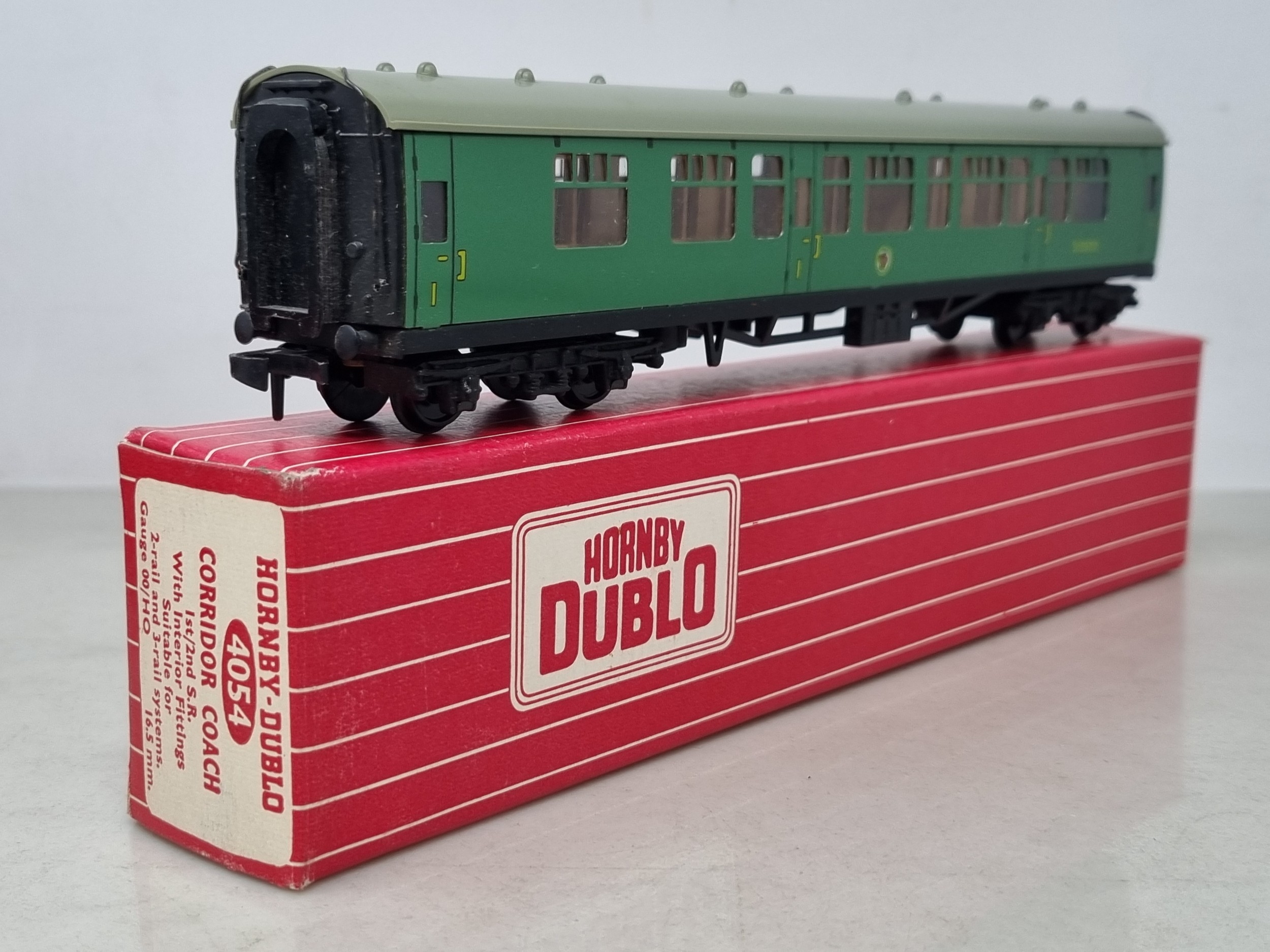 Three boxed Hornby Dublo SR Corridor Coaches comprising 4054 and 2x 4055, all M showing no signs of use, boxes superb