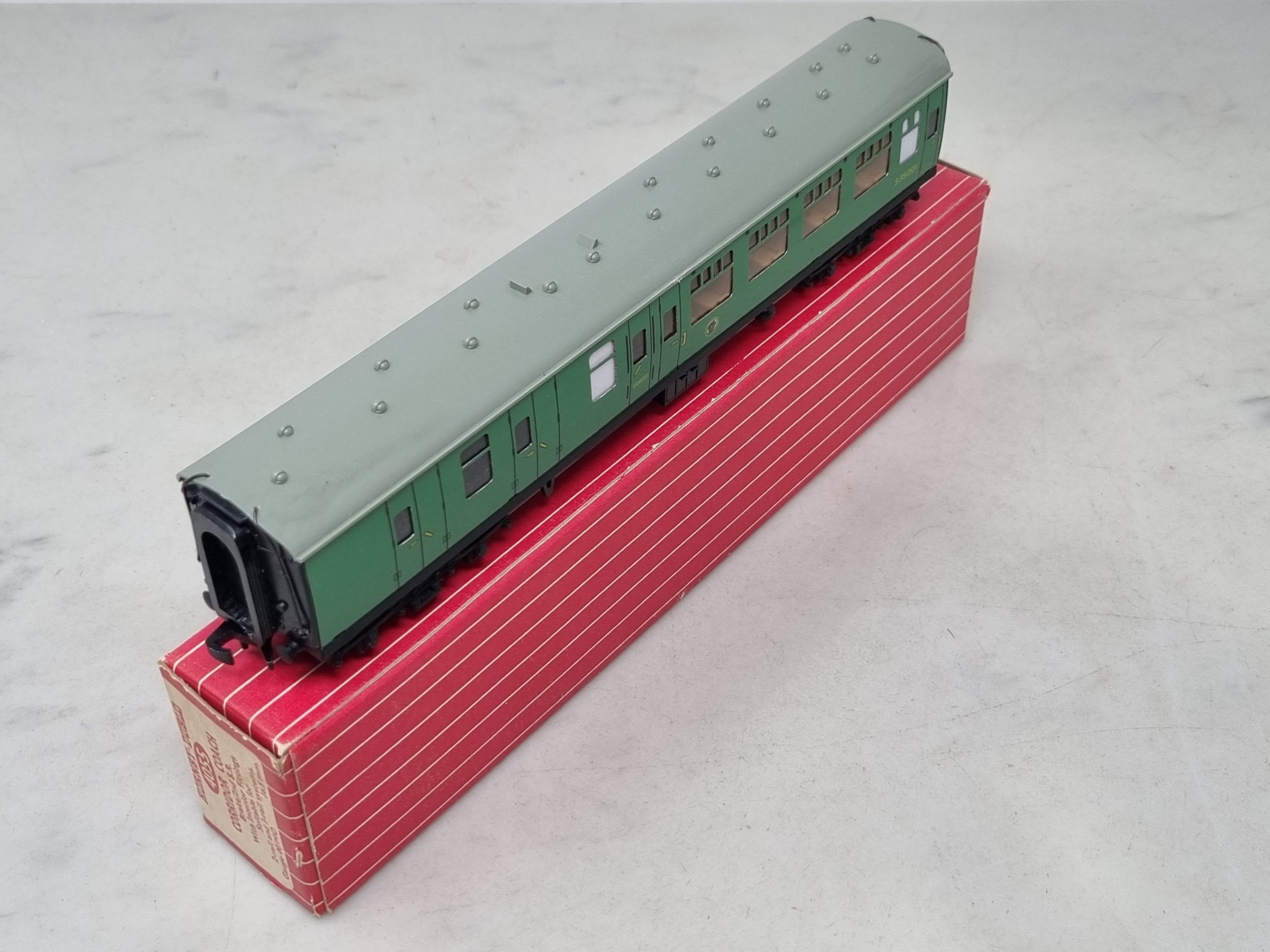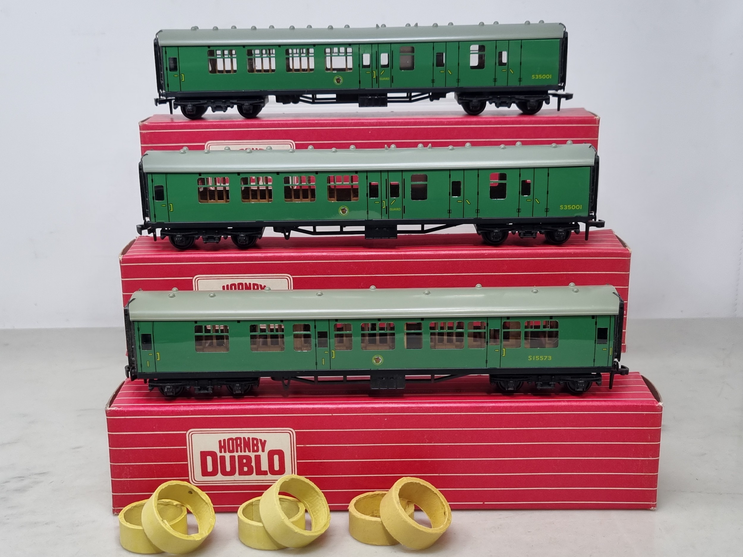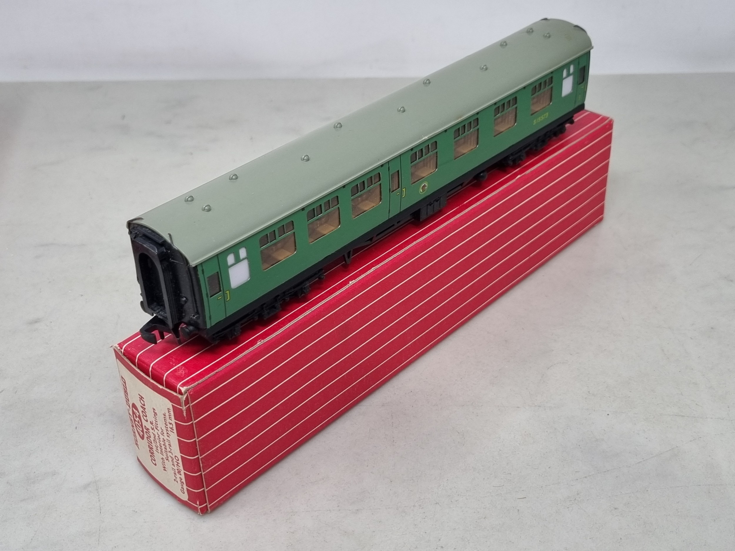 Three boxed Hornby Dublo SR Corridor Coaches comprising 4054 and 2x 4055, all M showing no signs of use, boxes superb