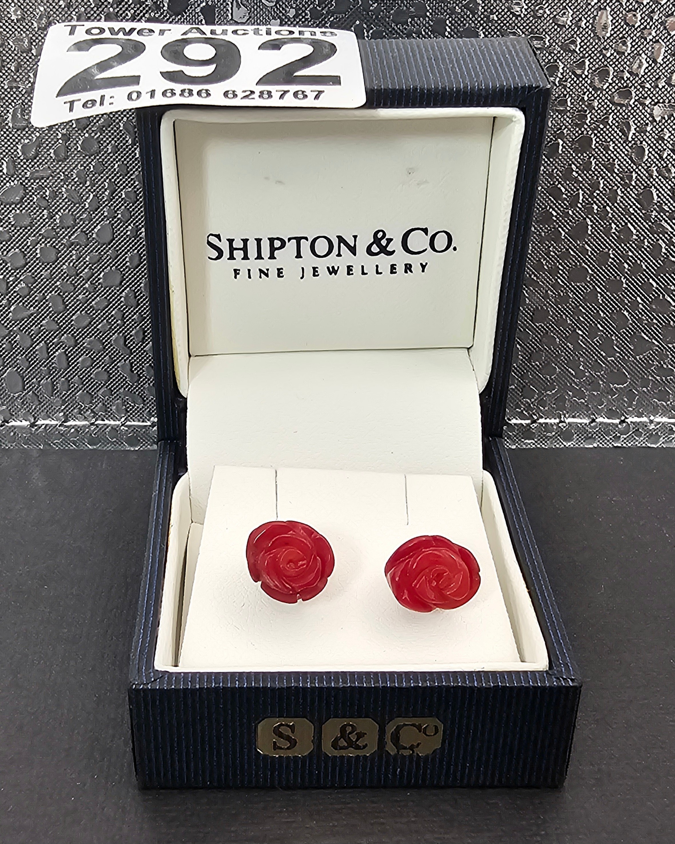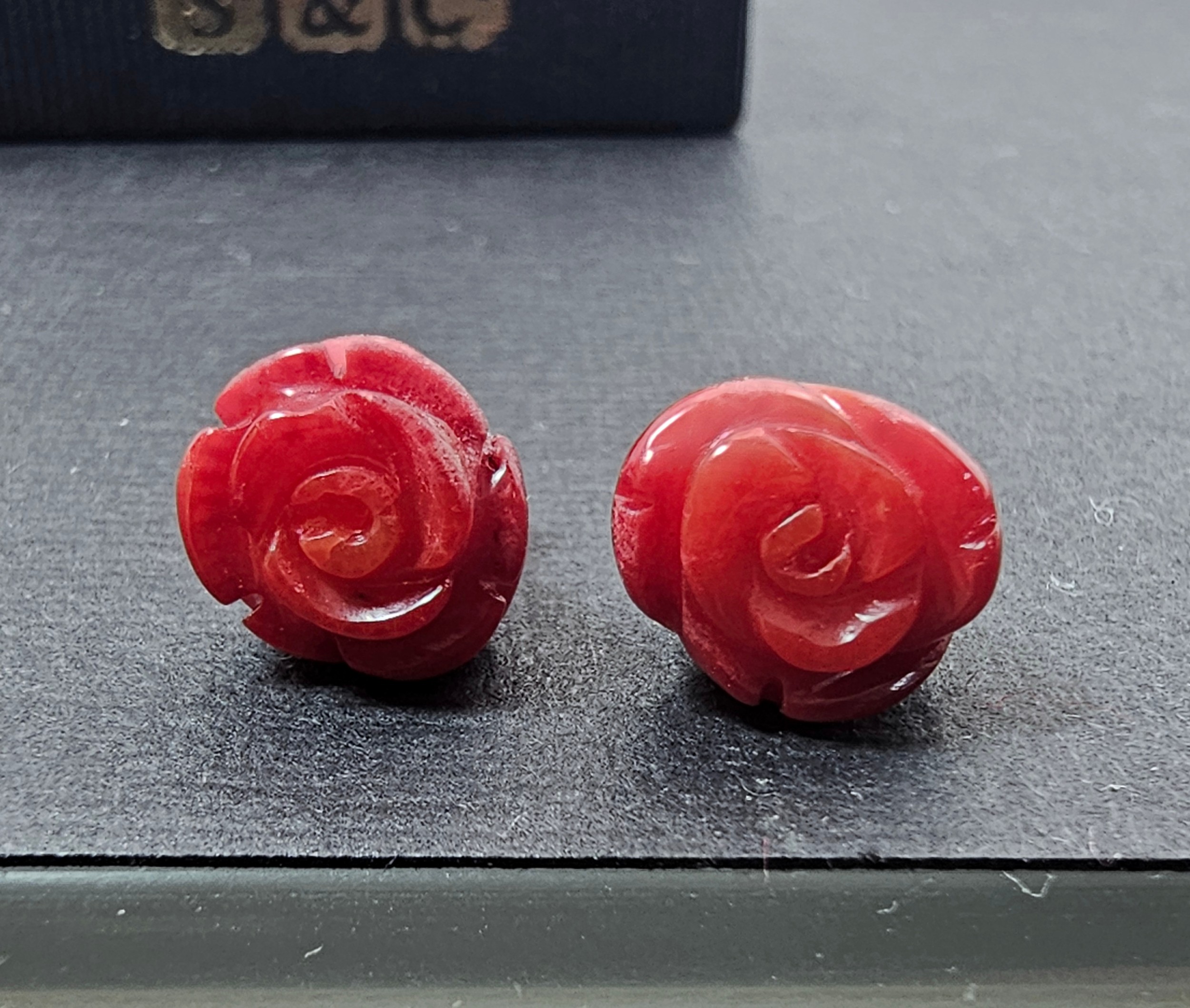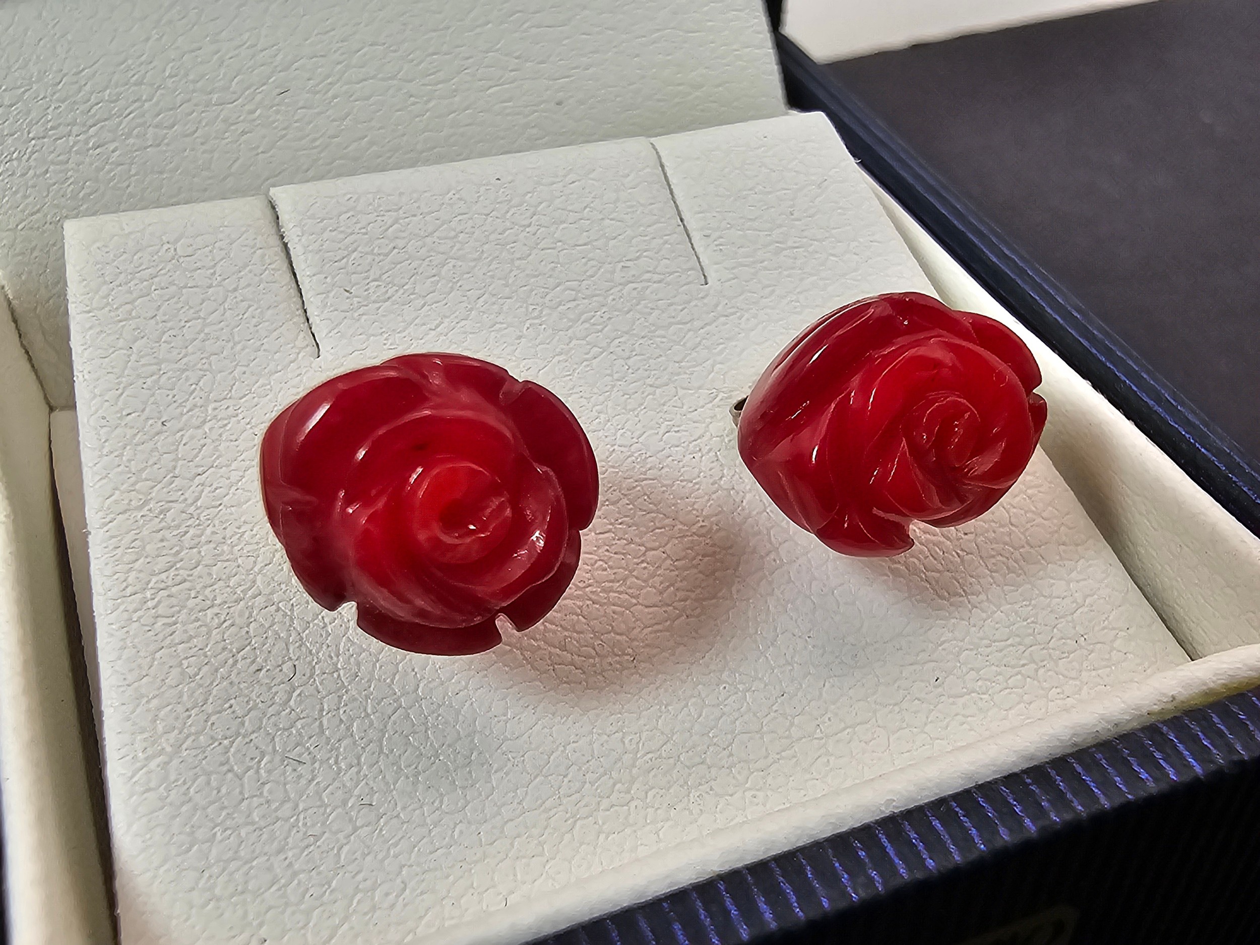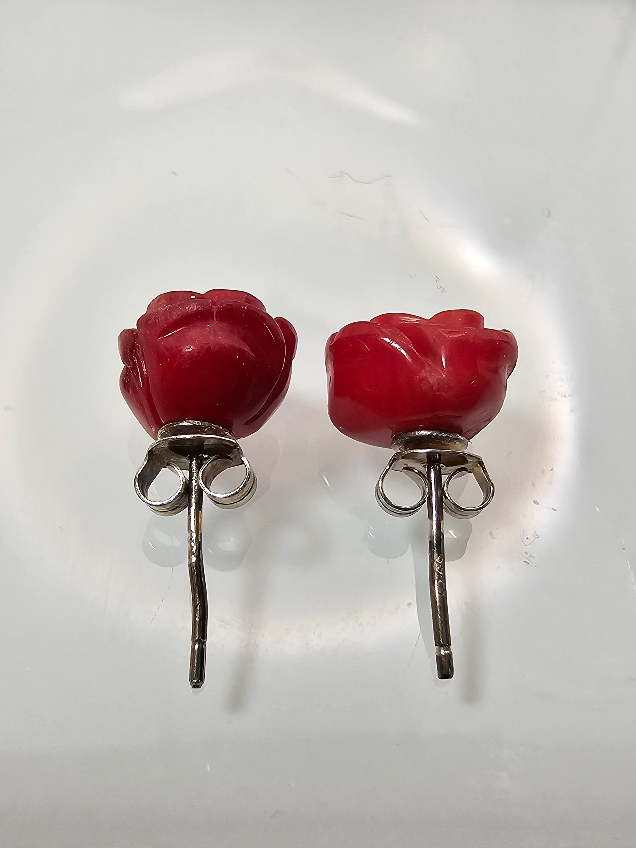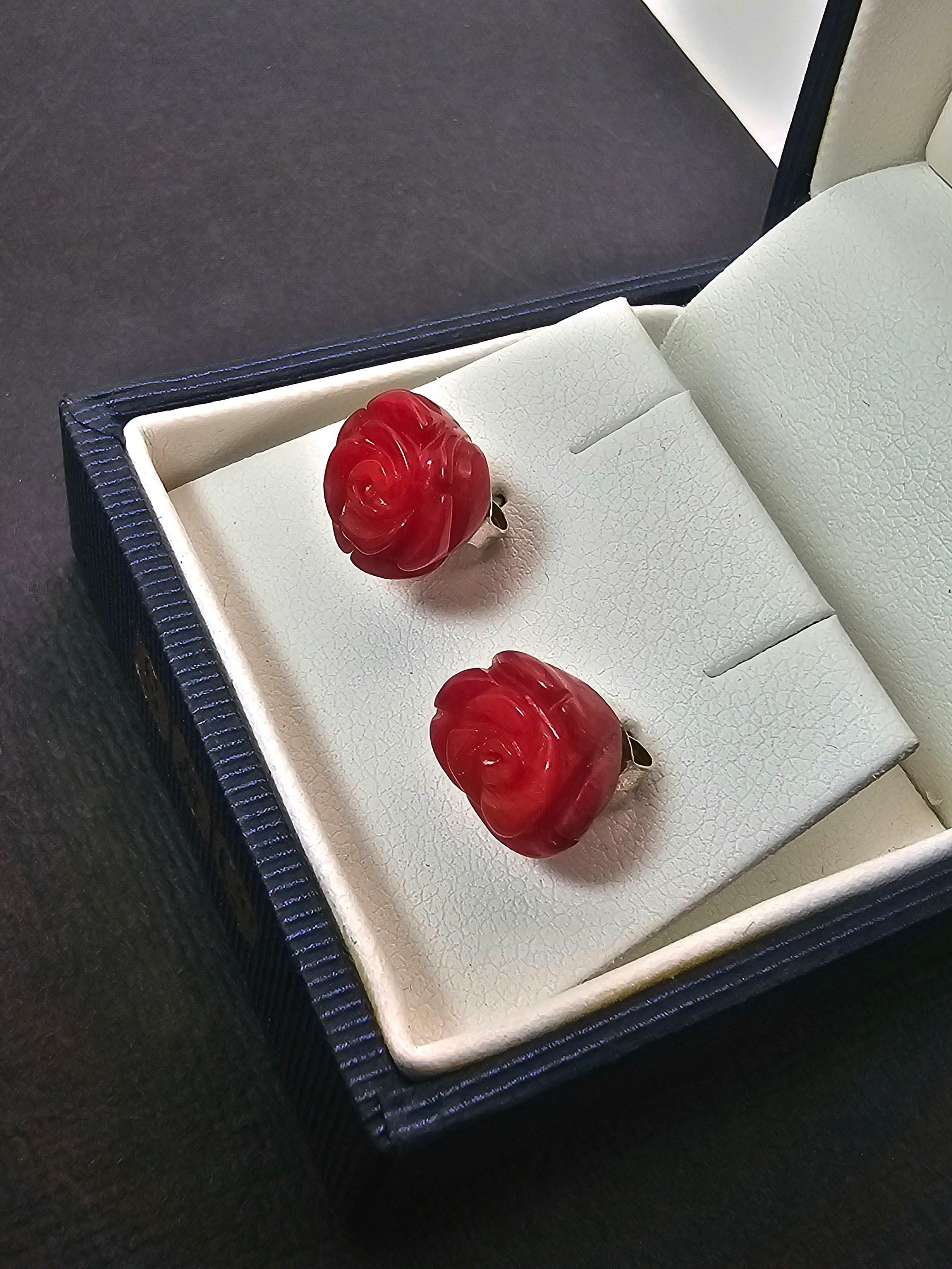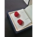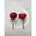 A pair of pretty 9825 Silver Red Rose Stud Earrings. The roses are carved out of a Red Jasper stone. Complete with their backs and are boxed.