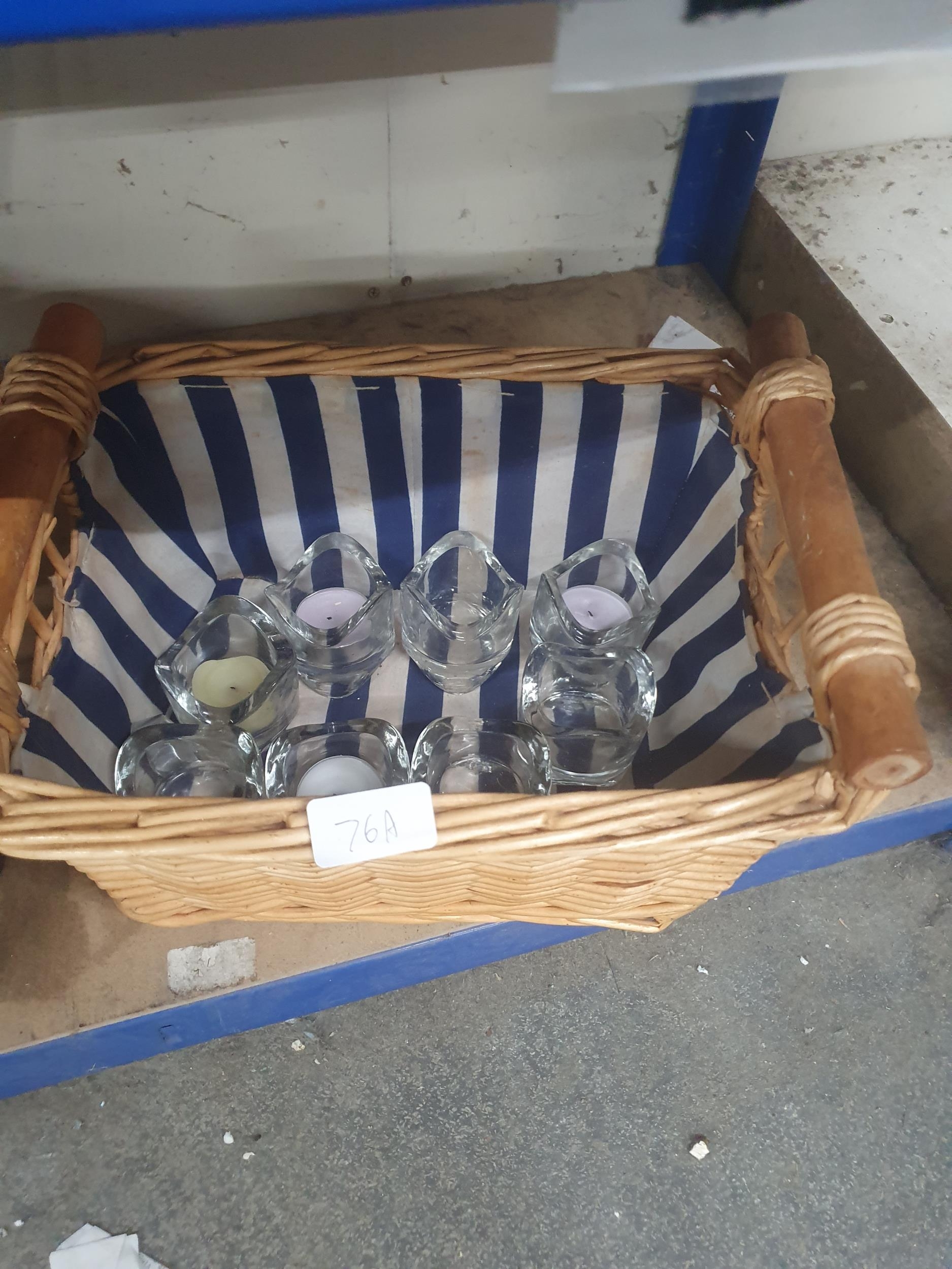 basket with glass tea light holders