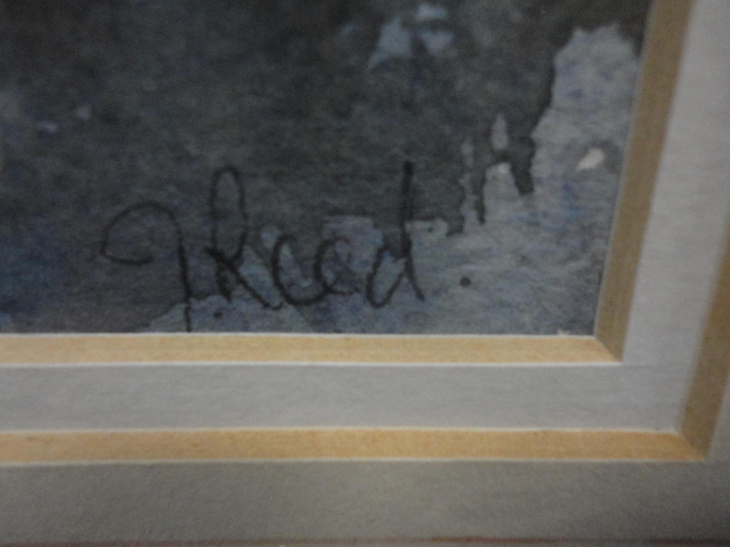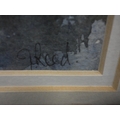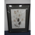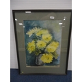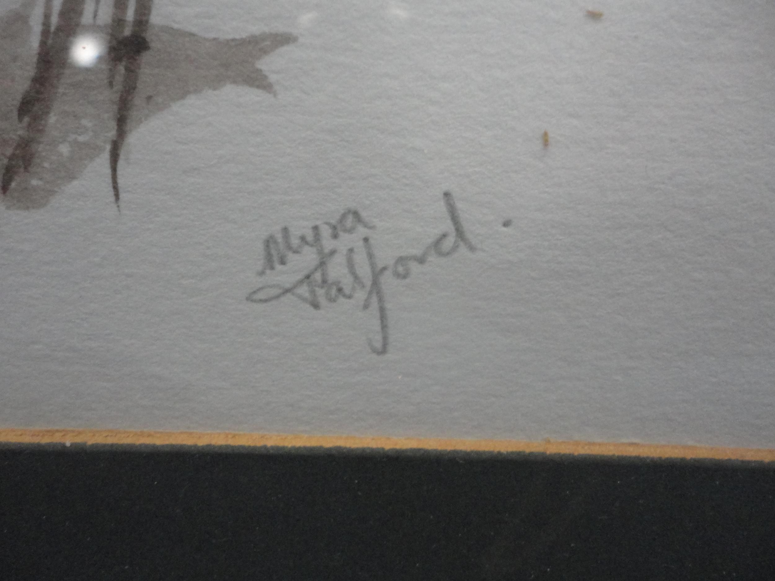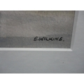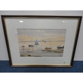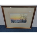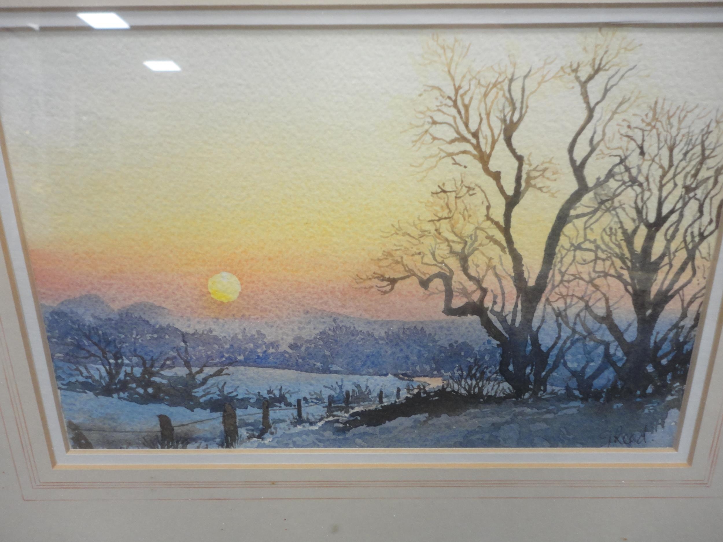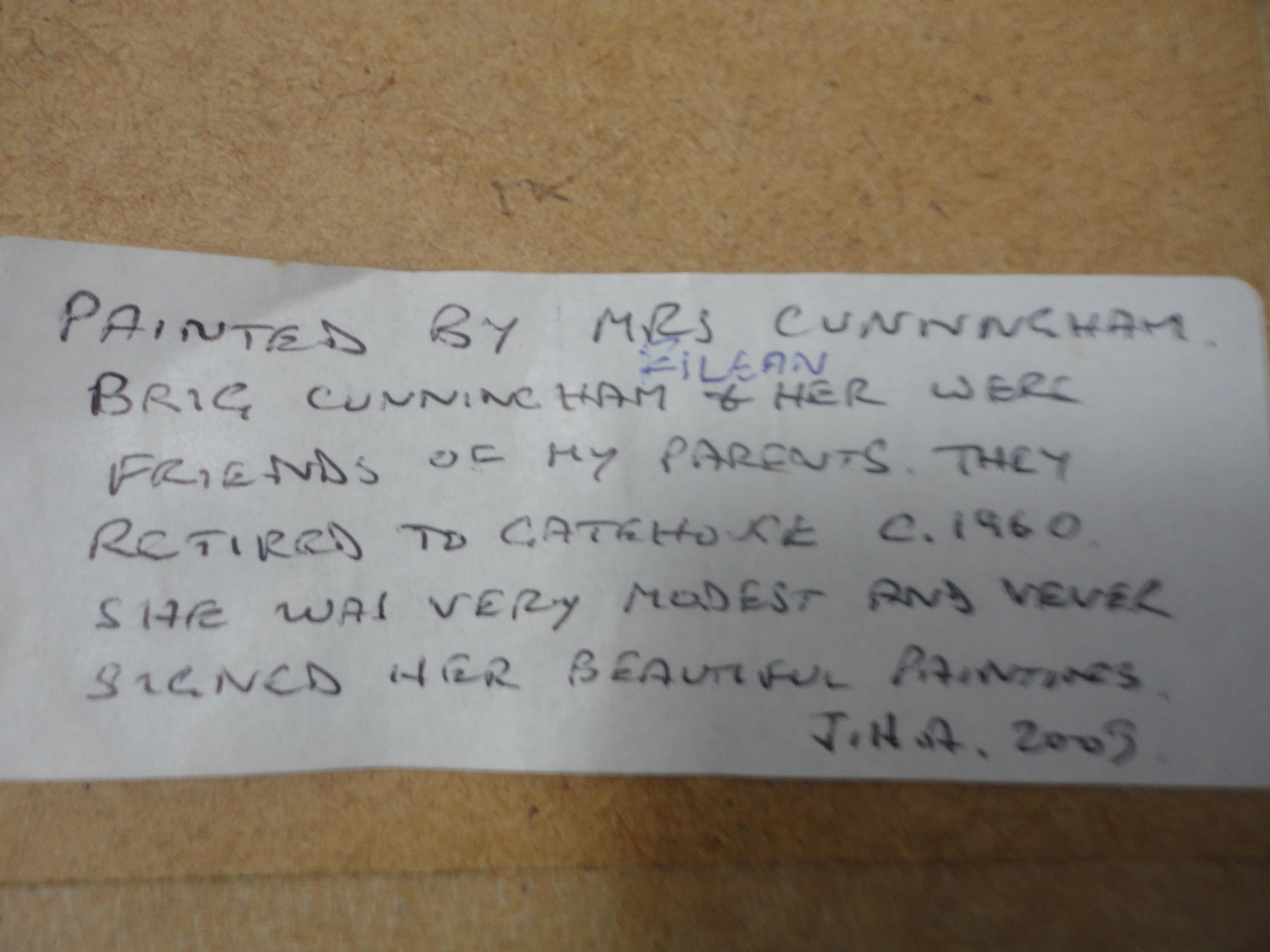 Watercolour, also a watercolour by Myra Talford depicting teasels, E Wilkins fishing boats, Mrs Cunningham still life, and a sunset landscape by Jan Reed.