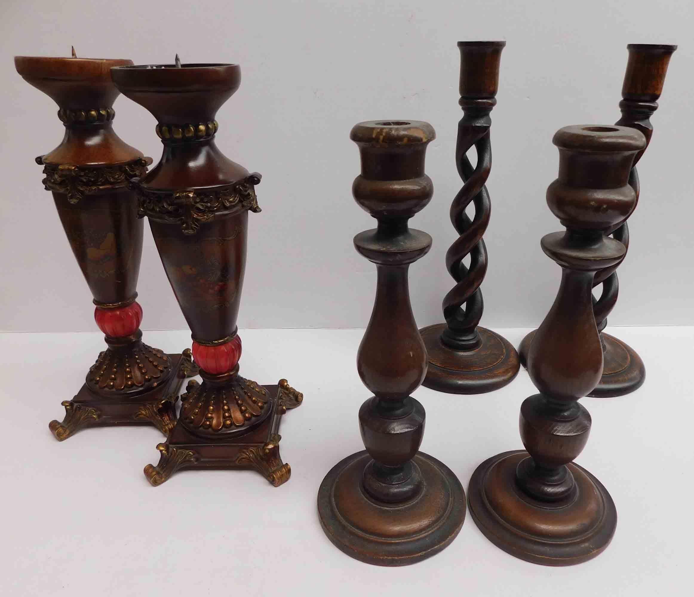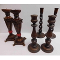 Three - pairs of vintage wooden candle sticks - 17" tallest