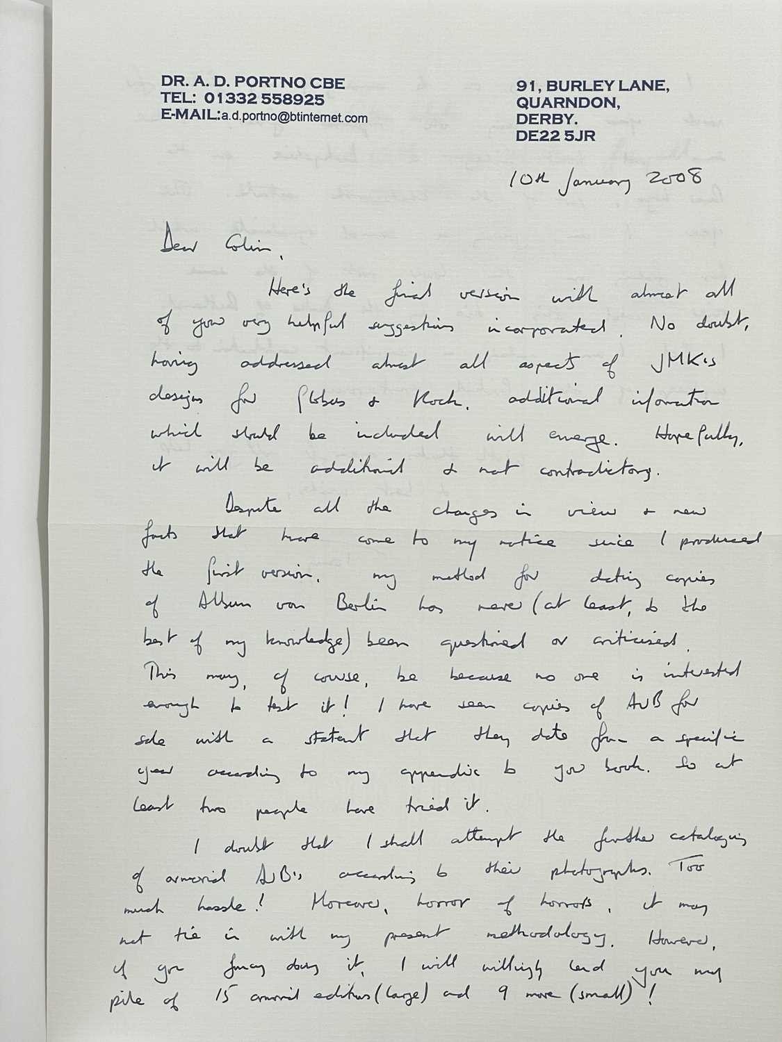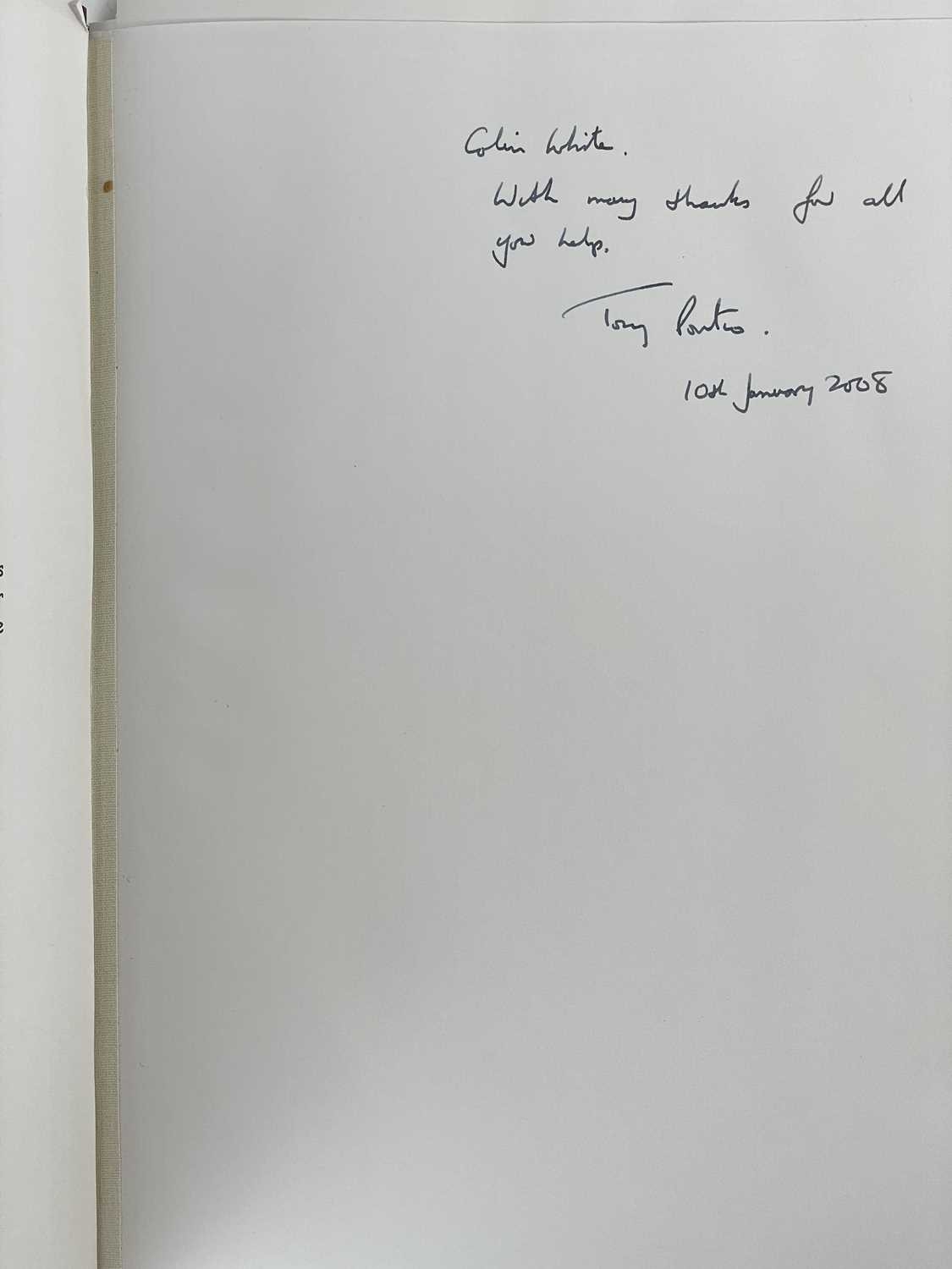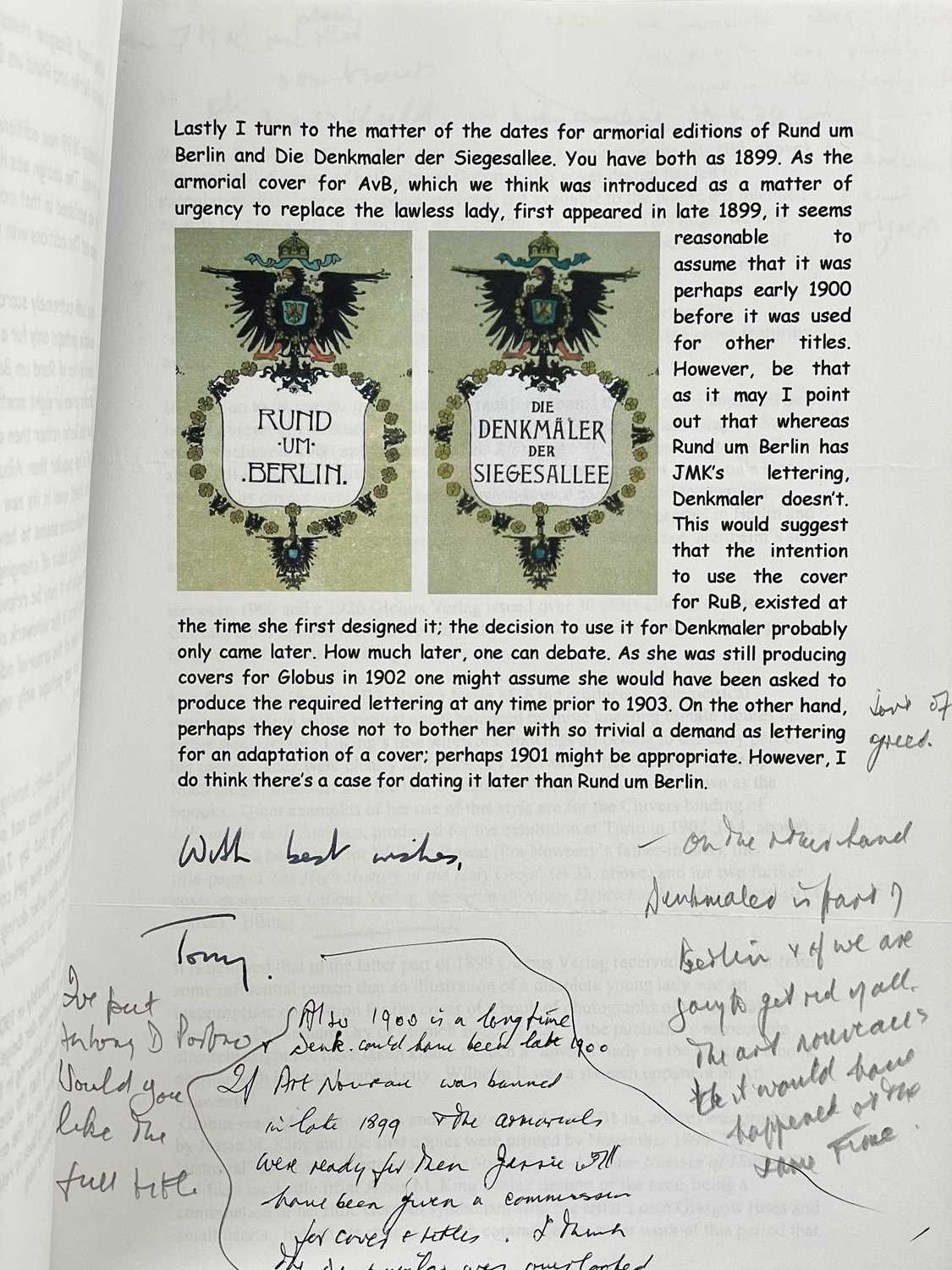 A. D. Portino The German Cover Designs of Jessie M. King Two copies, limited editions, both copy number 2 from a maximum of twenty, full cloth with marocco title labels to front boards, brown cloth work being signed by Portino and presented to Colin White, a.l.s letter and printed material loosley inserted, illustrated throughout, vg to fine, privately printed, 2003. (2) Provenance From the collection of Colin White (1927–2022) (see lot 1 for more information)