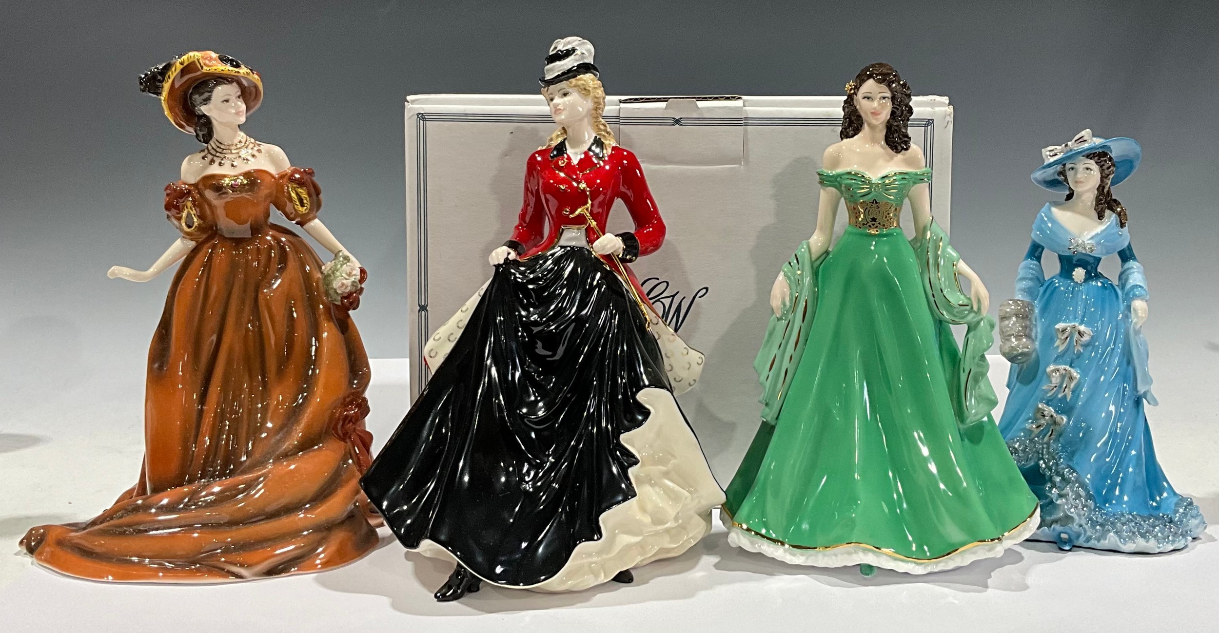 A Coalport figure, Kate, CW797, for Compton & Woodhouse, limited edition 6,055/7,500; others, Lady de Winter, CW800, limited edition 636/4,950; Emma Hamilton, CW715, limited edition 8,192/12,500; Elisa, Figurine of the Year 2009, CW861, boxed (4)