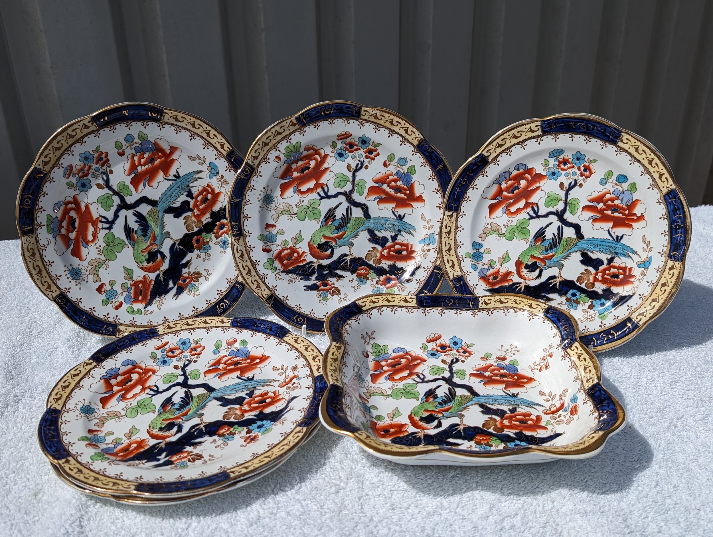 Antique Losol Ware Burslem Shanghai Pattern Bird Of Paradise Plates And Other Losol Ware