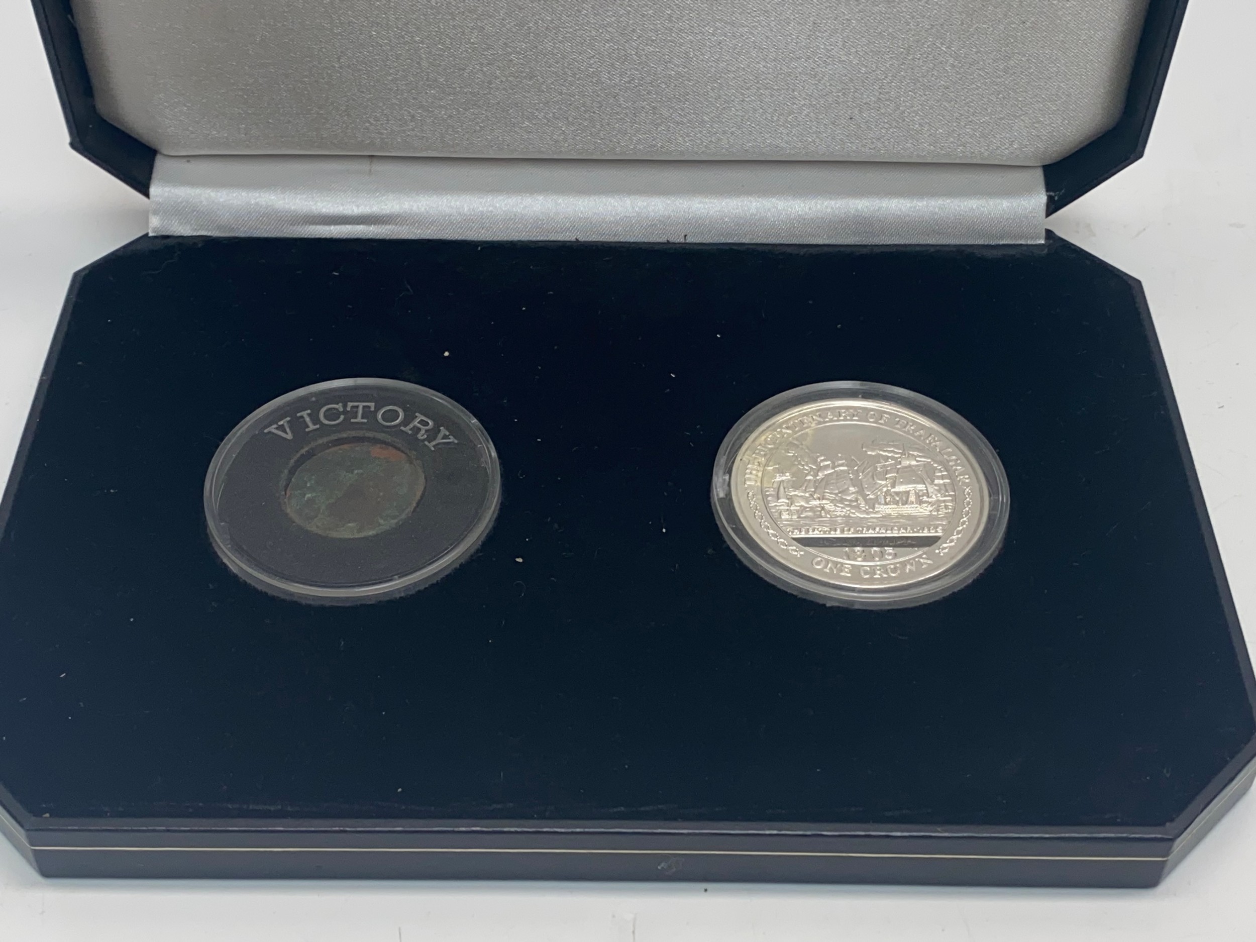 Pobjoy Mint Bicentenary Of Trafalgar Silver Proof Crown and HMS Victory Coin.