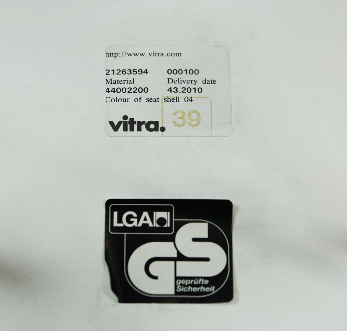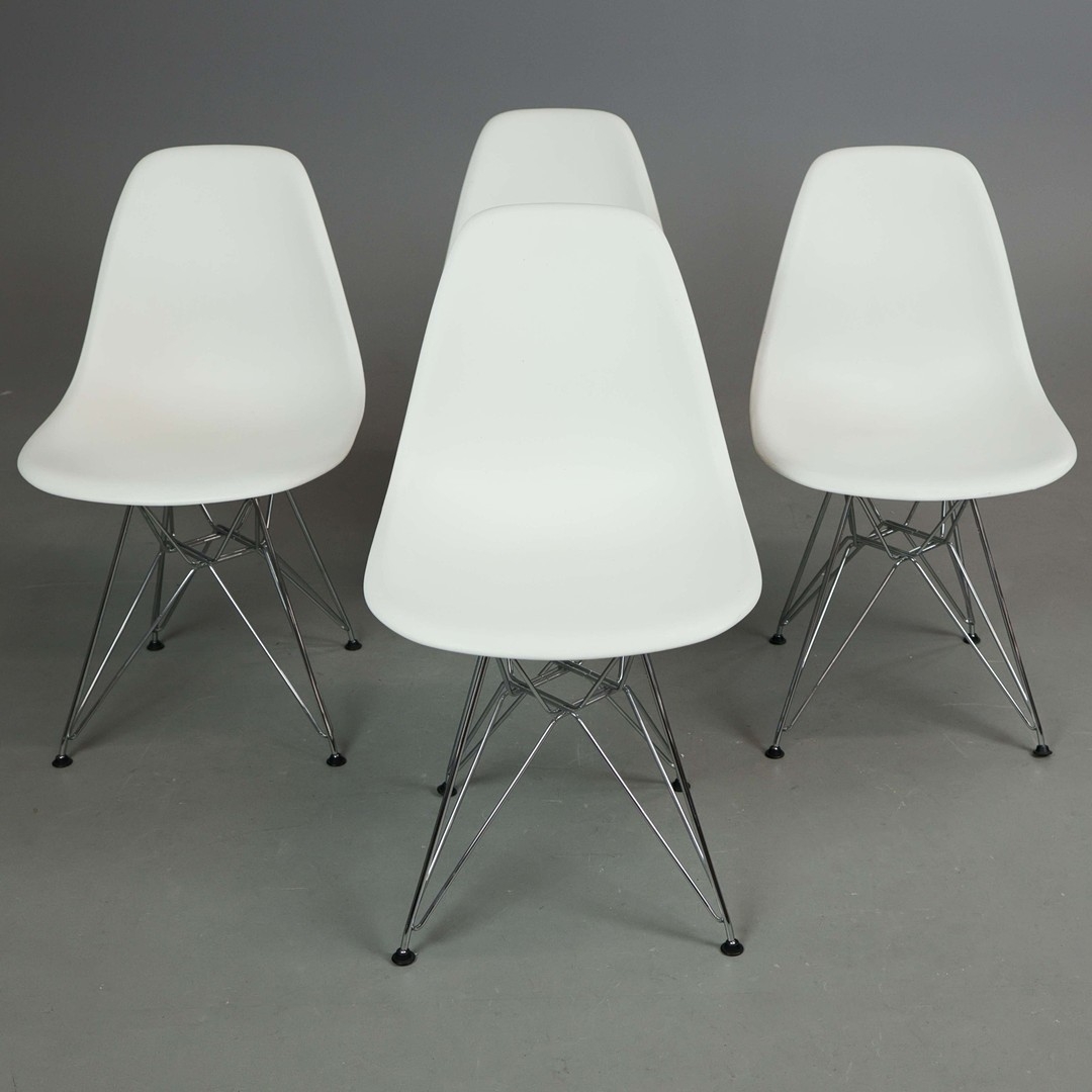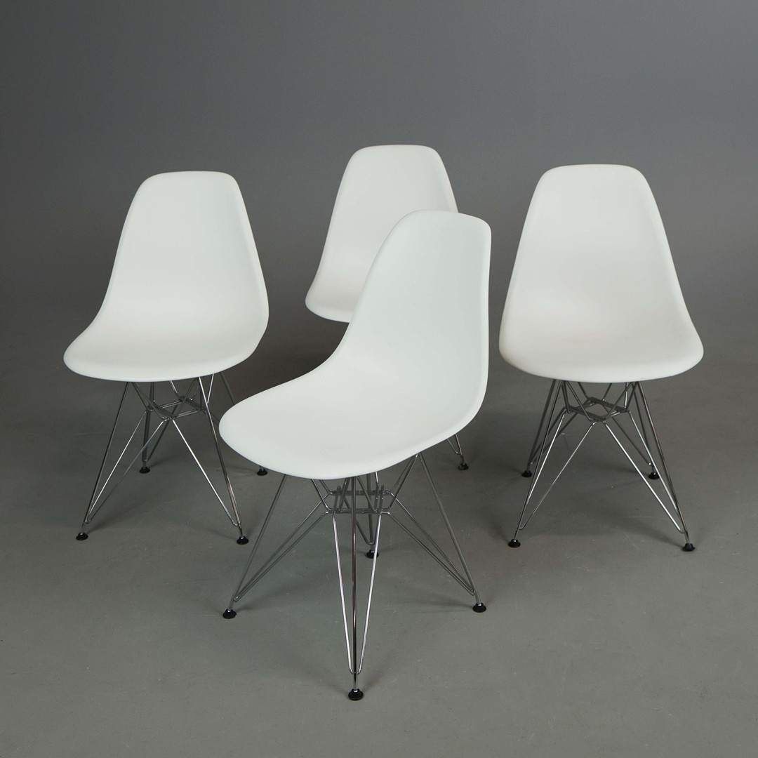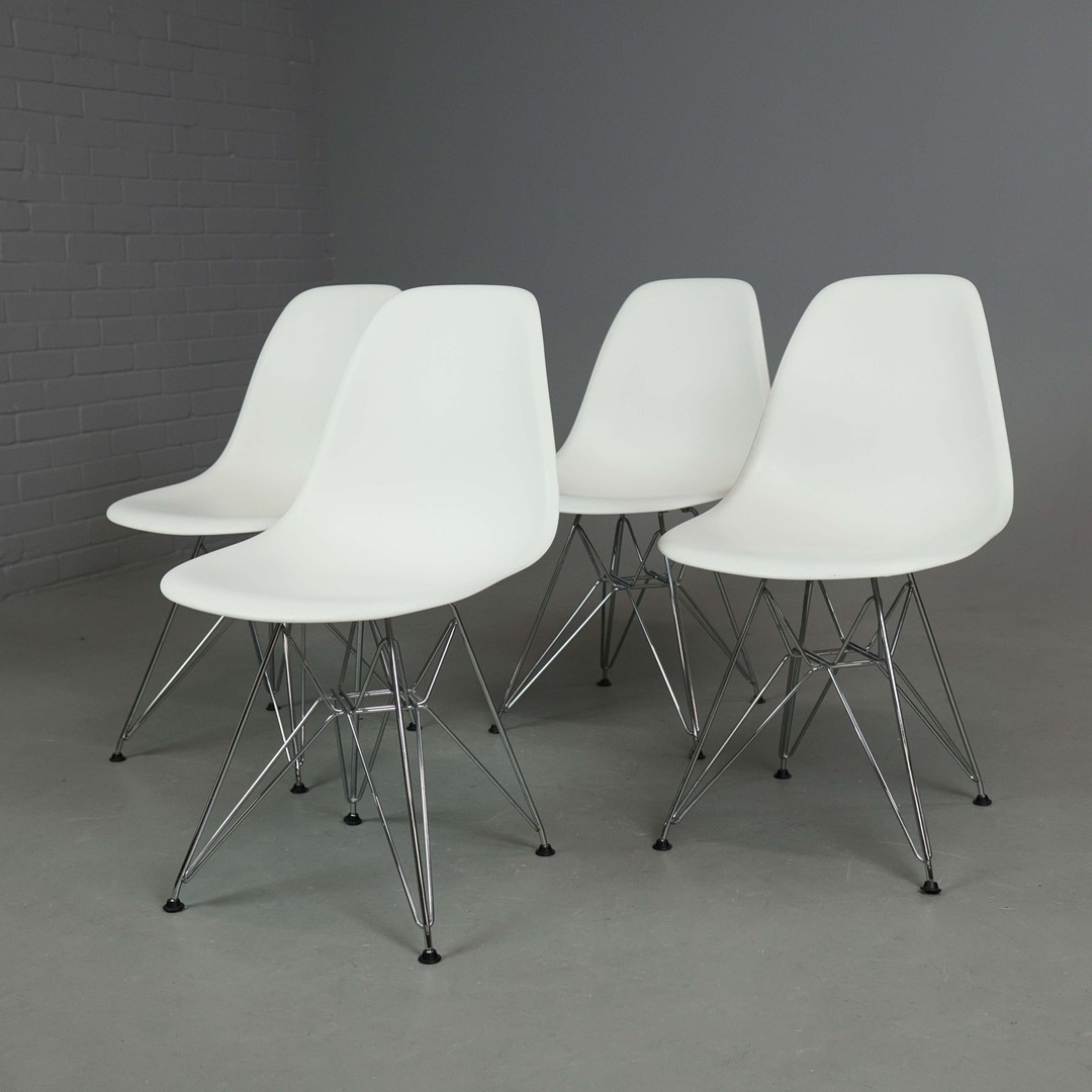 VITRA DSR CHAIRS, A SET OF 4 IN WHITE. by Charles and Ray Eames, 80.5m H approx. (2).