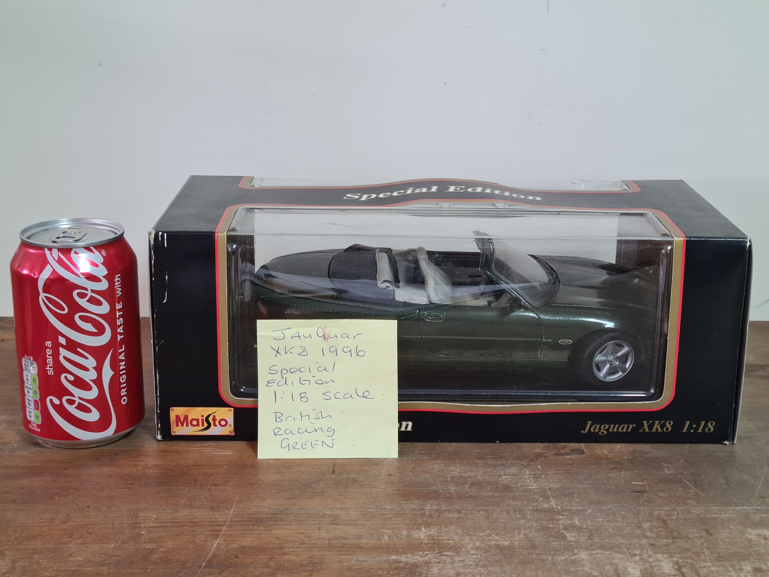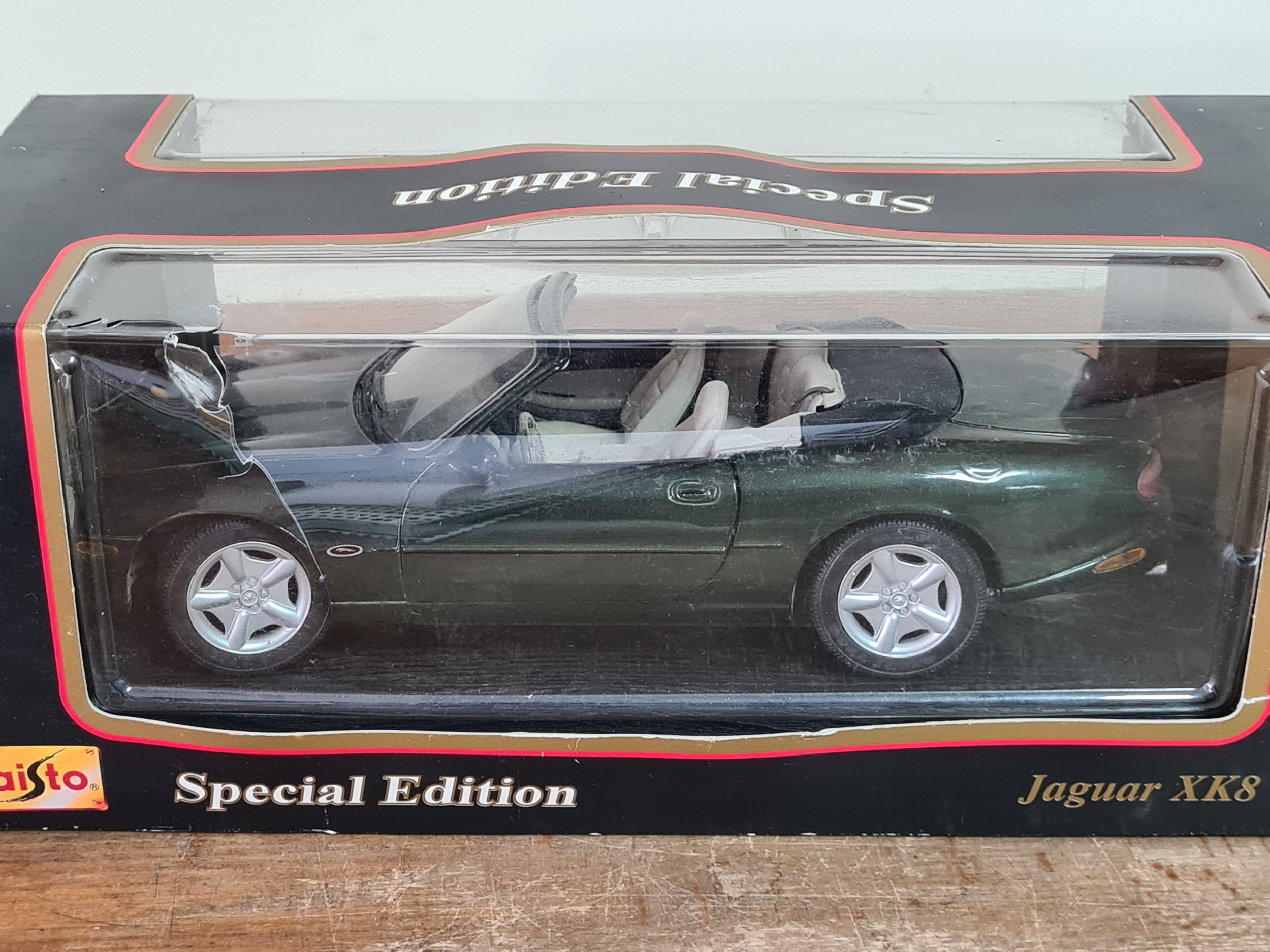 Maisto diecast Special Edition Model Car Jaguar XK8 British Racing Green 1996, Scale 1/18 with original box. Ref 31836