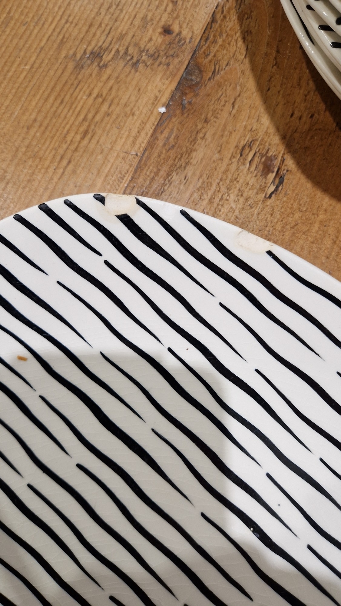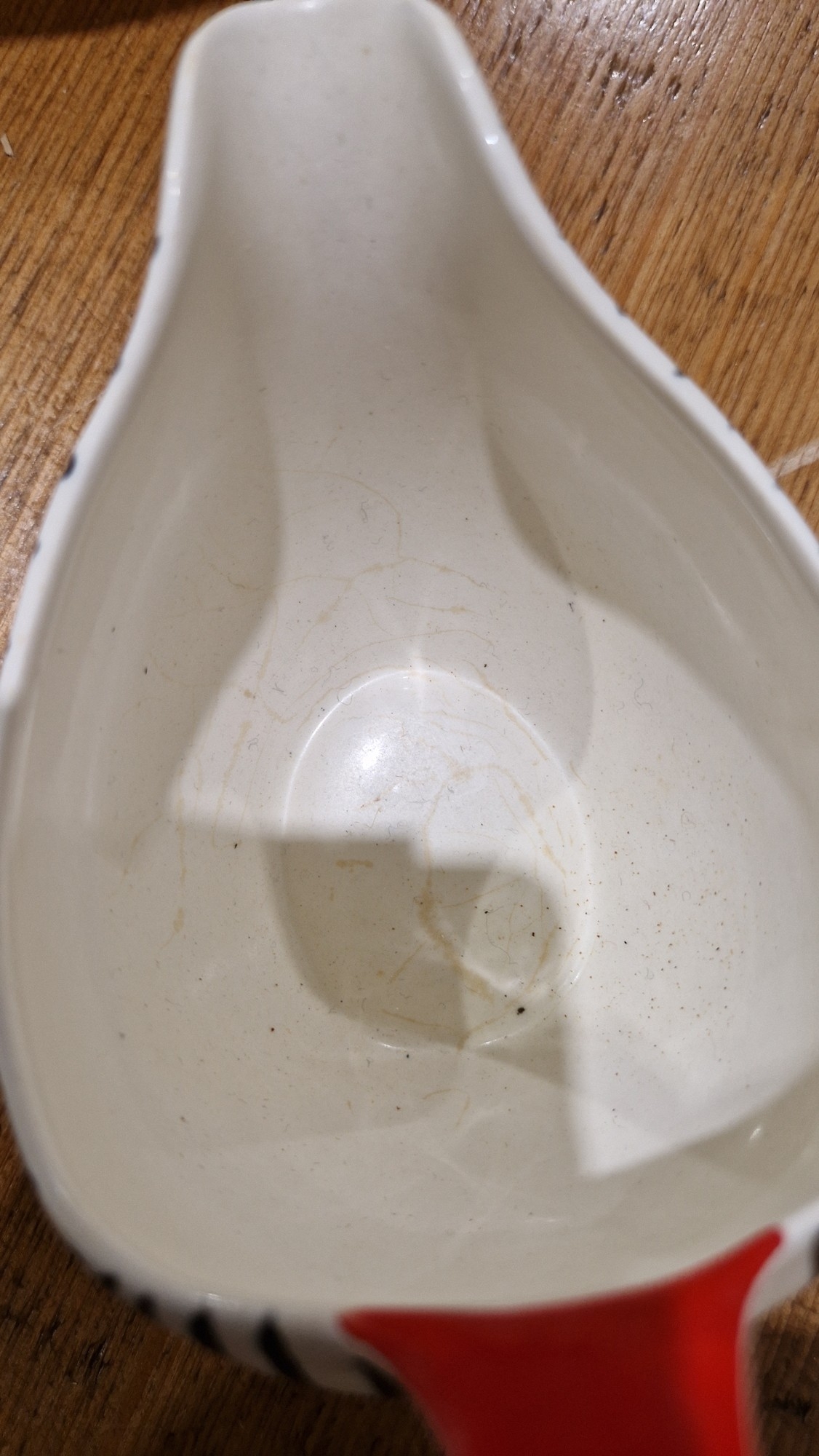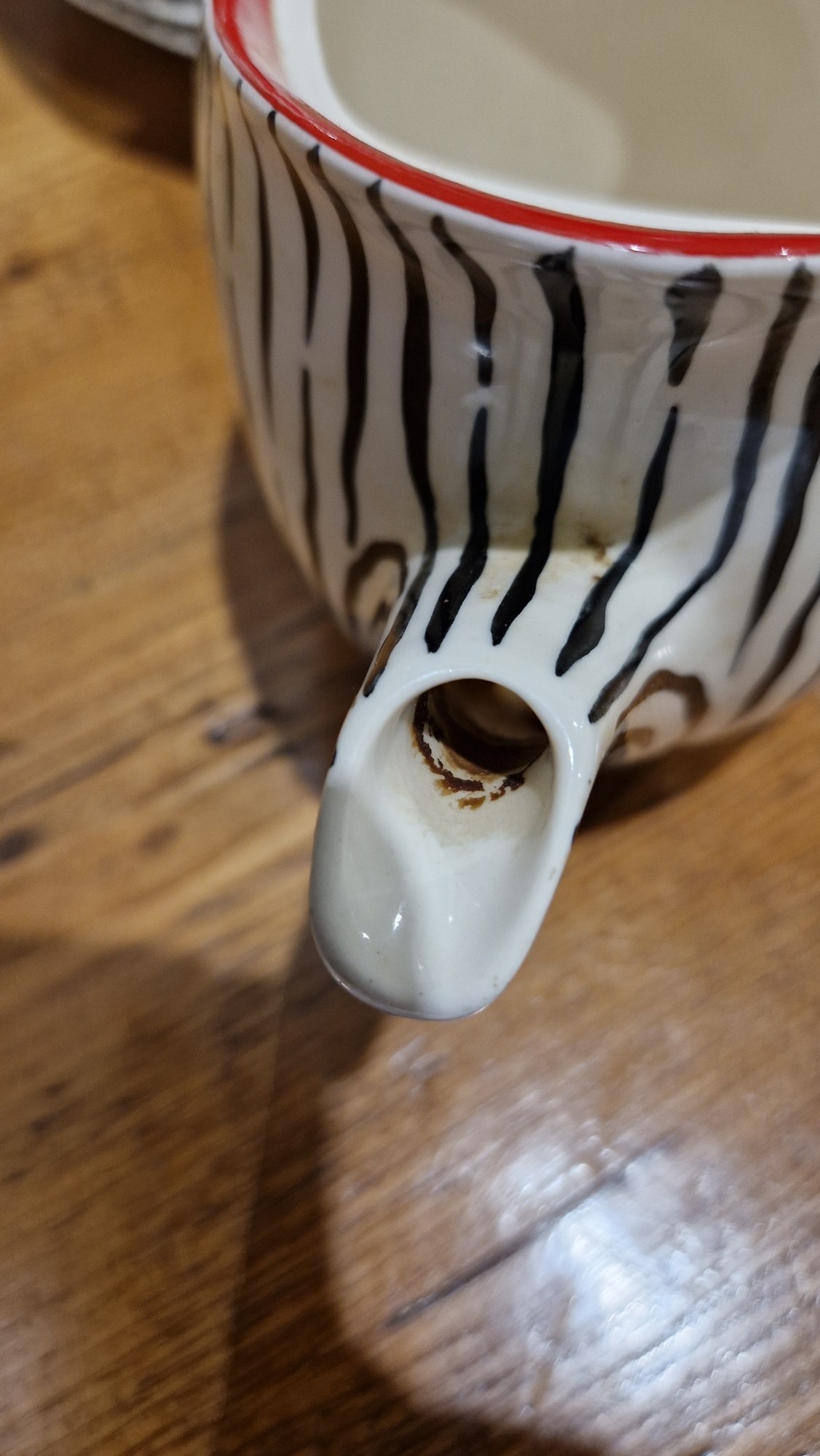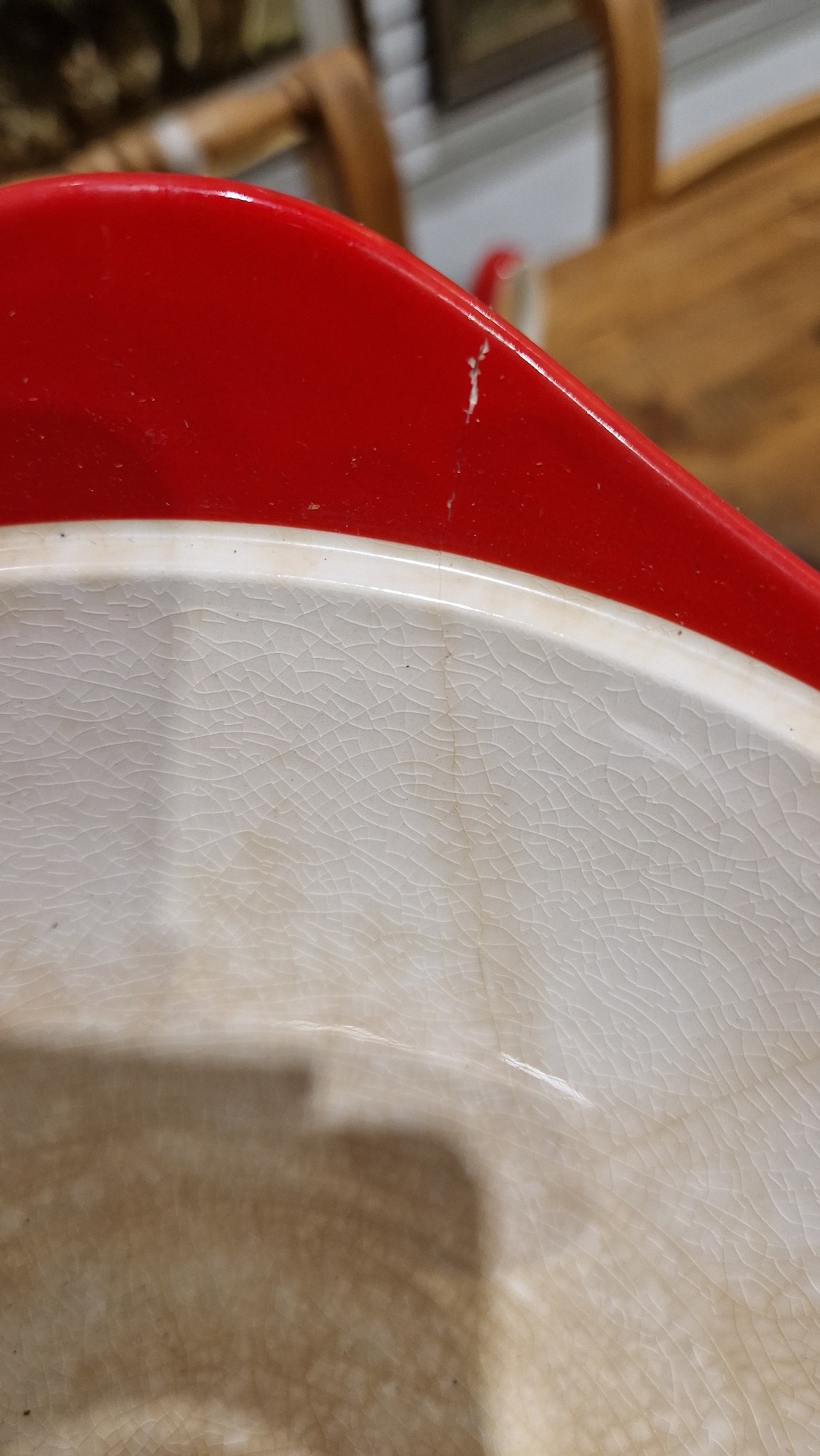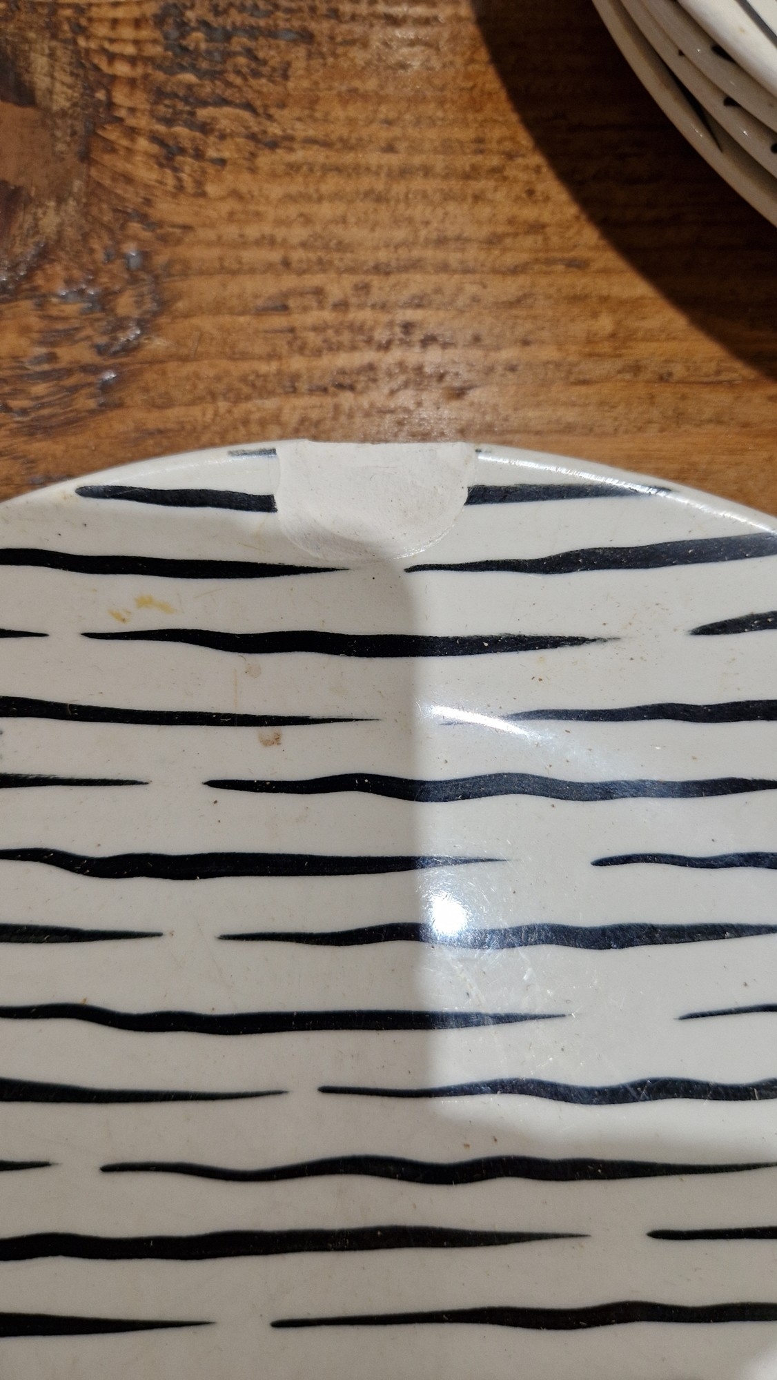 All items with typical wear and tear and signs of use. Dinner plates - 5 with chips, 2 with crazing, 1 with star crack Side plates - 2 with chip, 4 with crazing Milk jug - Crazing and staining to interior Saucers - 1 with chip, 1 with corner broken off but present Bowls - 3 with crazing, 1 with star crack, 2 with chips Teapot - Missing lid, staining to interior Tureens - 1 with crack near rim, crazing and staining, the other with crazing to underside of lid Gravy boat - Ladle with crazing and staining Condiment set - 2 items missing