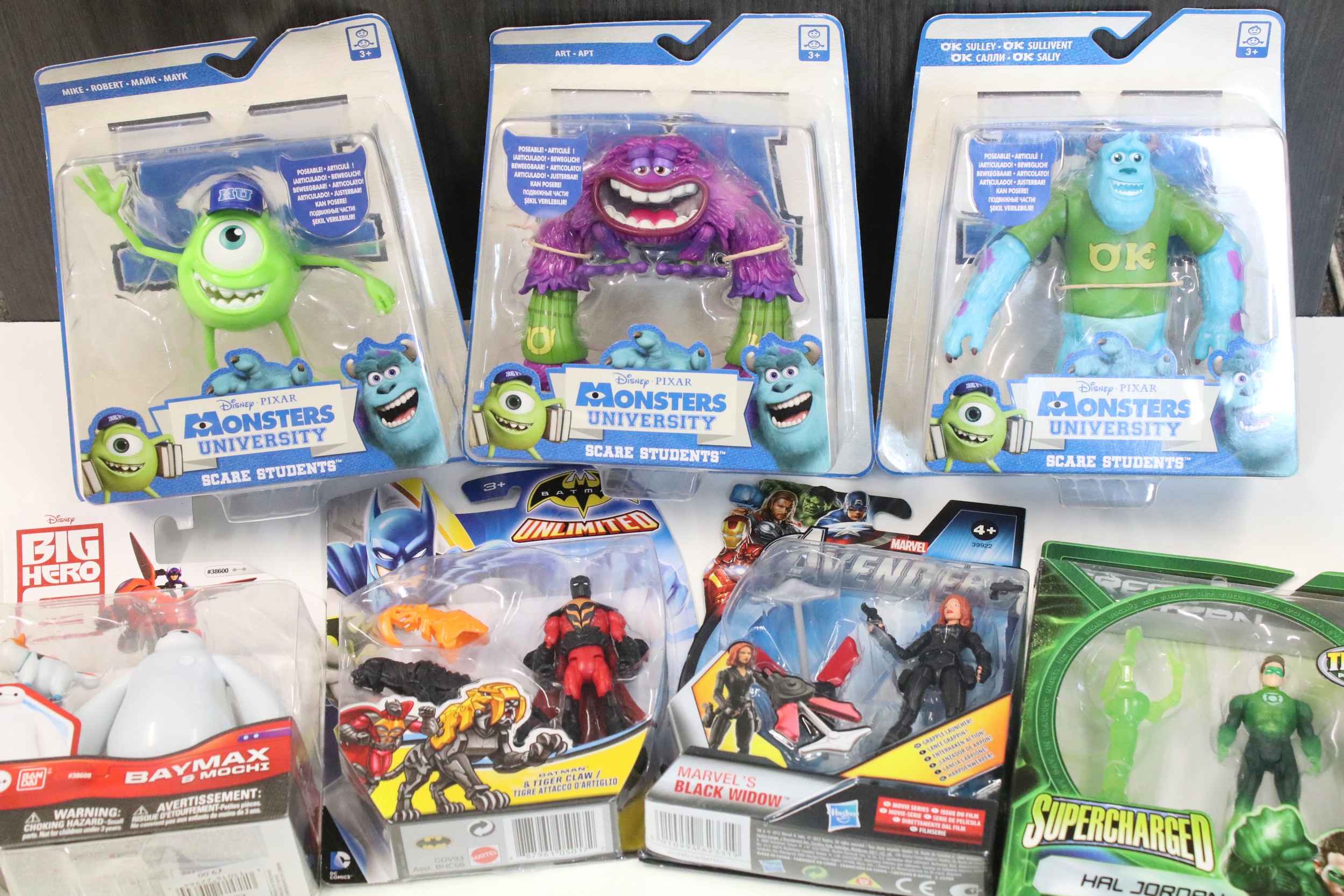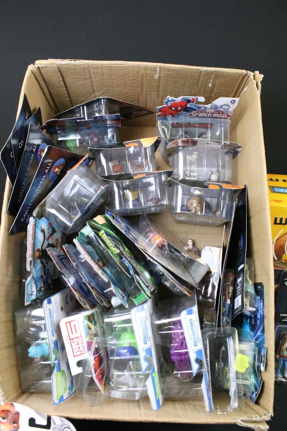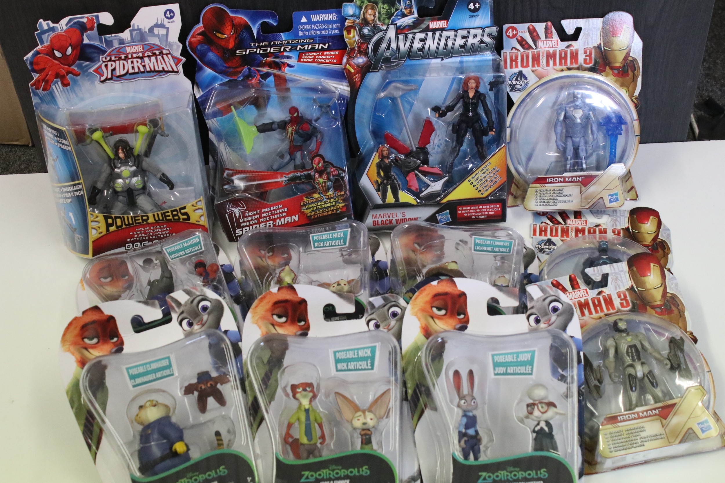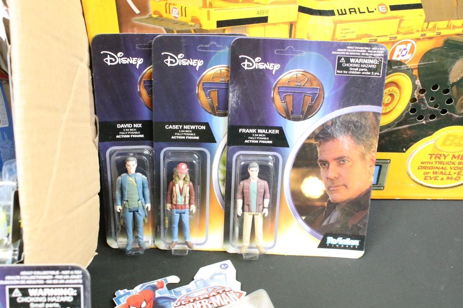 34 Carded / boxed Disney figures to include Wall-e, Tomorrowland A World Beyond, Monsters University, Tron, Iron Man, Zootropolis, etc, some removed from card (3 boxes)