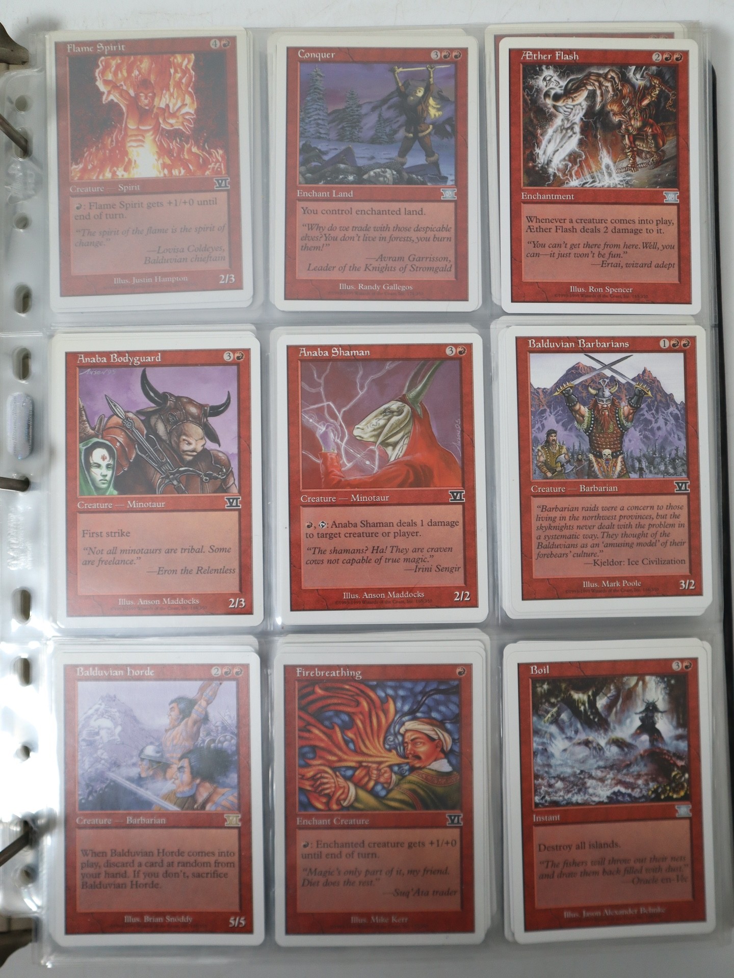 Magic the Gathering - A Part Complete Sixth Edition includes rare, uncommon and common cards also includes play-sets / duplicates of cards, set out in number order with in binder, includes playset of Enlightened Tutor, City of Brass (1) - Approximately 80% Complete