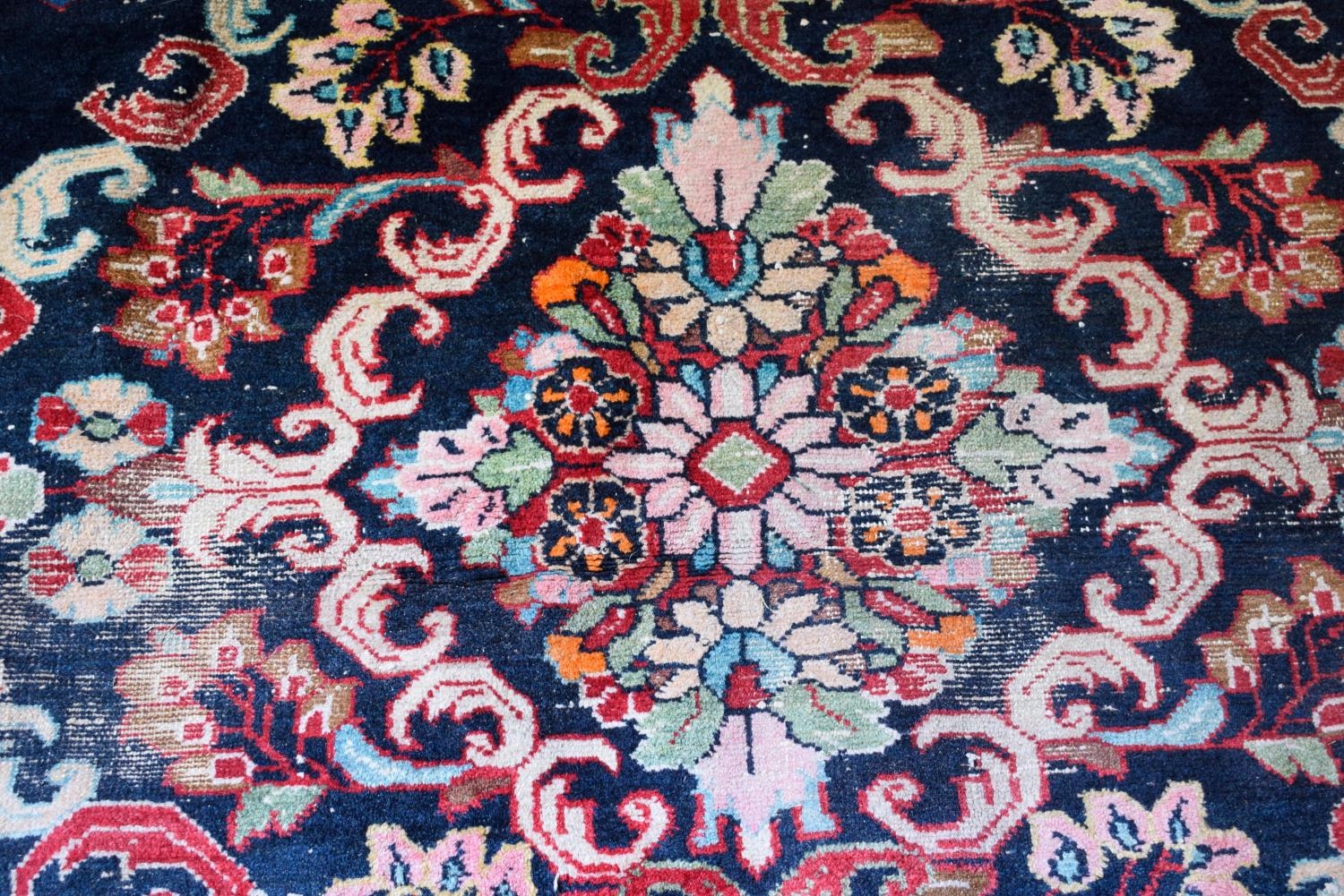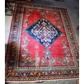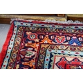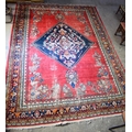 A LARGE MIDDLE EASTERN RED GROUND CARPET decorated with a blue lozenge of flowers. 354 cm x 264 cm.