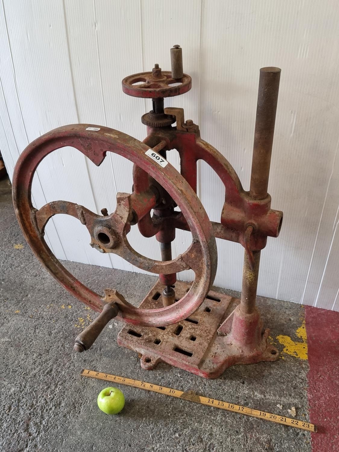 A Red Vintage large wheel Hand Drill Press. Super piece