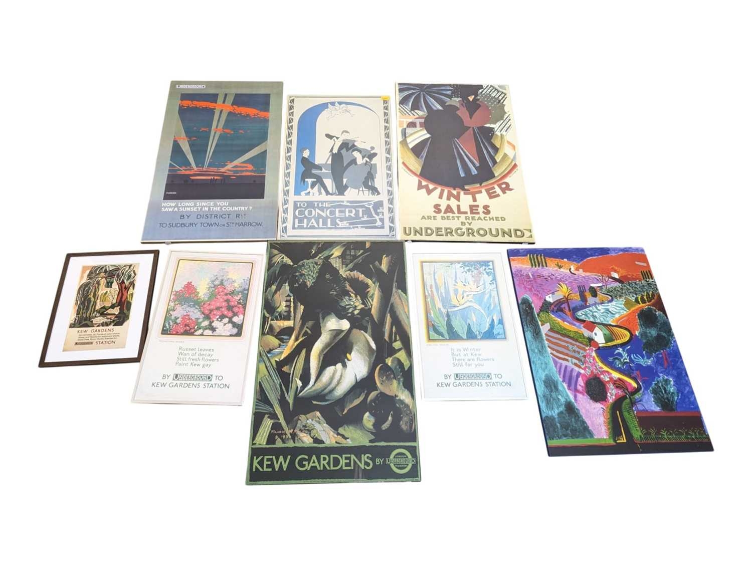 A collection of various contemporary posters to include examples for transport London Underground, Kew Gardens and exhibitions. Some framed and others on board. Measures approx: 84x52cm