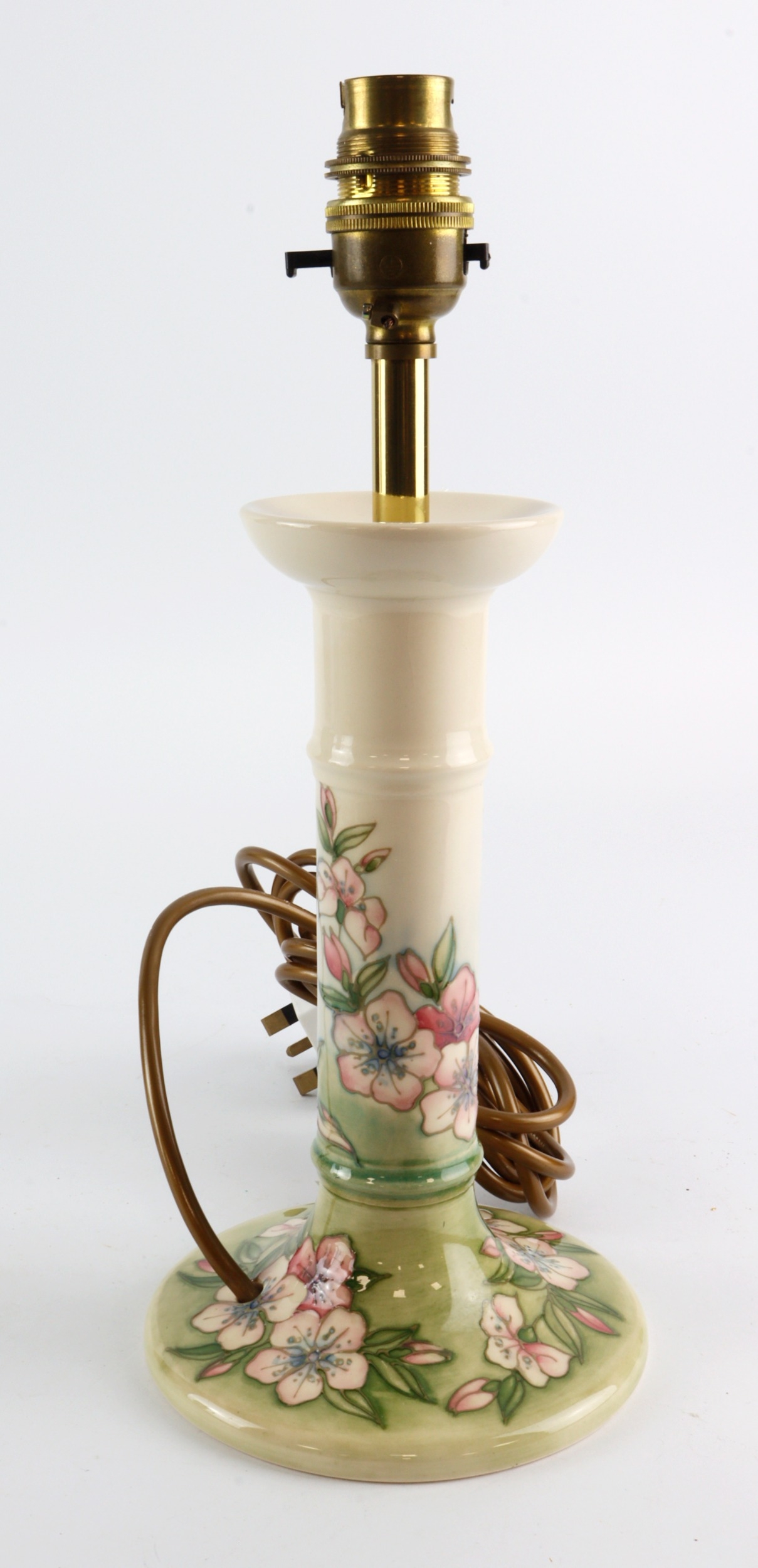 Moorcroft. 'Summer Blossom' pattern candlestick lamp, design by Sally Tuffin, height 30cm approx including fittings. Stamped to base. Untested.
