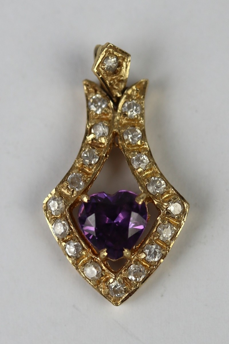 14ct gold heart shape amethyst and CZ set pendant- Approx 4....