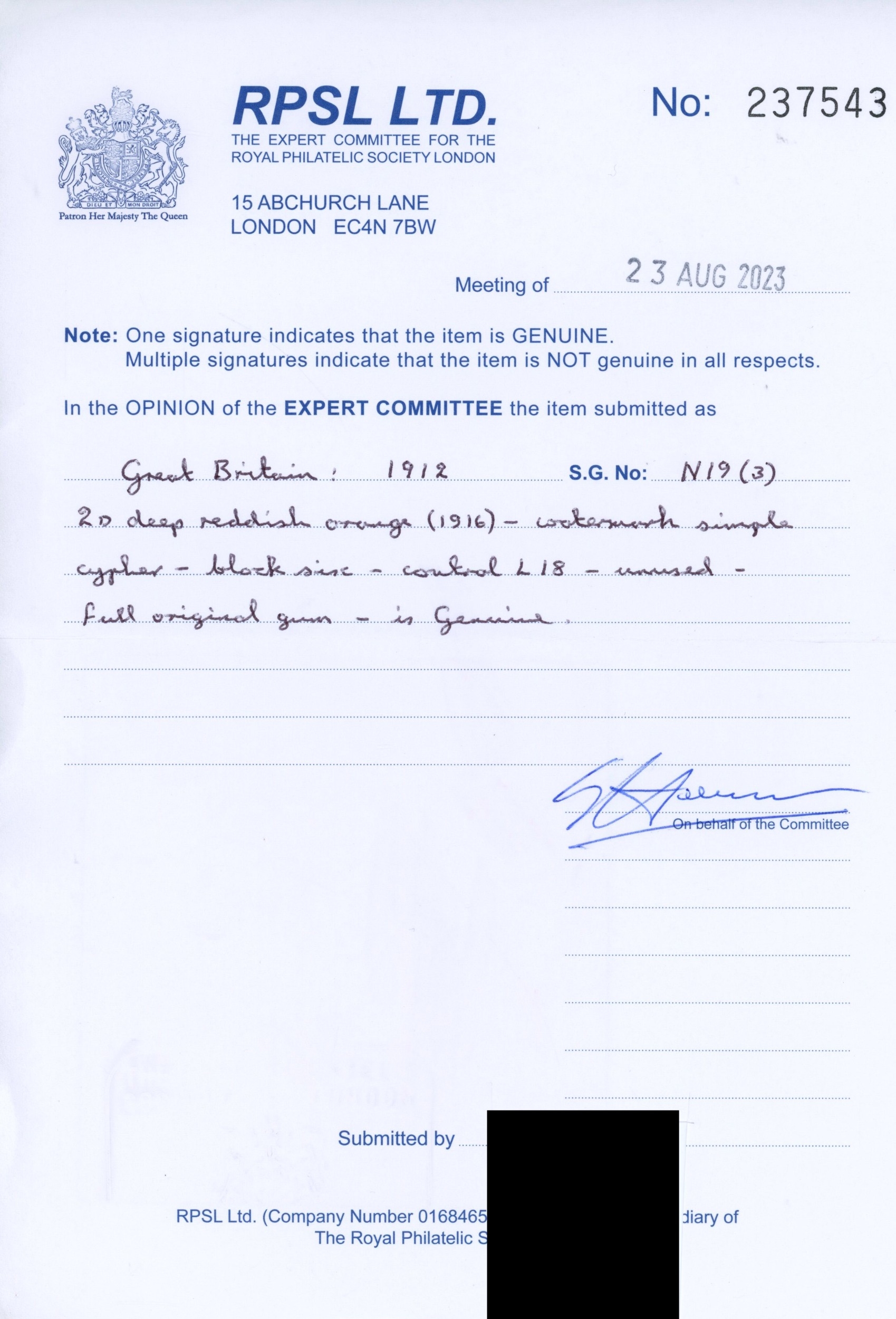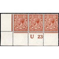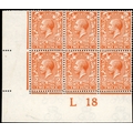 GB: 1912-24 Royal Cypher 2d deep reddish orange, mint unmounted/large part og lower right control L18 block of six