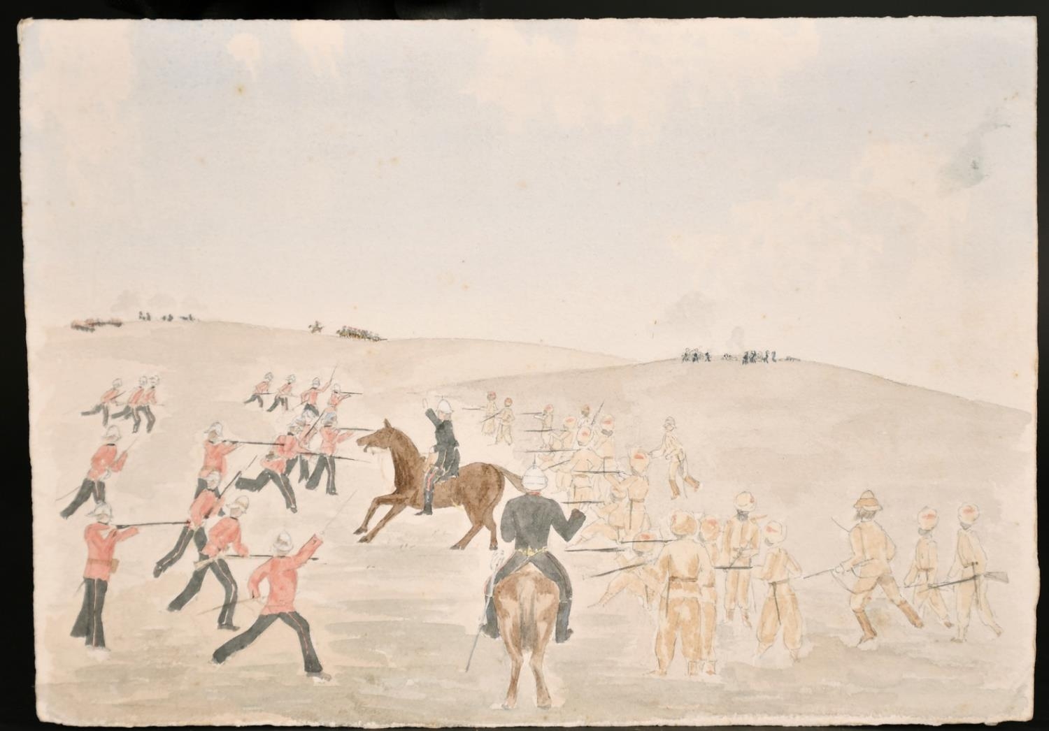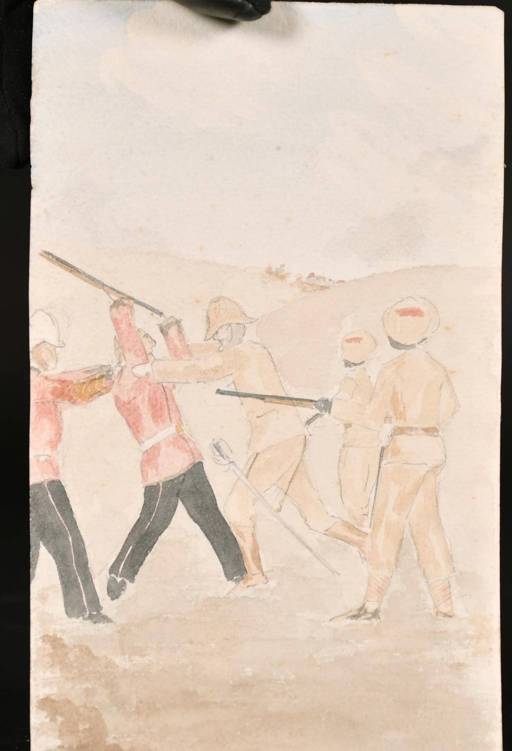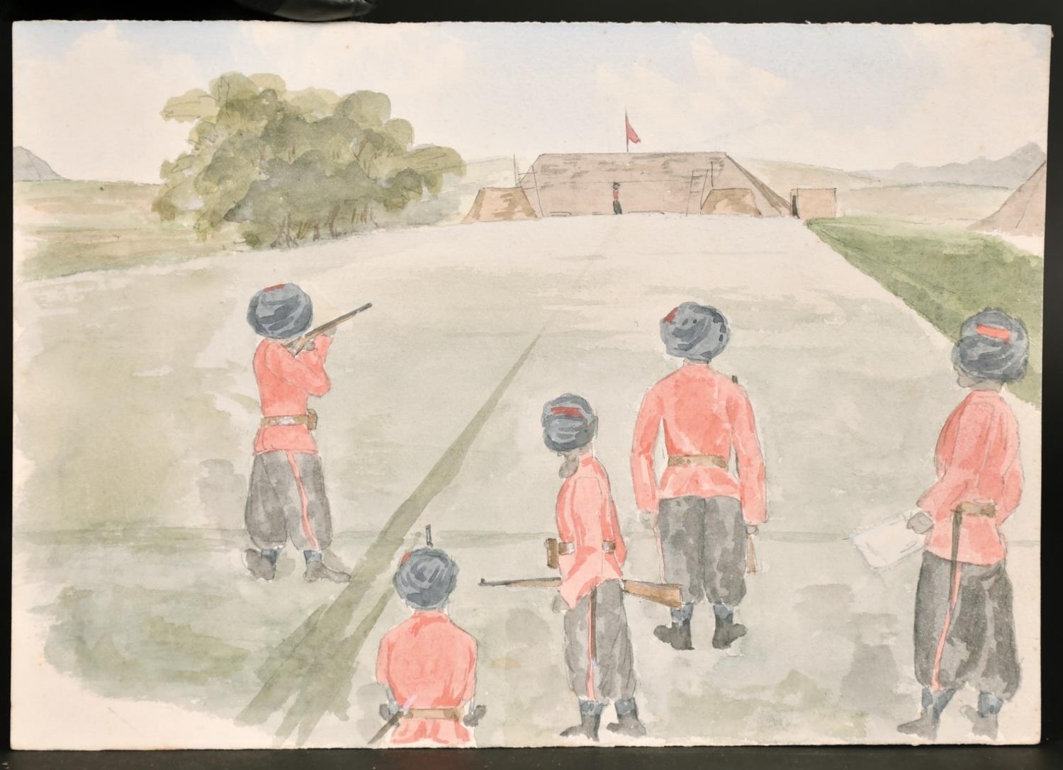 A collection of military sketches from the North West frontier, watercolour + a photo of an officer, various sizes, variously inscribed, (qty), (unframed).