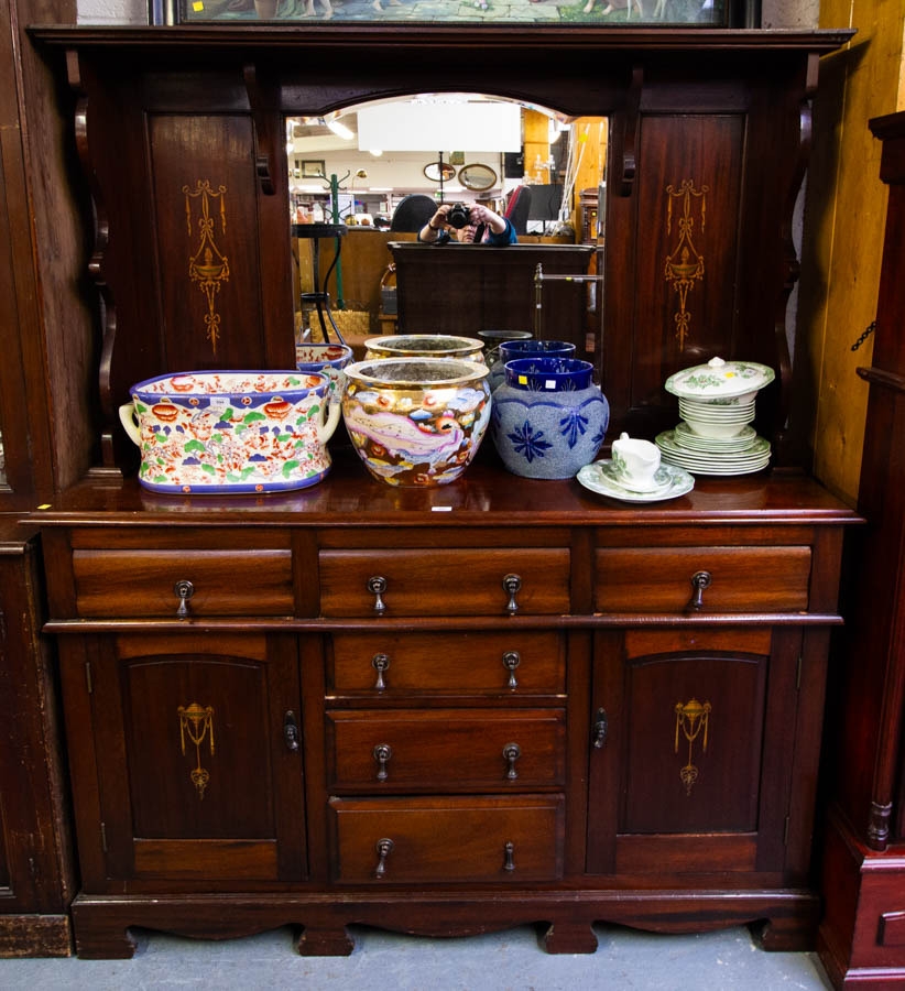 EDWARDIAN MAHOGANY MIRROR BACK SIDEBOARD. 165CM W, 48CM D. 201CM H